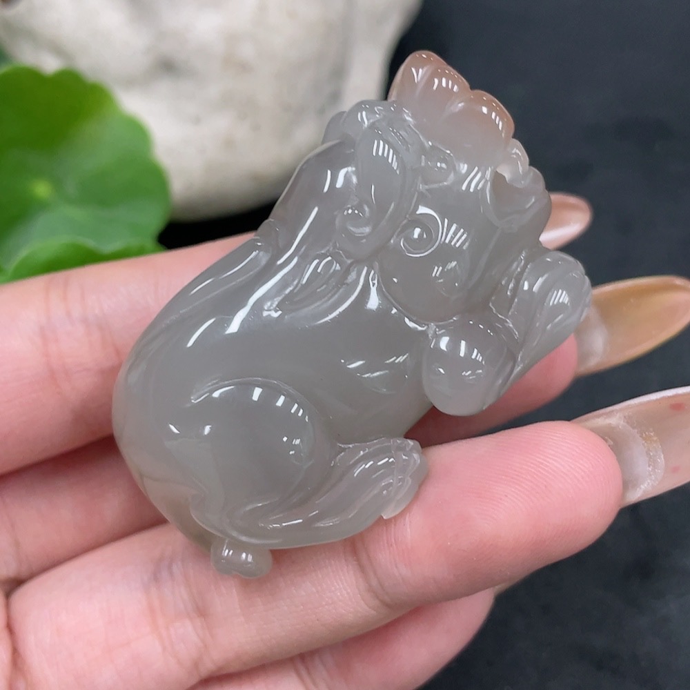 Purple-Green Agate Pendant Pixiu, Total Weight Approx. 50.3g