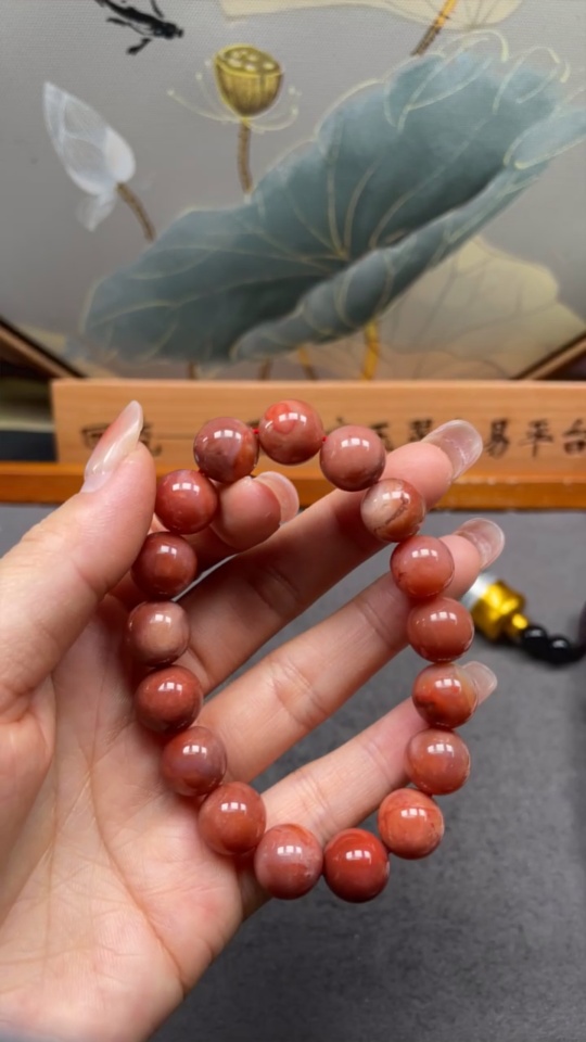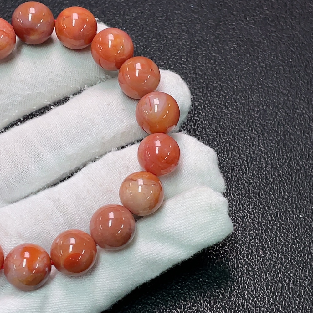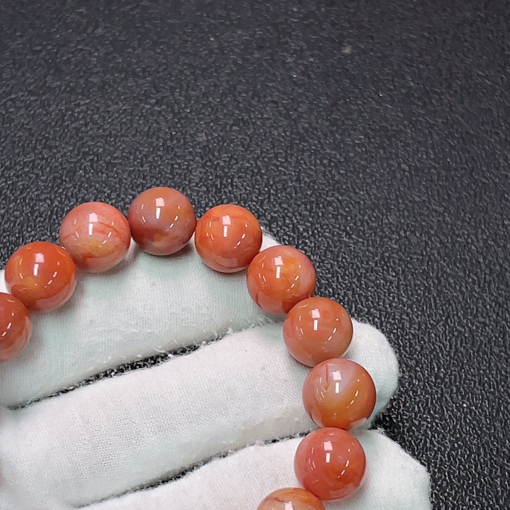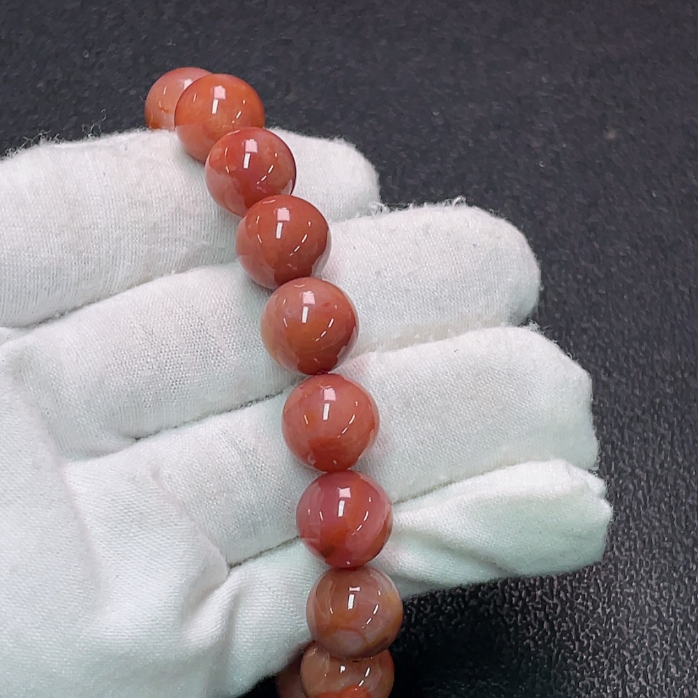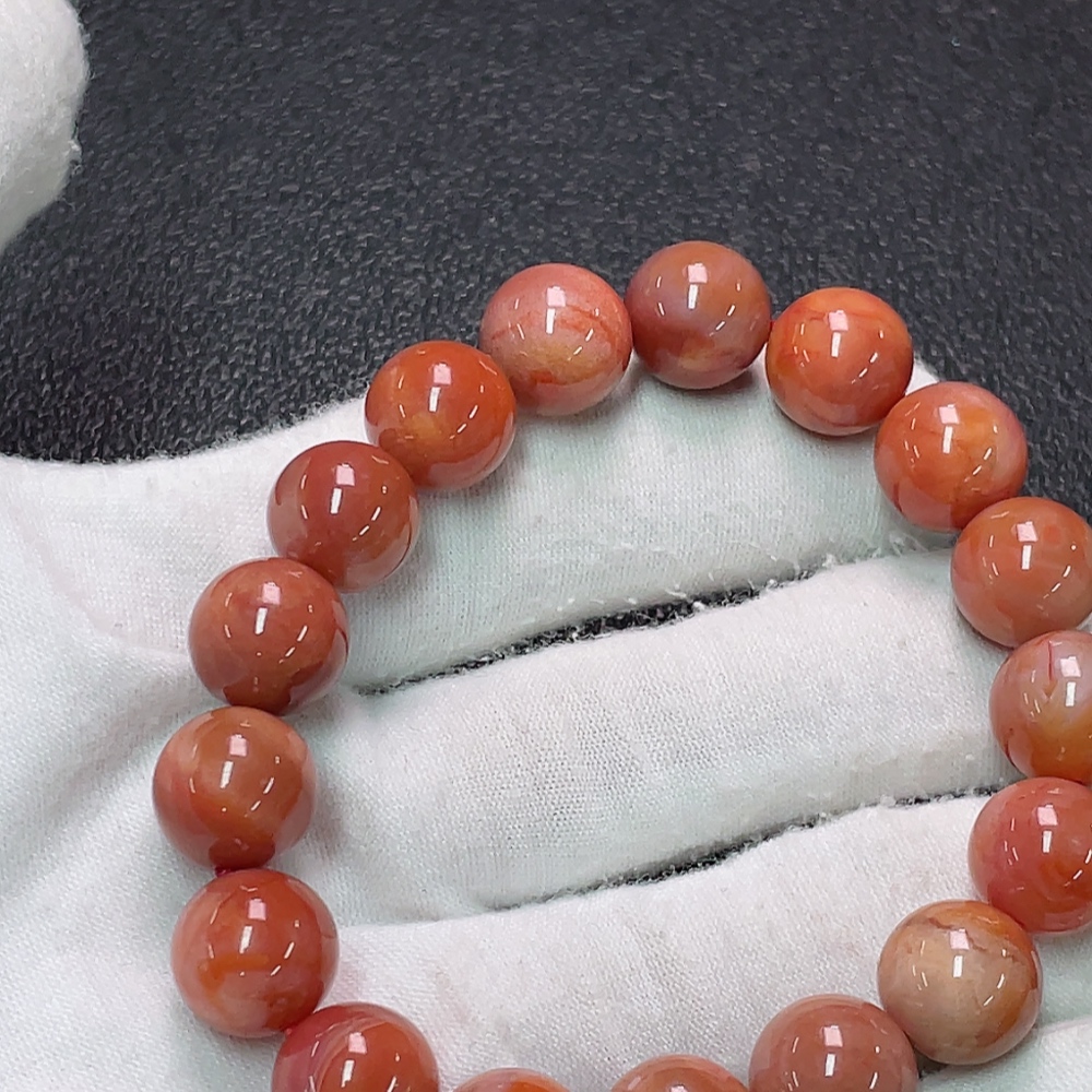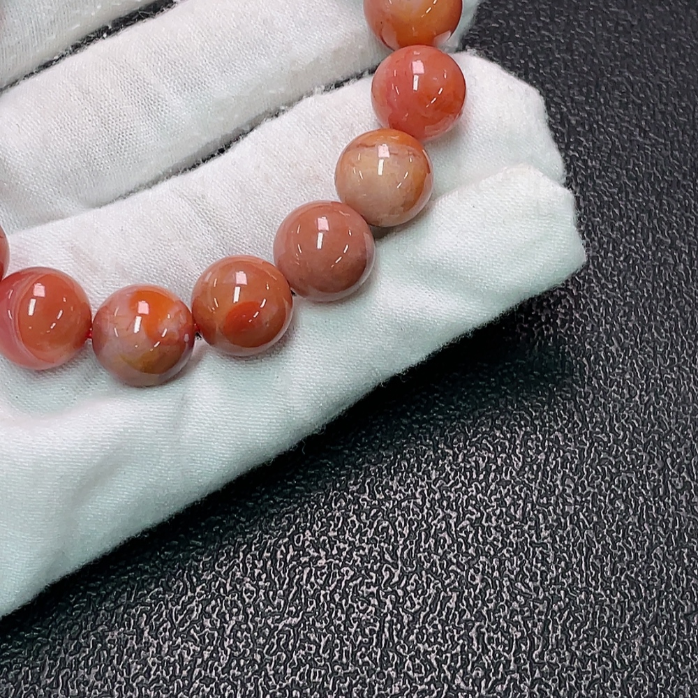 Red Agate Bracelet with Visible Organic Matter, Total Weight Approx. 37.11g, Size ~11.5mm