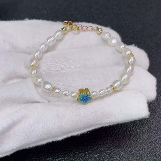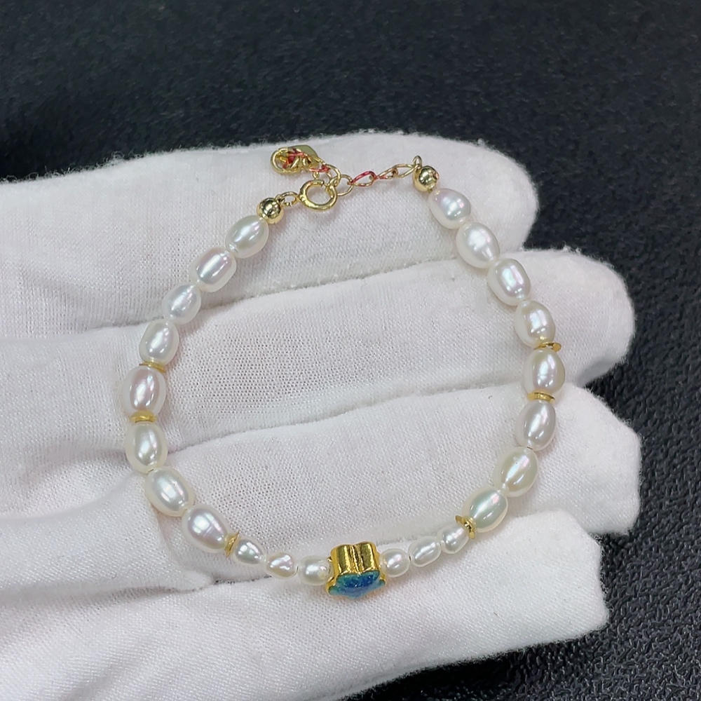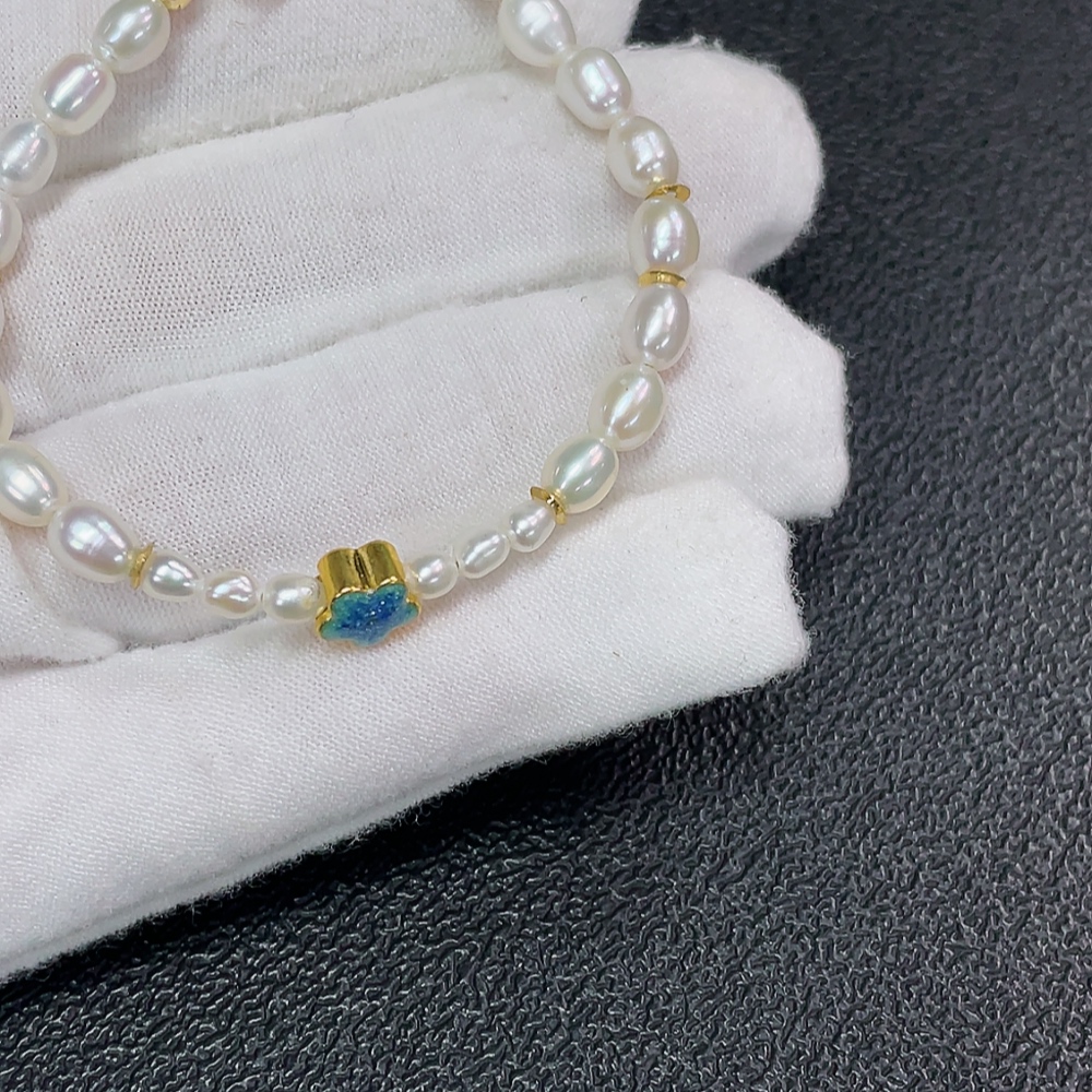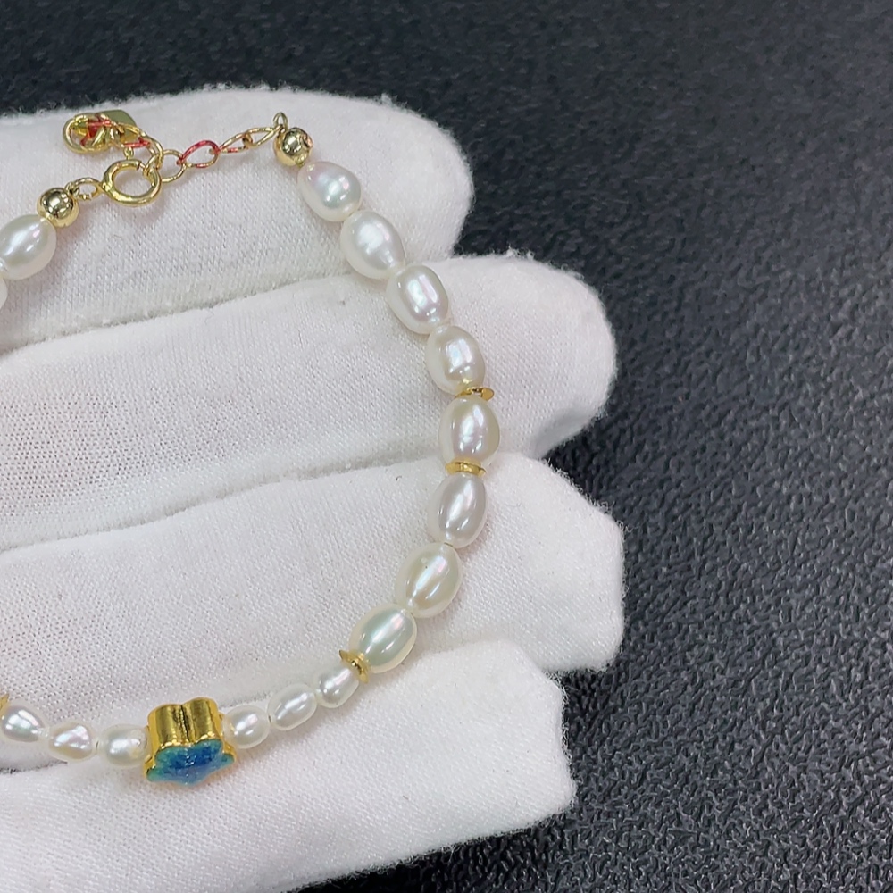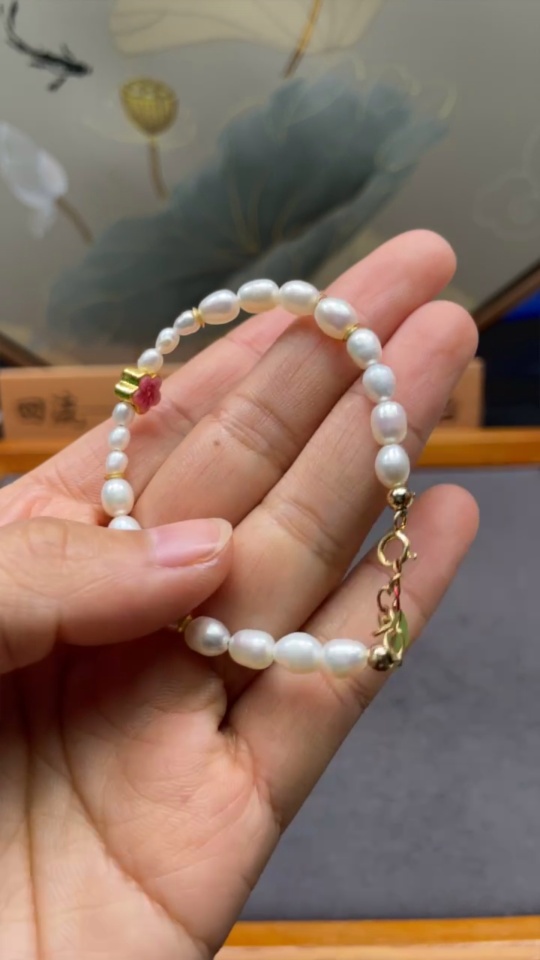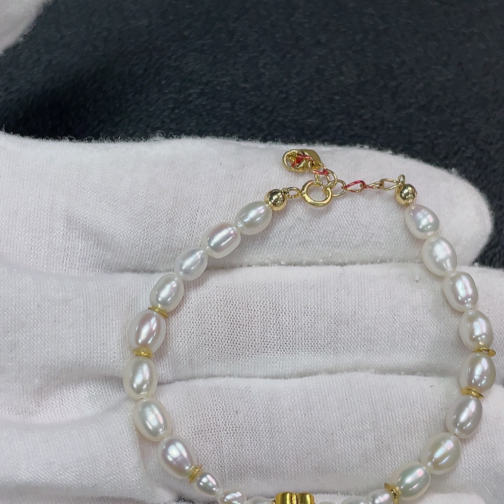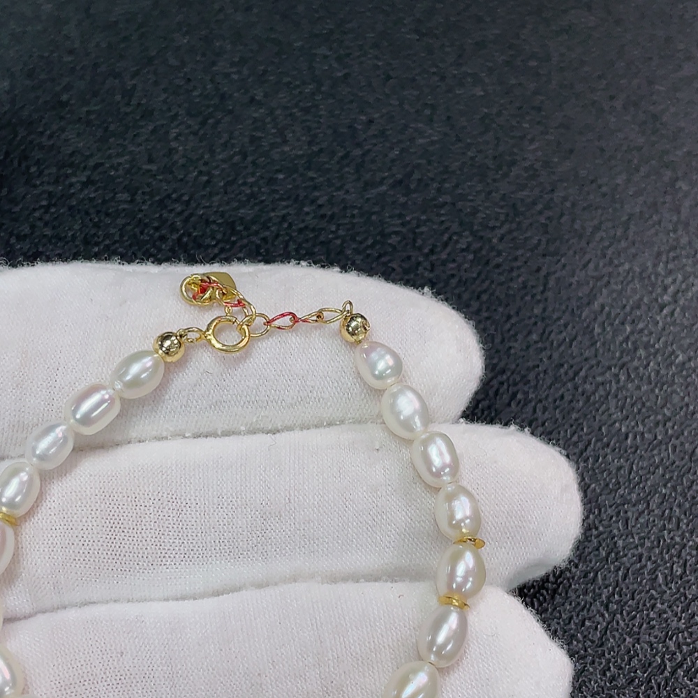 Pearl bracelet marked red non-gold no imprint tested gold content spacer Au65% star Au99% total weight approx. 4.85g stone size 3-5.2mm