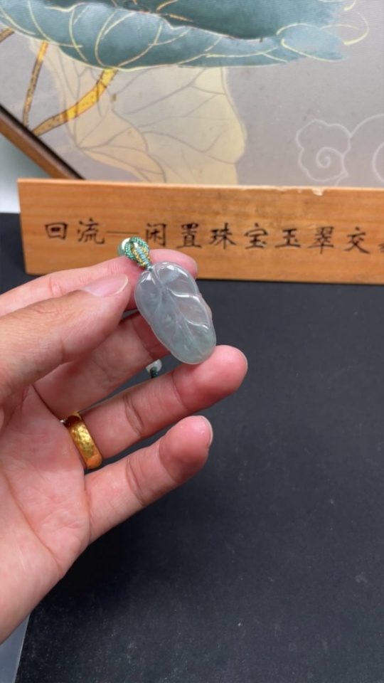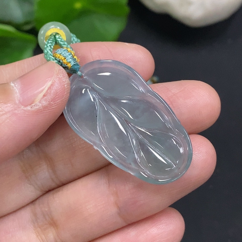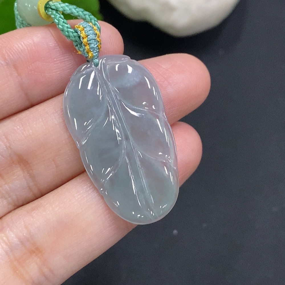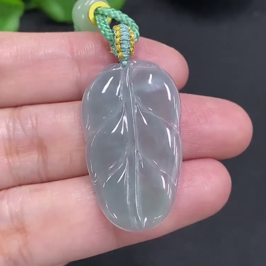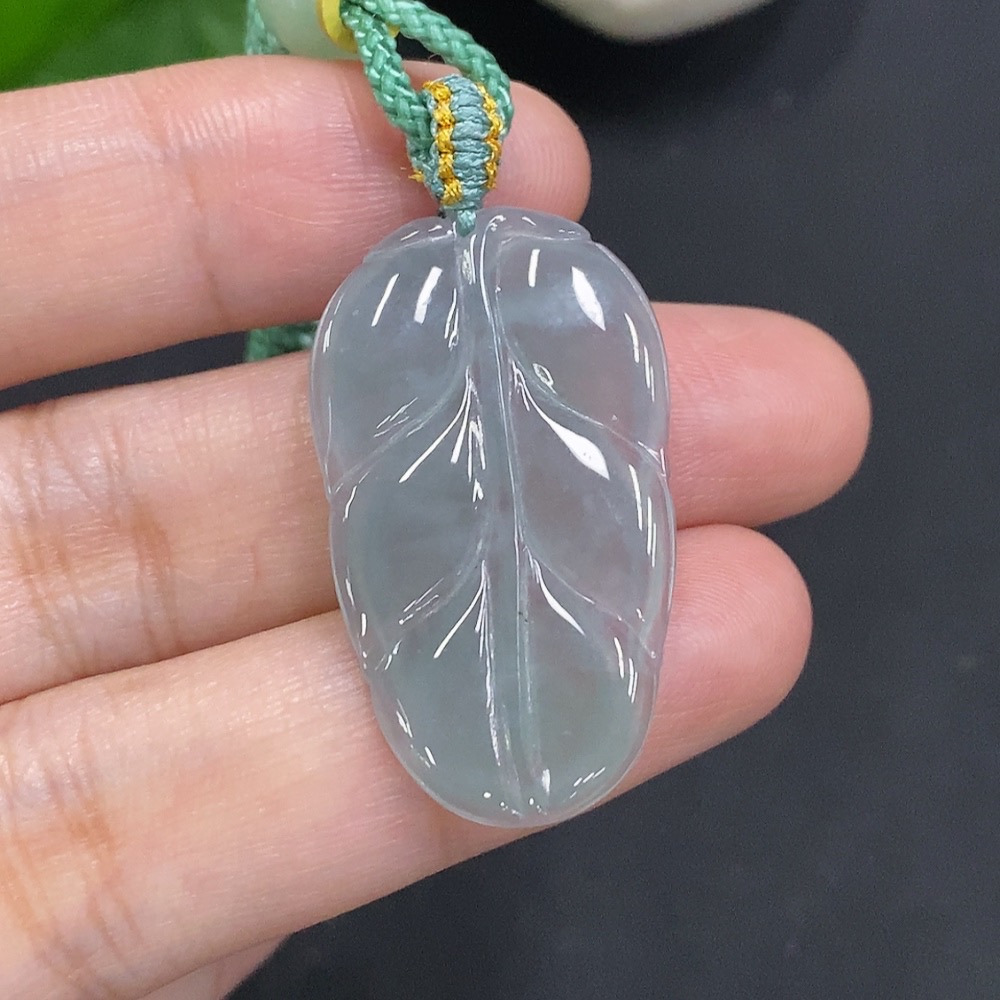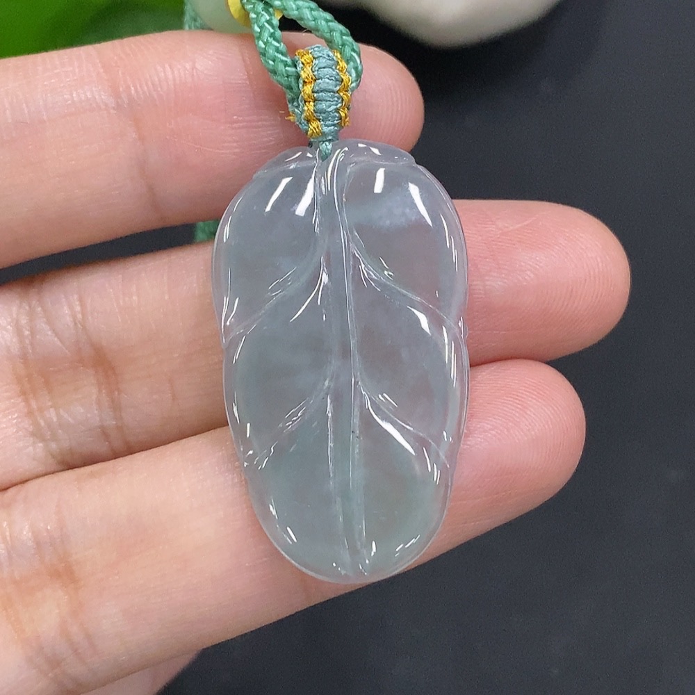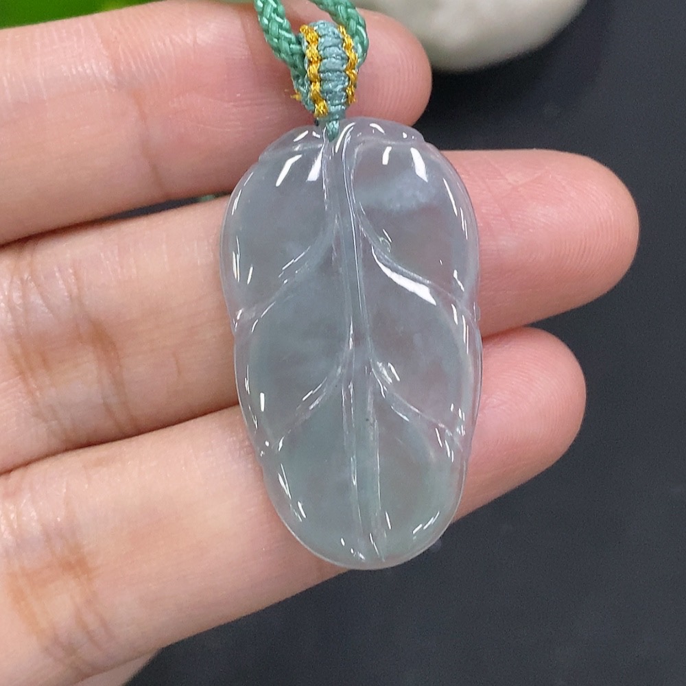 Jadeite Leaf Pendant Total Weight with Cord Approx. 5.9g (Beads Not Grade A)