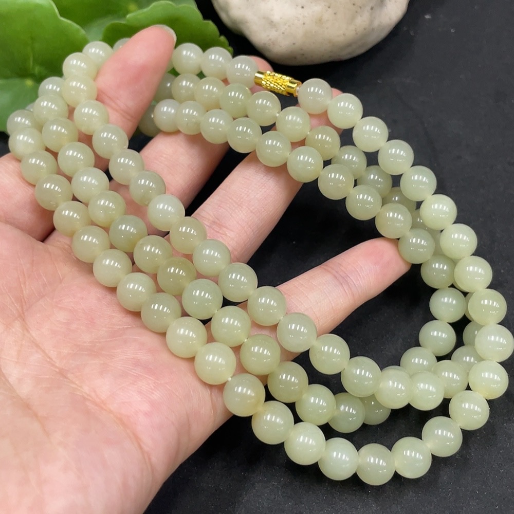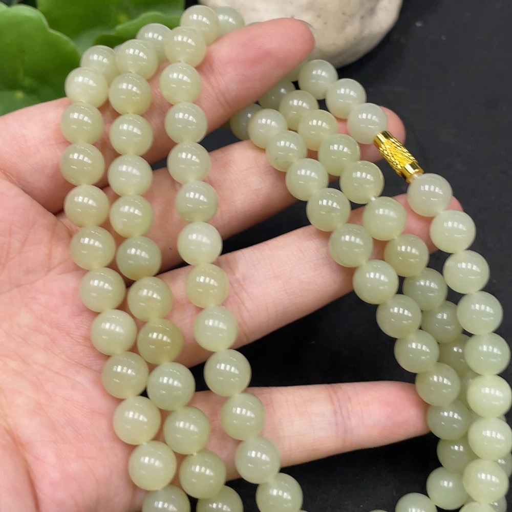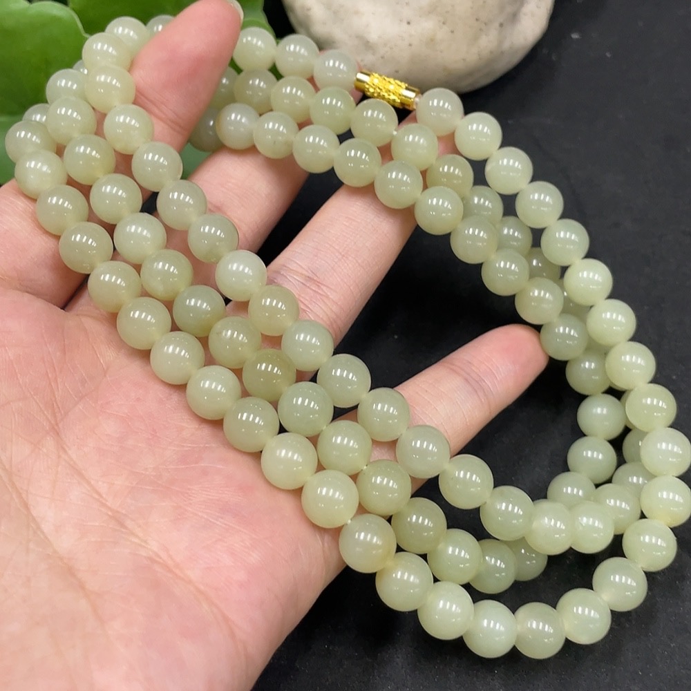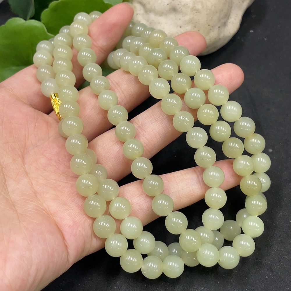 Hetian Jade Bead Necklace, Approx. 7.7mm, Total Weight Approx. 84.2g, Non-Gold