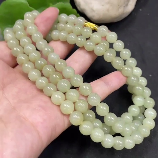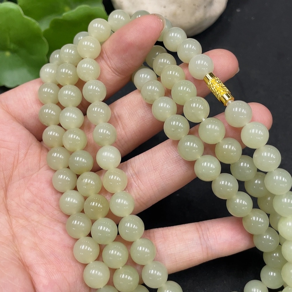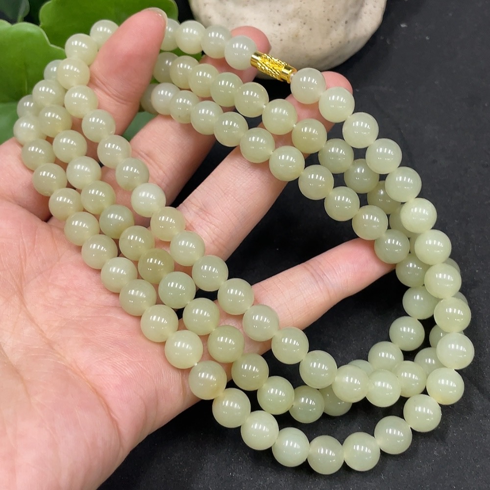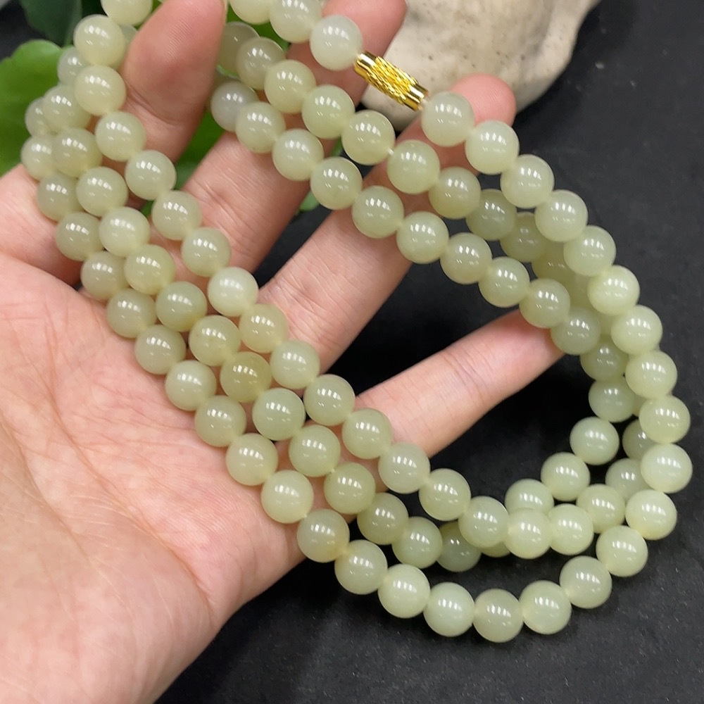 Hetian Jade Bead Necklace, Approx. 7.7mm, Total Weight Approx. 84.2g, Non-Gold