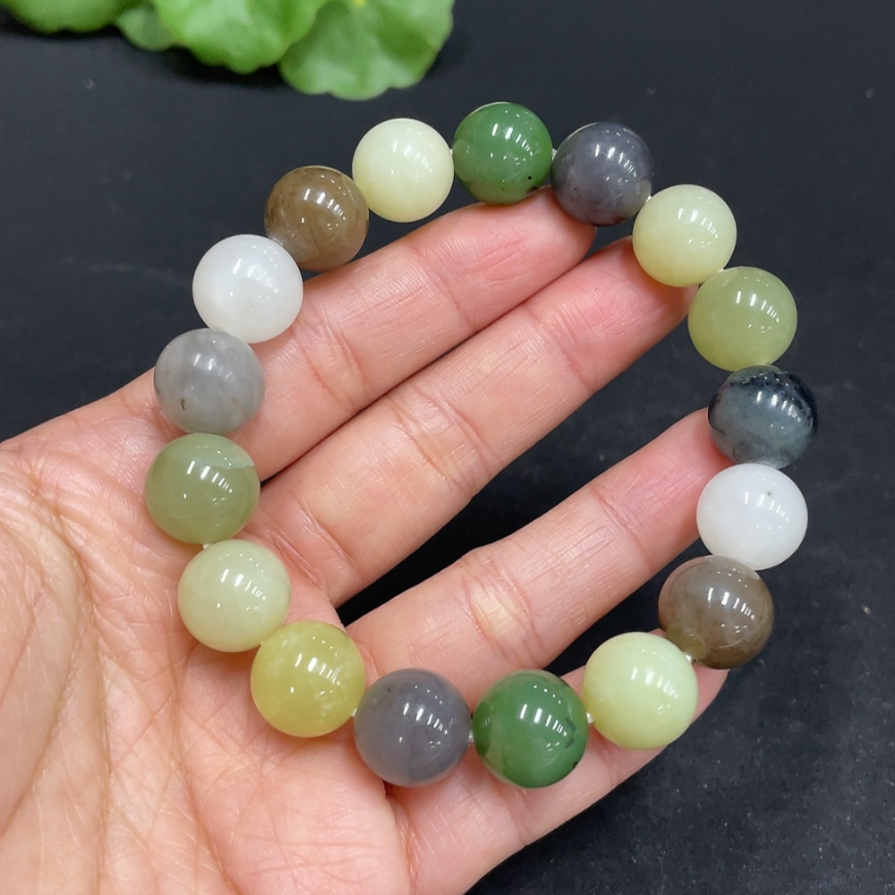 Hetian Jade Bracelet, Approx. 11.8mm, Total Weight Approx. 45.4g, Contains Other Mineral Components