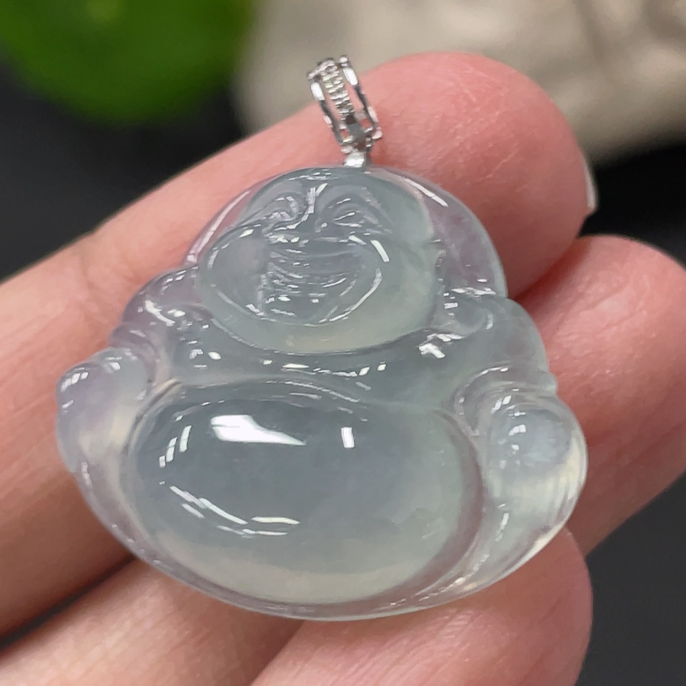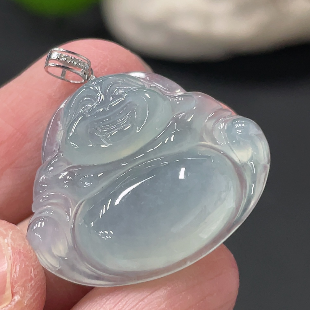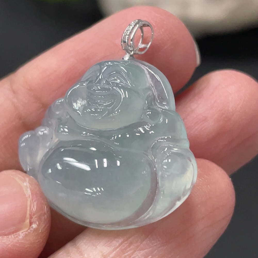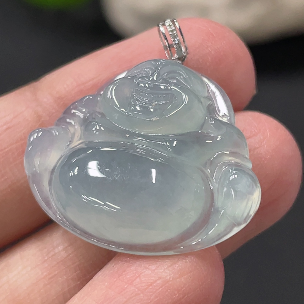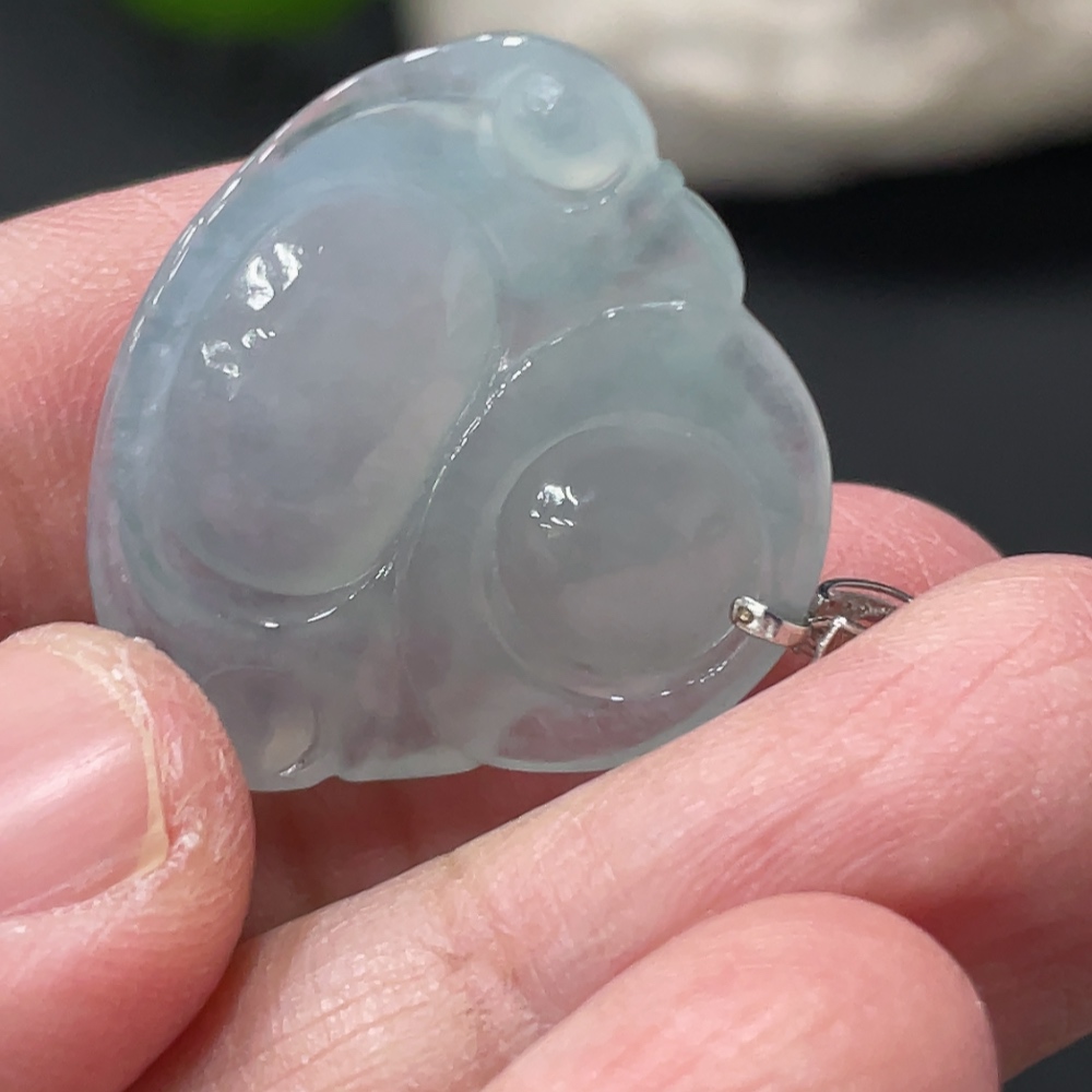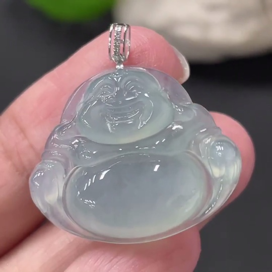 Jadeite Buddha Pendant with 18K Gold Clasp, Total Weight Approx. 5.27g, Set with Diamonds