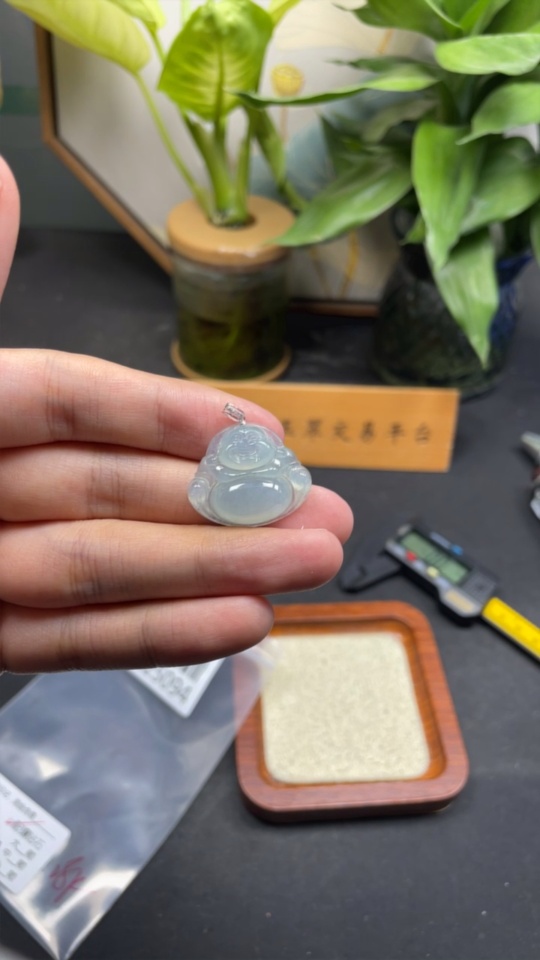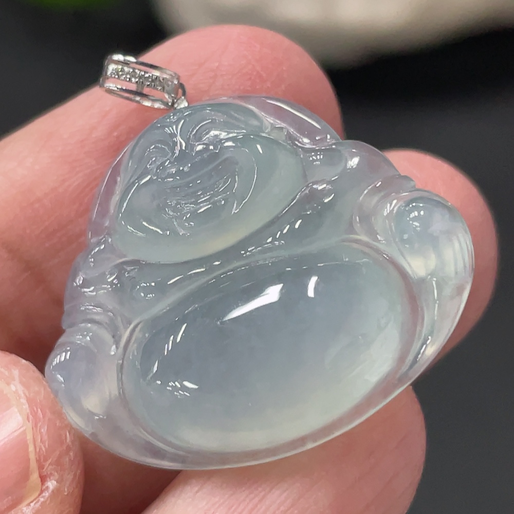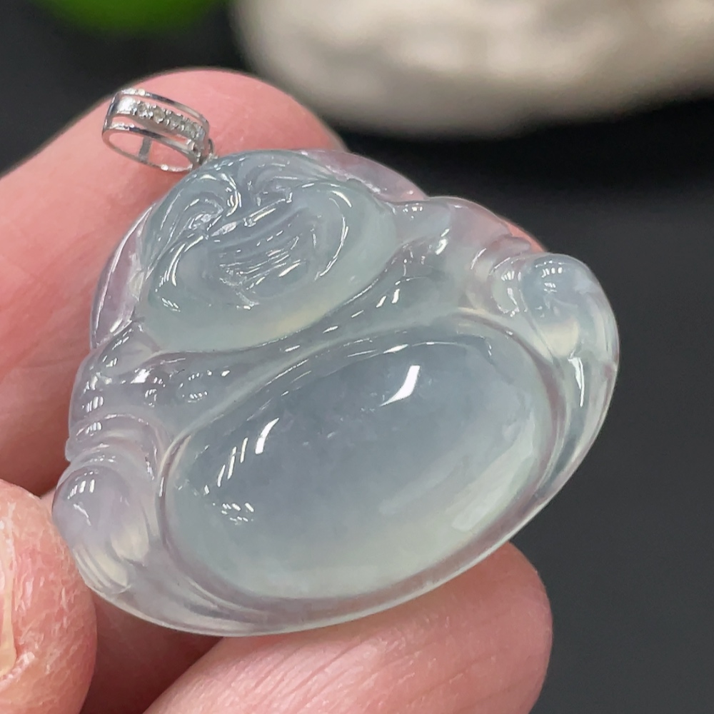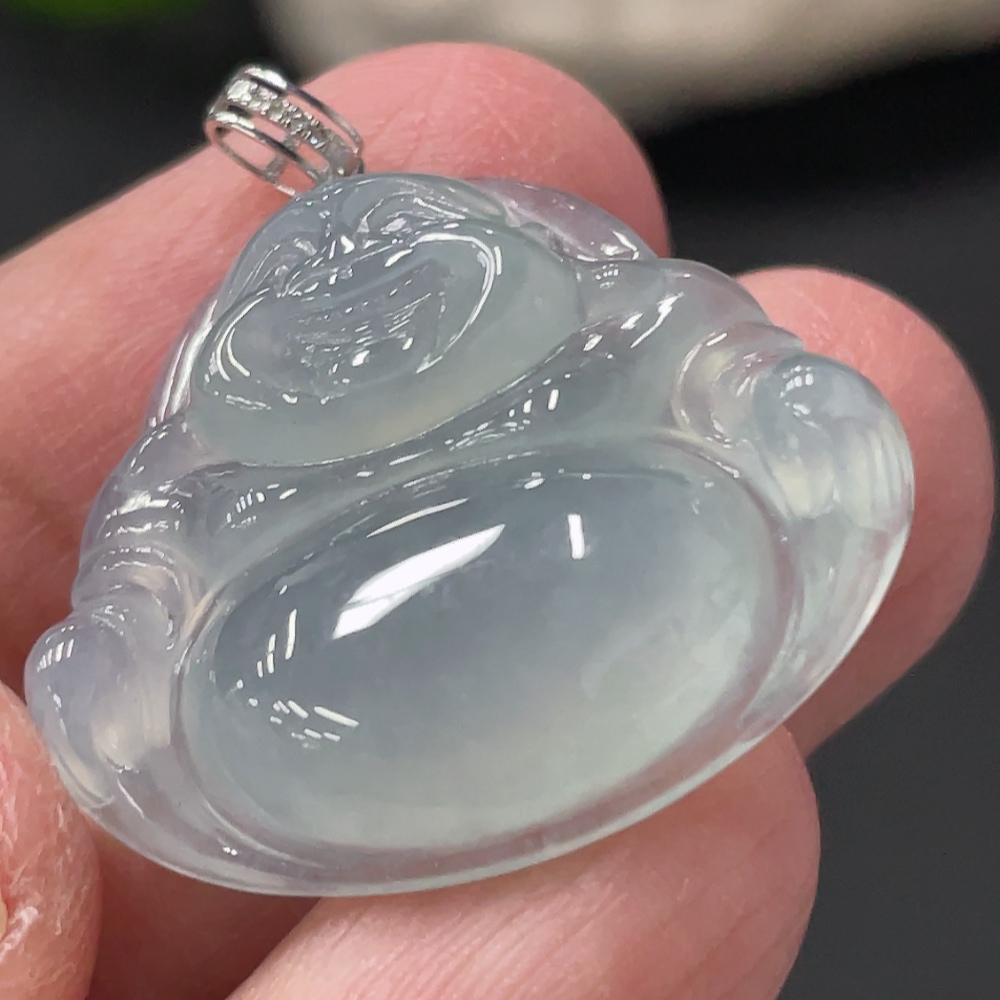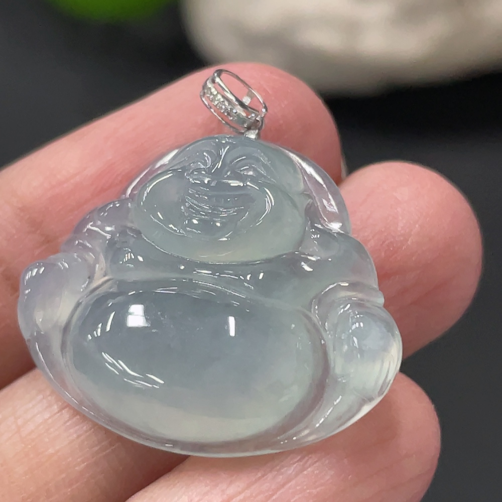 Jadeite Buddha Pendant with 18K Gold Clasp, Total Weight Approx. 5.27g, Set with Diamonds
