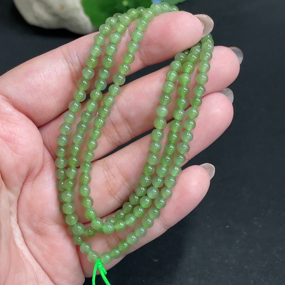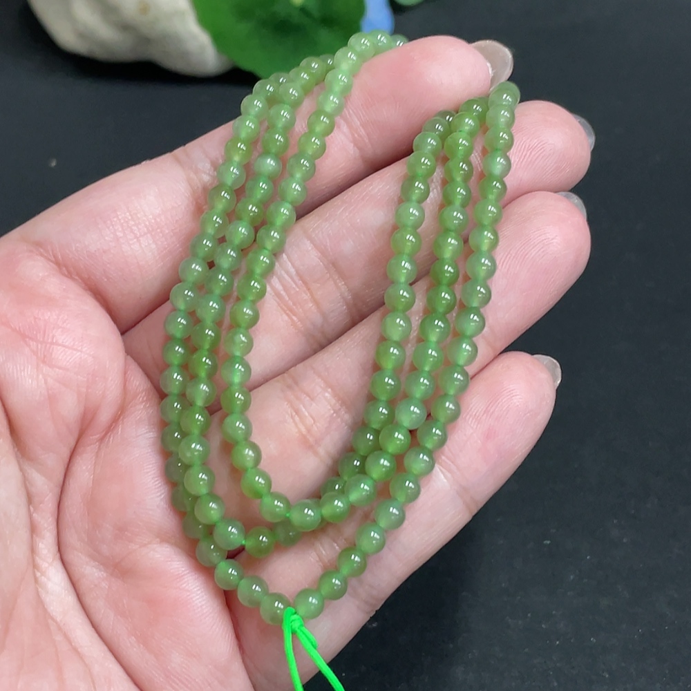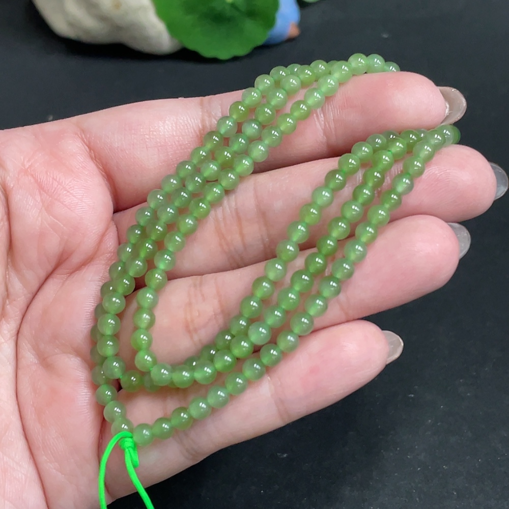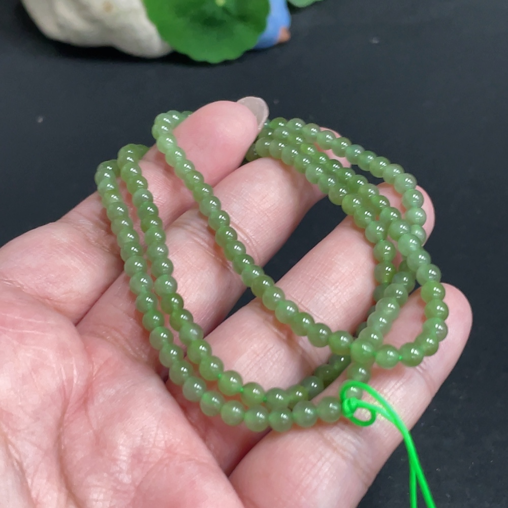 Hetian Jade Bead Necklace, Approx. 3.7mm, Total Weight Approx. 14.6g