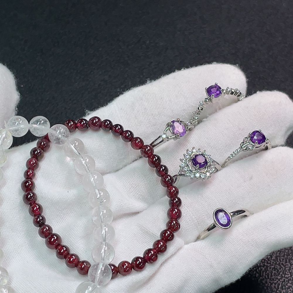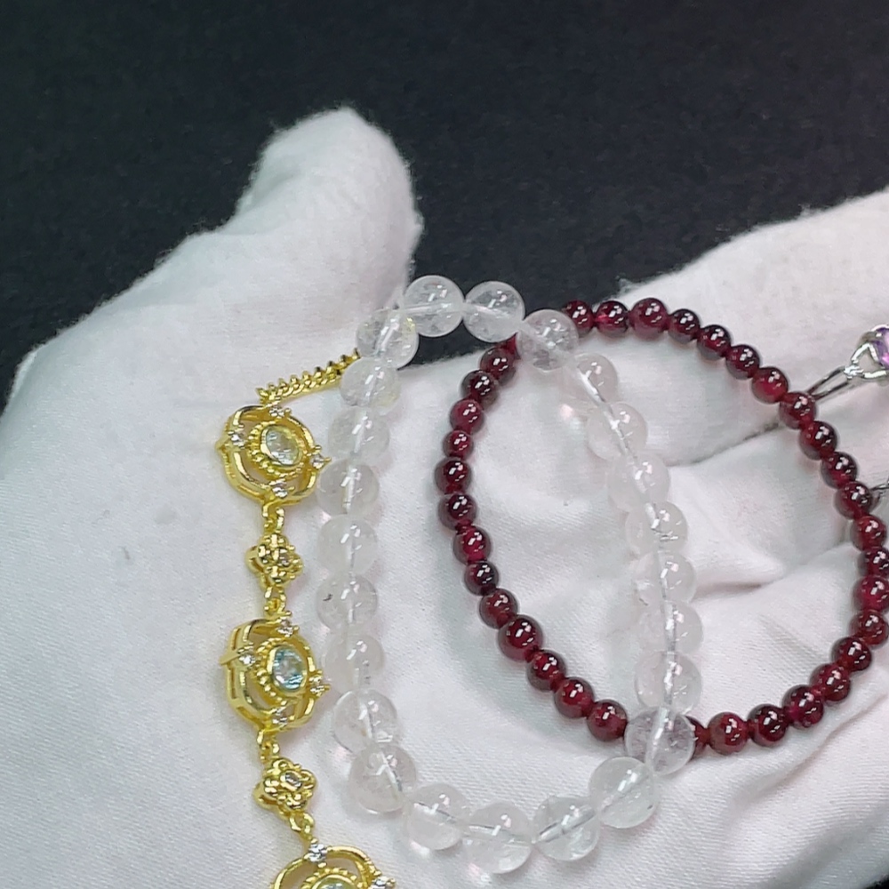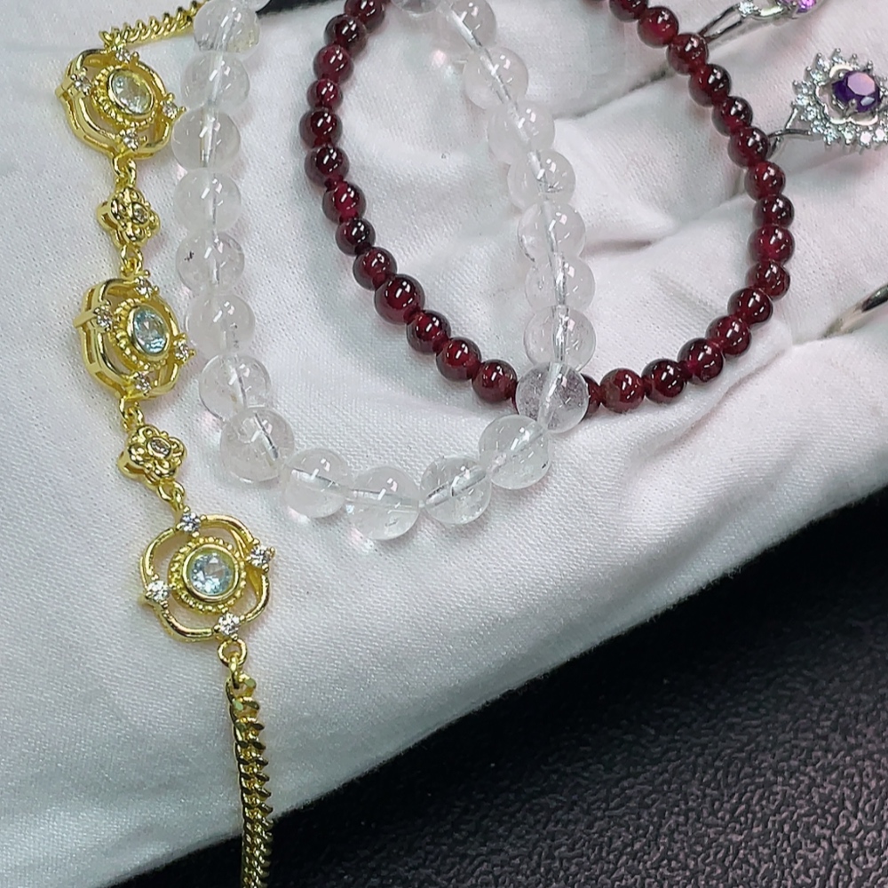 Crystal + Topaz (Color Origin Undetermined) + Garnet Jewelry (Non-Gold, Total Weight Approx. 29.49g, Sell as a Lot)