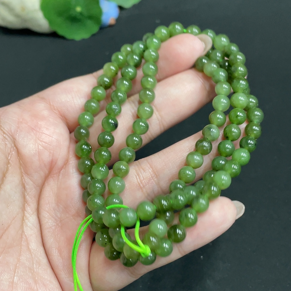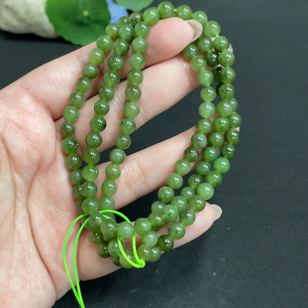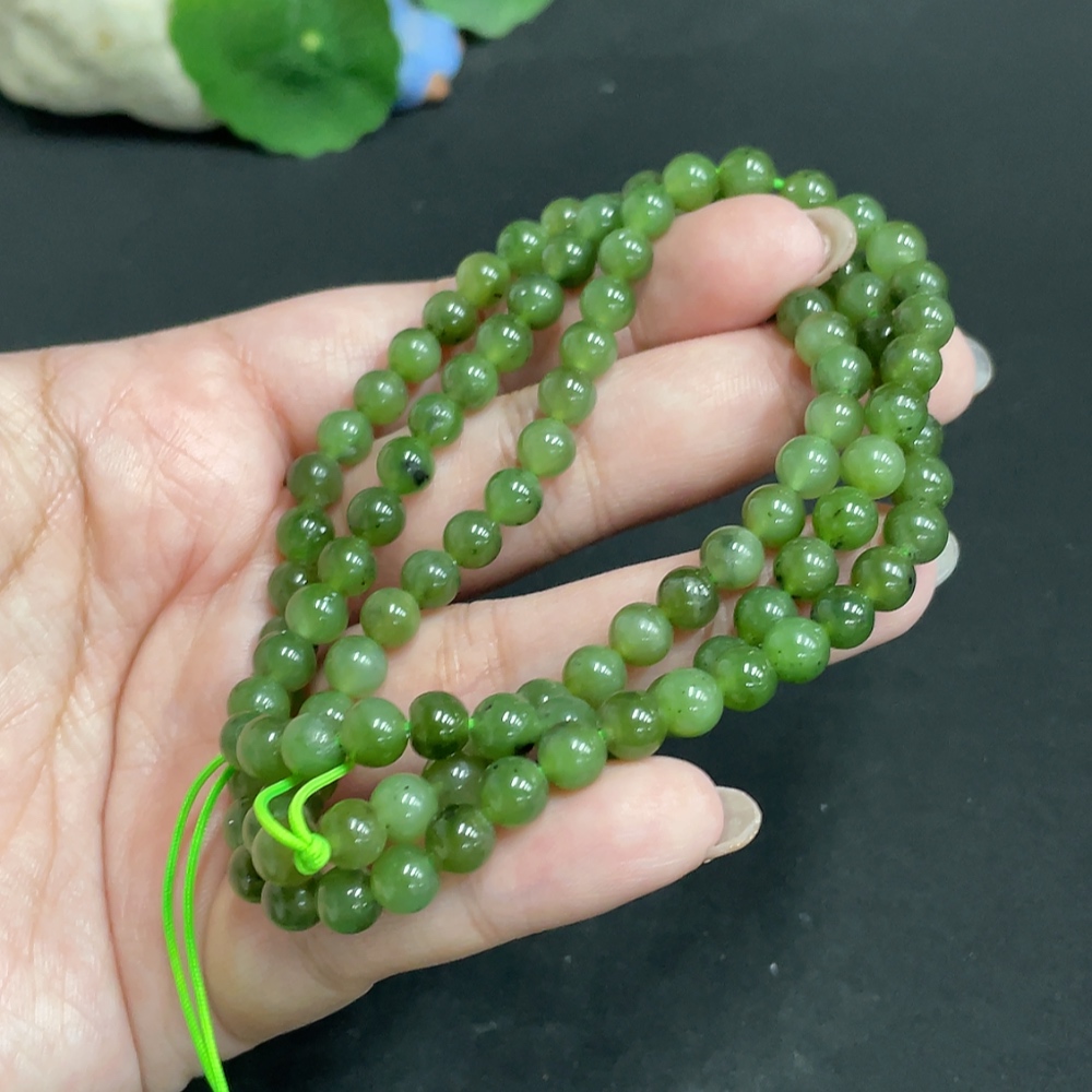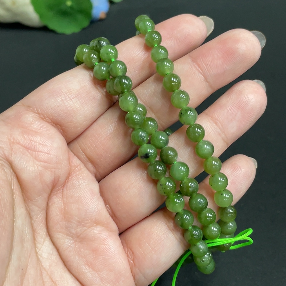 Hetian Jade Jasper Bead Necklace, Approx. 6mm, Total Weight Approx. 38.5g