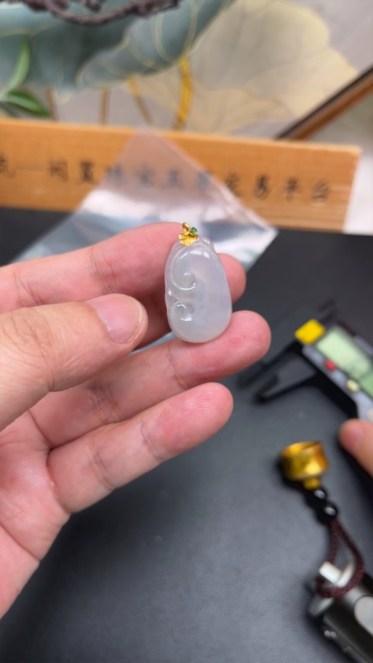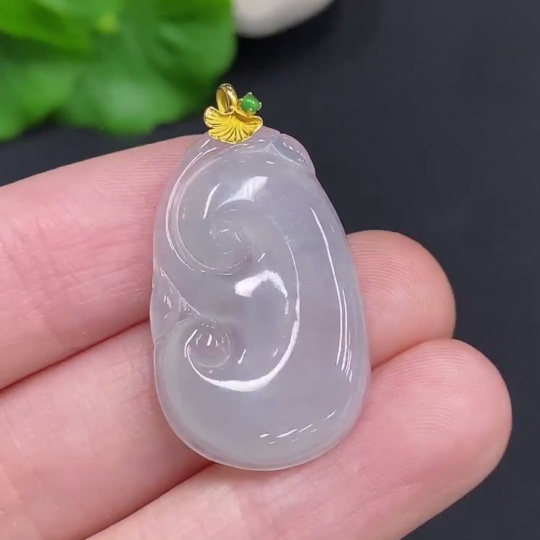 Jadeite Ruyi Pendant Total Weight Approx. 3.59g 18k Gold Clasp