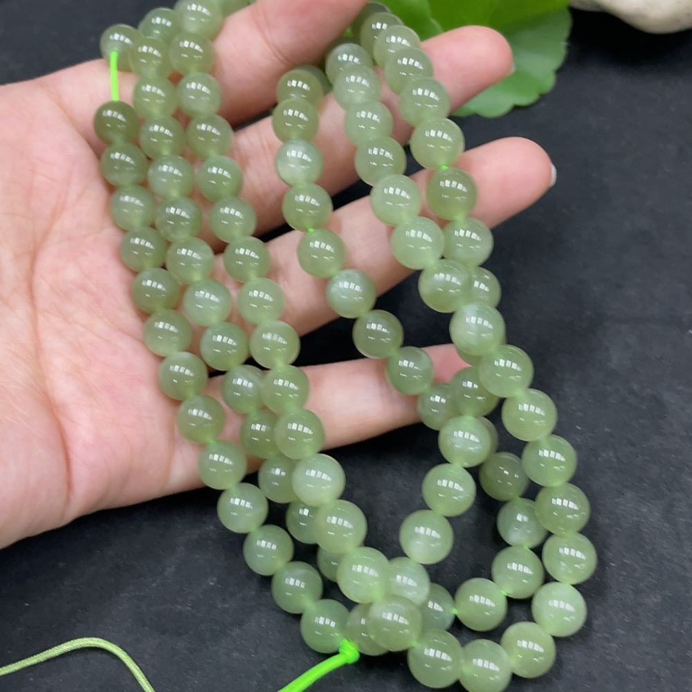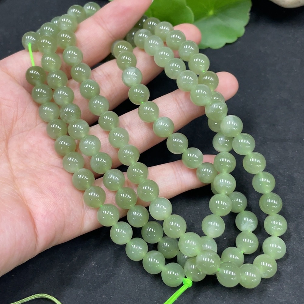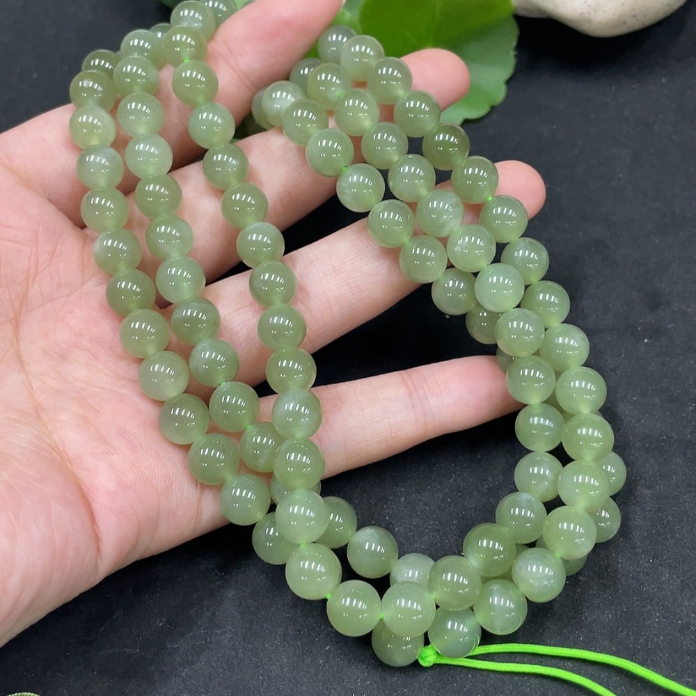 Hetian Jade Bead Necklace, Approx. 7.7mm, Total Weight Approx. 81.9g