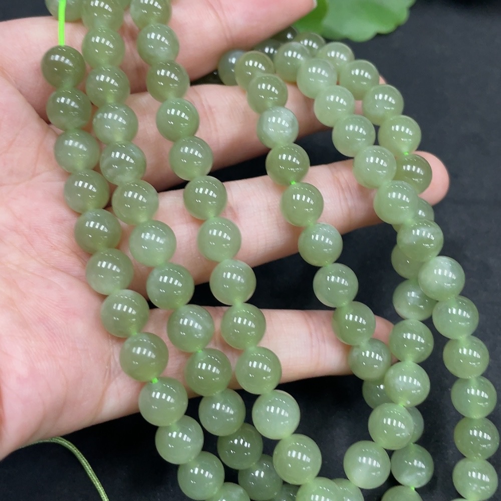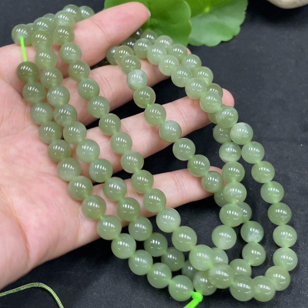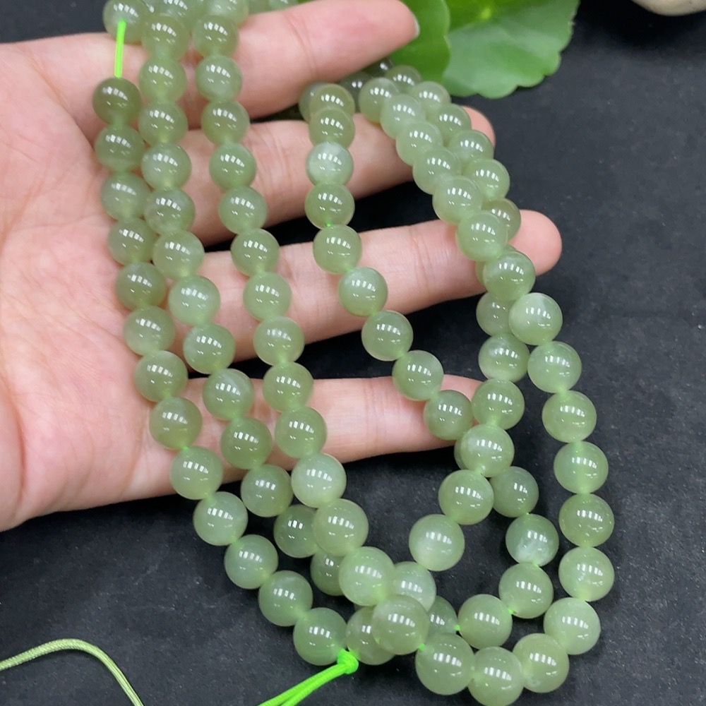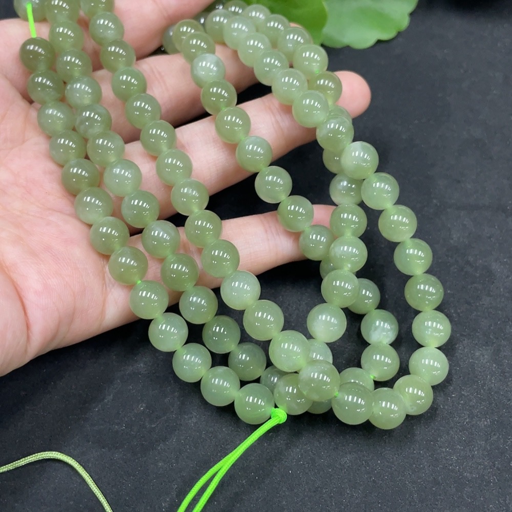 Hetian Jade Bead Necklace, Approx. 7.7mm, Total Weight Approx. 81.9g