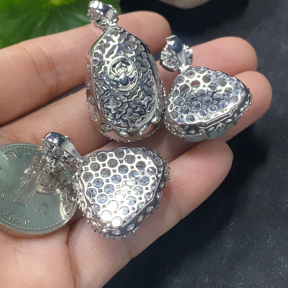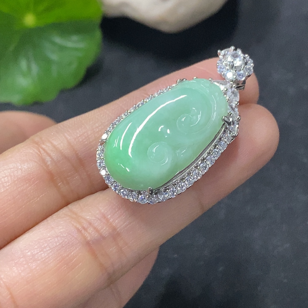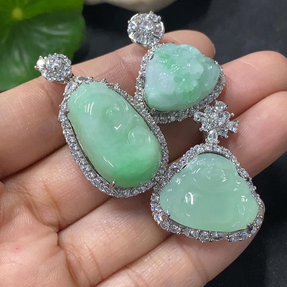 Jadeite Inlaid Pendant Ruyi Buddha Lotus Non-Gold Inlaid Total Weight Approx. 17.9g