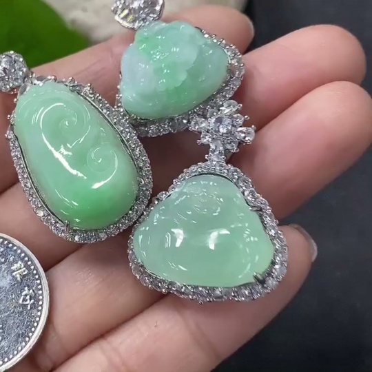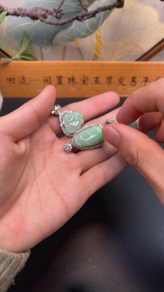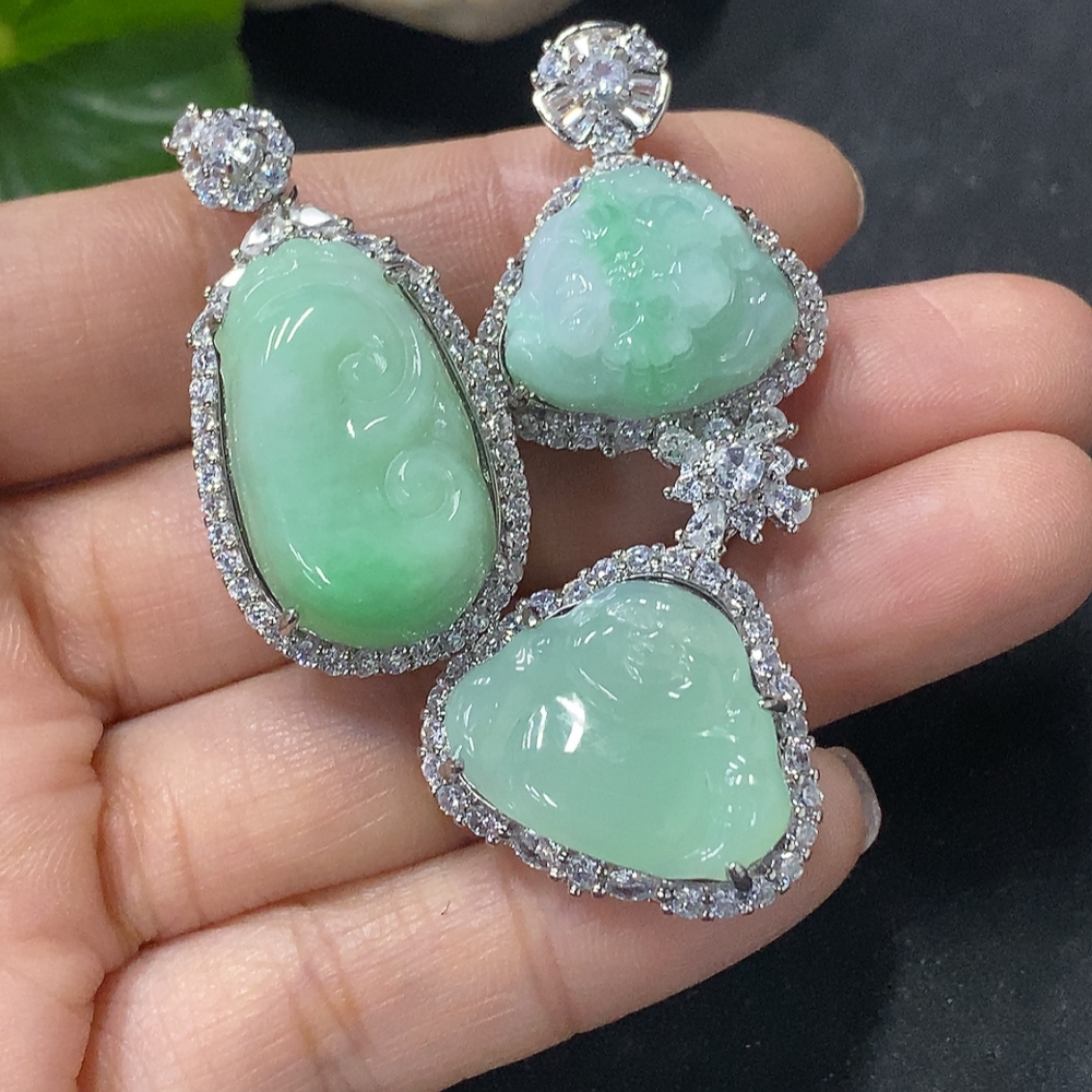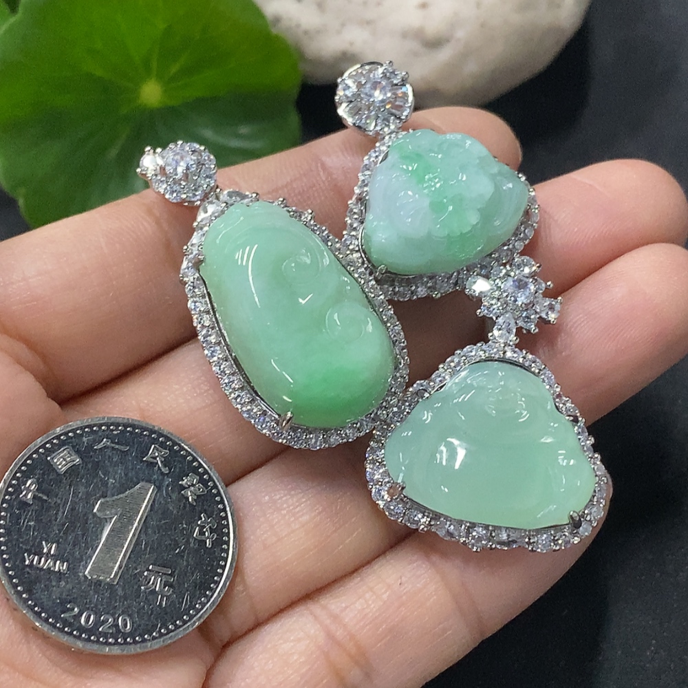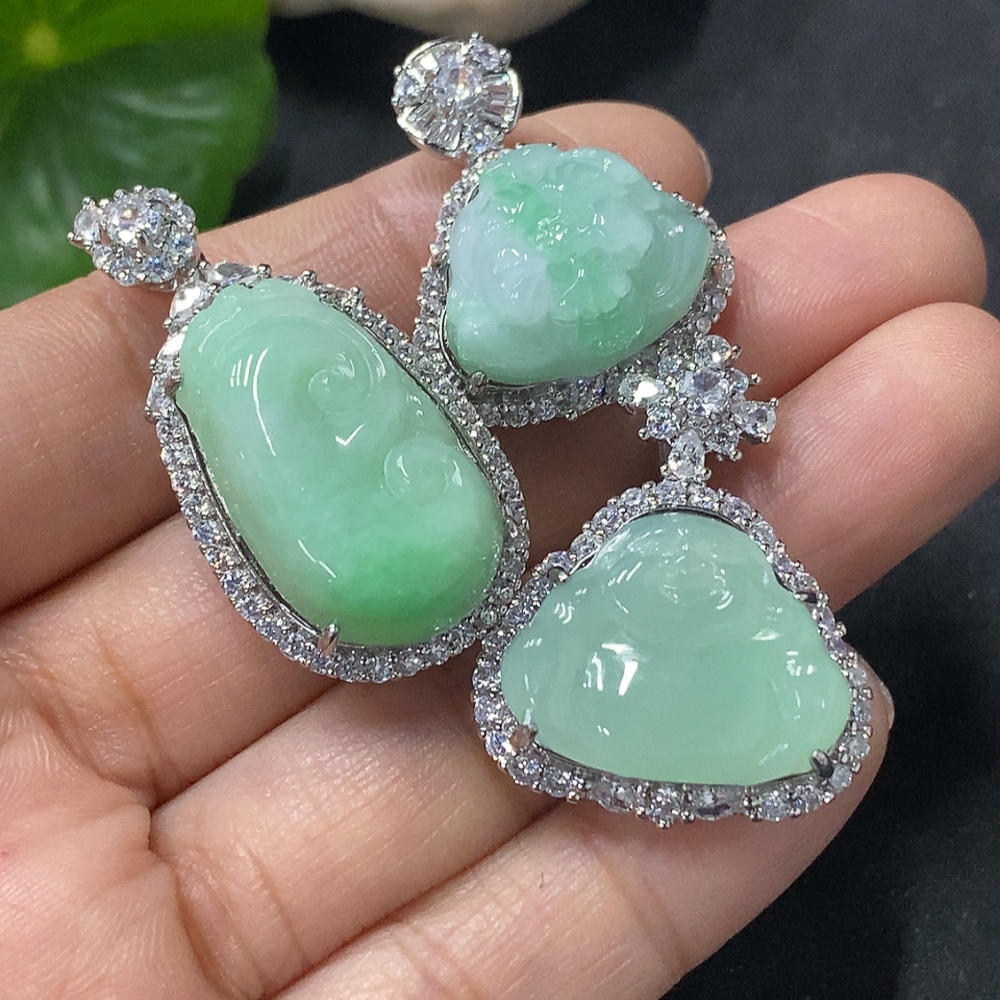 Jadeite Inlaid Pendant Ruyi Buddha Lotus Non-Gold Inlaid Total Weight Approx. 17.9g