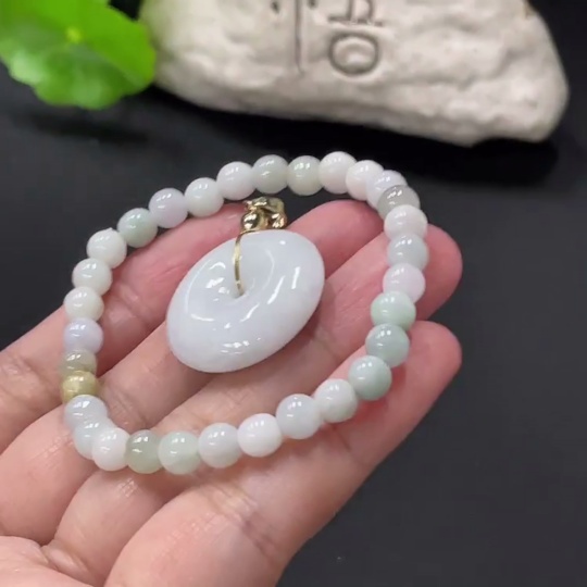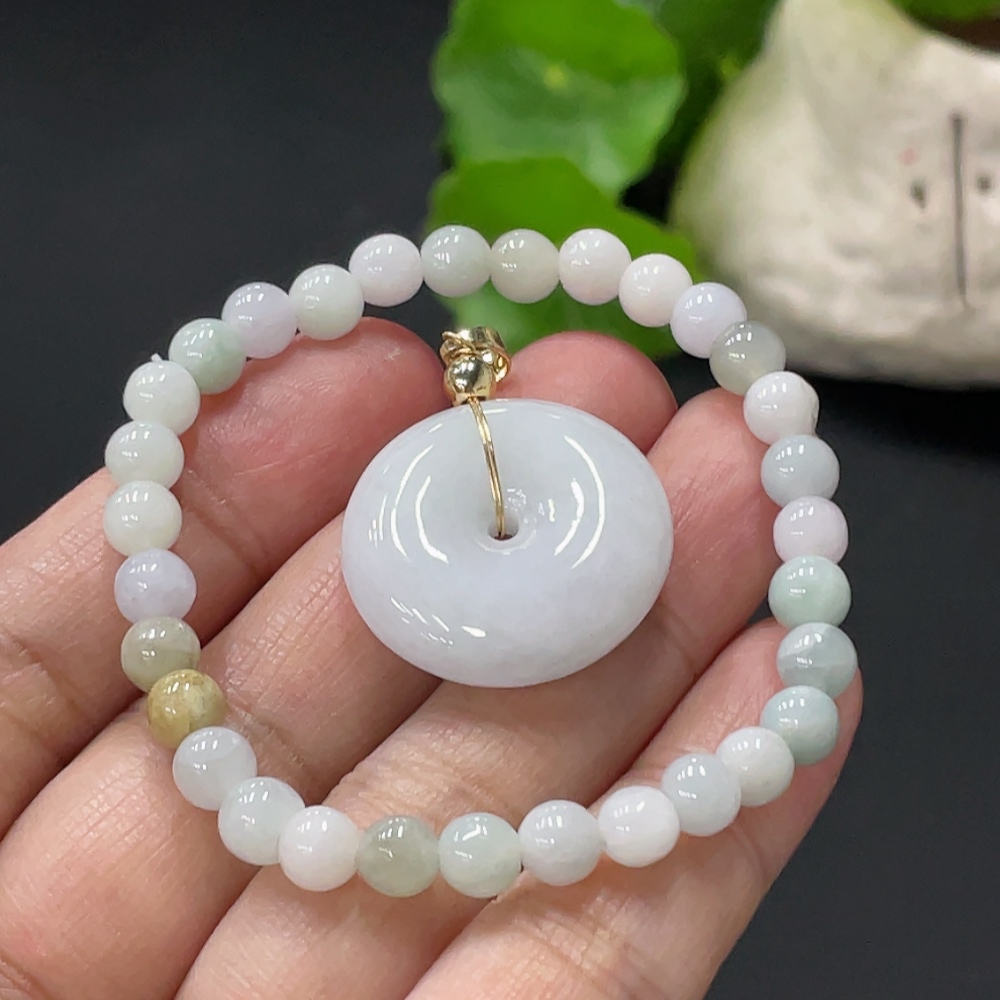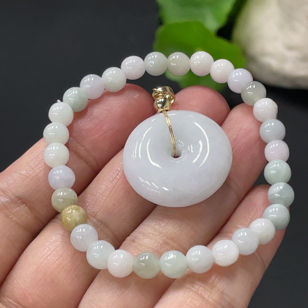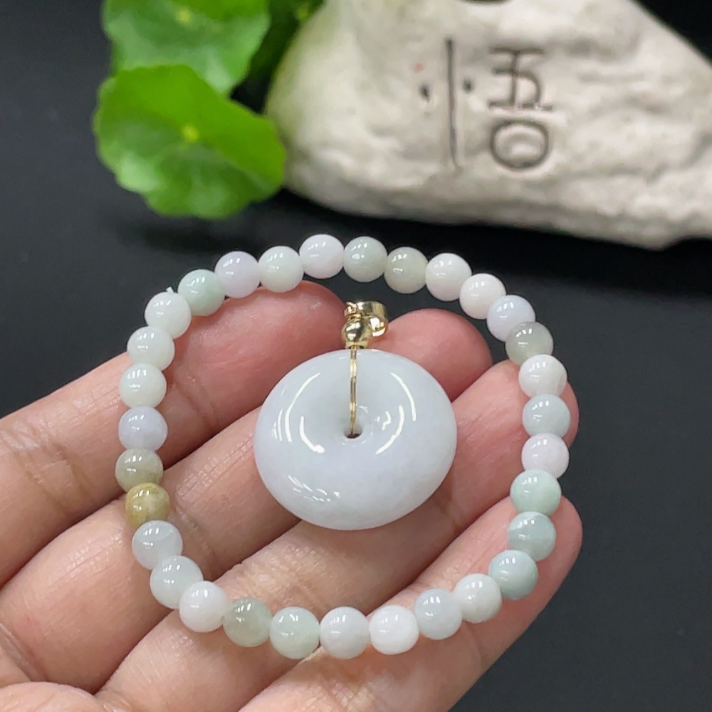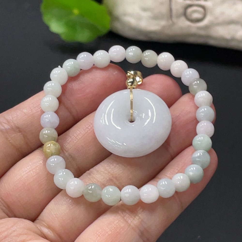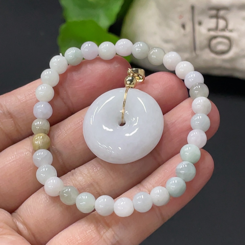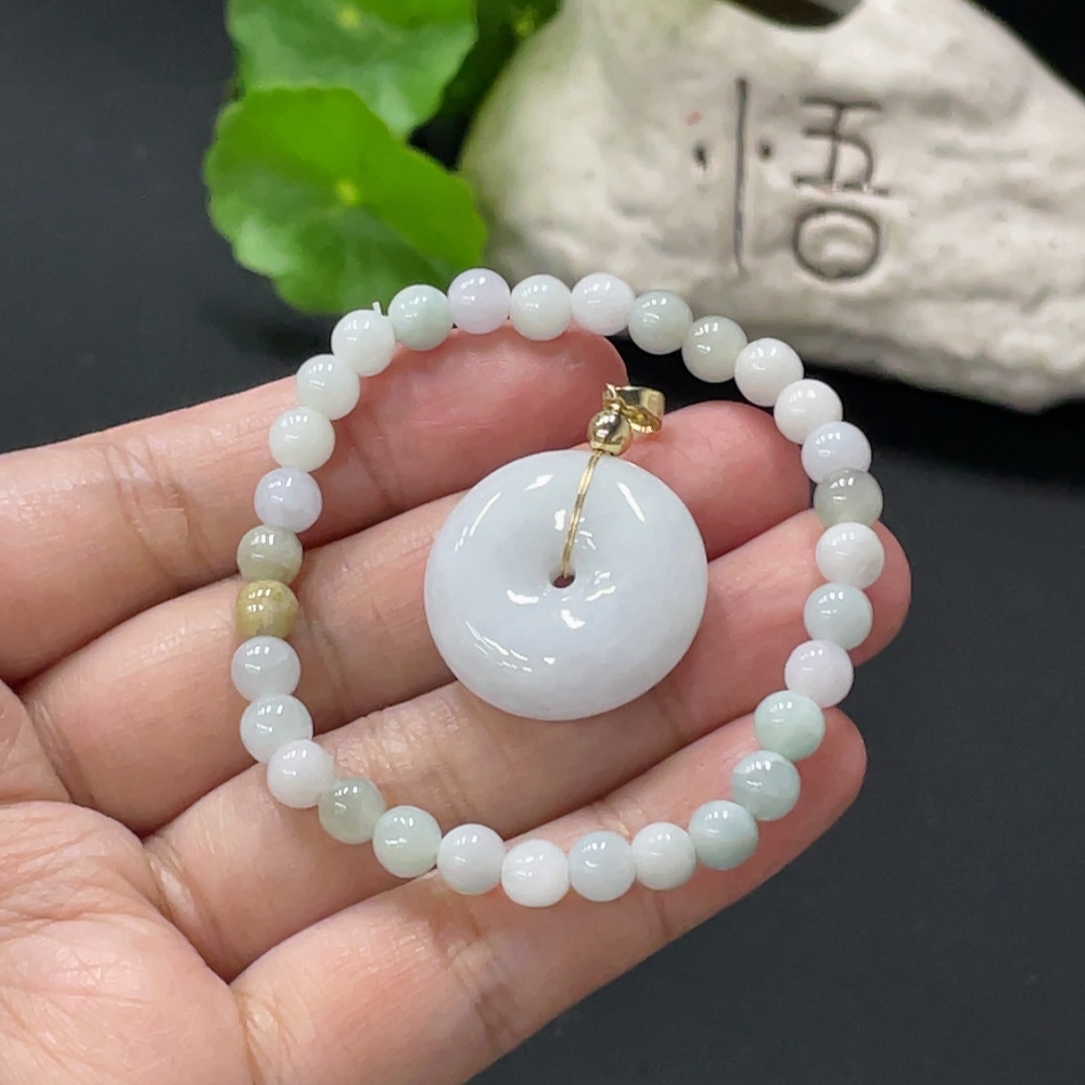 Jadeite Safety Pendant + Bracelet, Approx. 5.5mm, Non-Gold Pendant Loop, Total Weight Approx. 16.1g