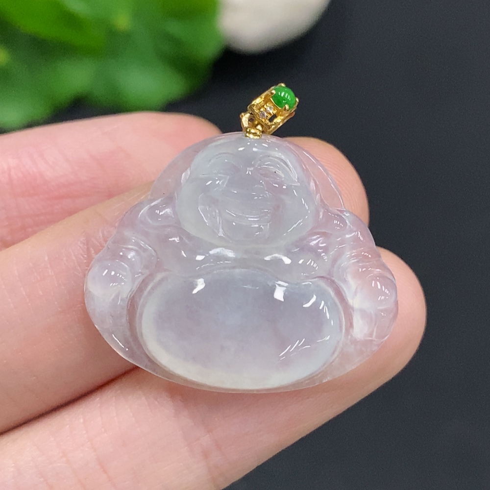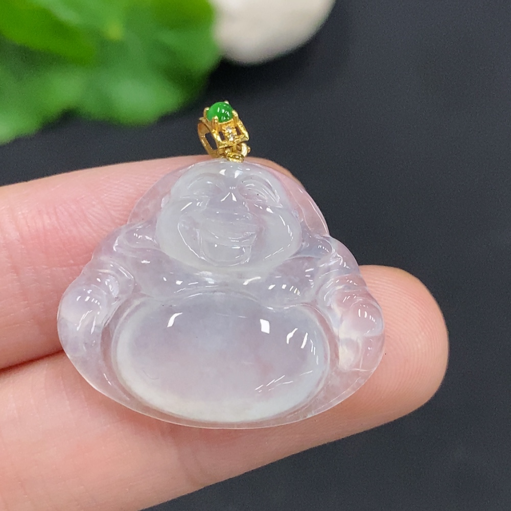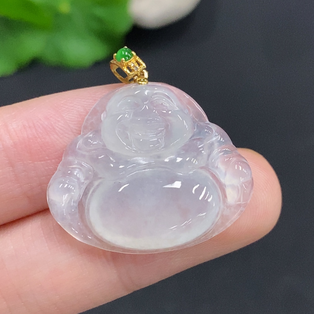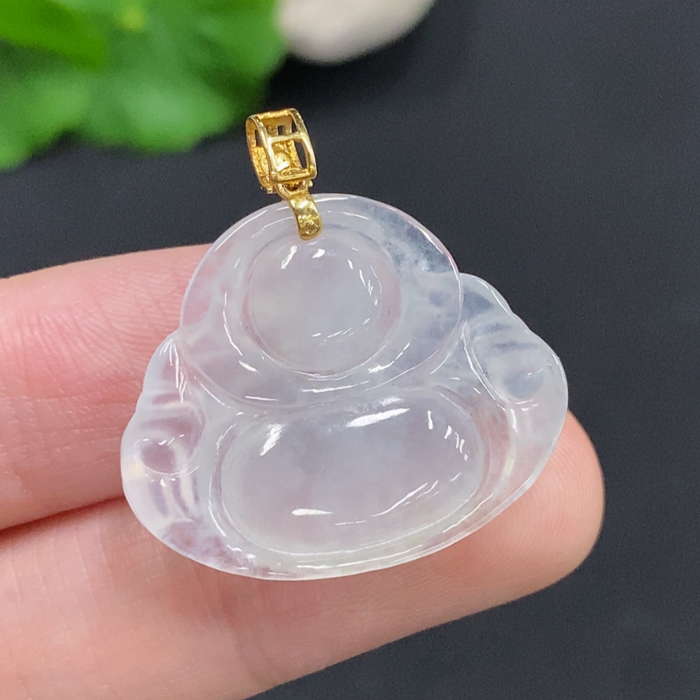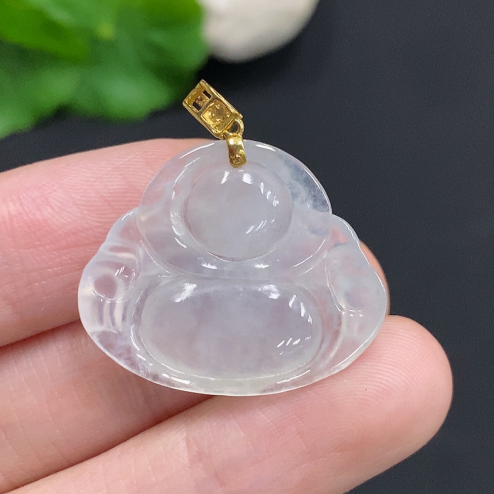 Jadeite Buddha Pendant, Total Weight Approx. 4.22g, 18K Gold Clasp with Diamond Accents