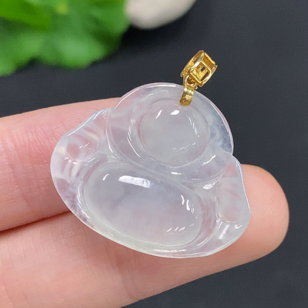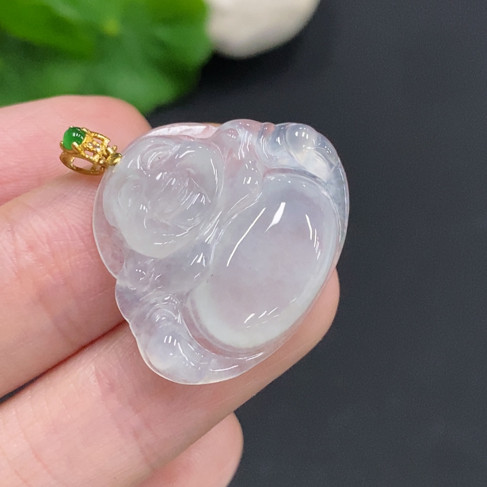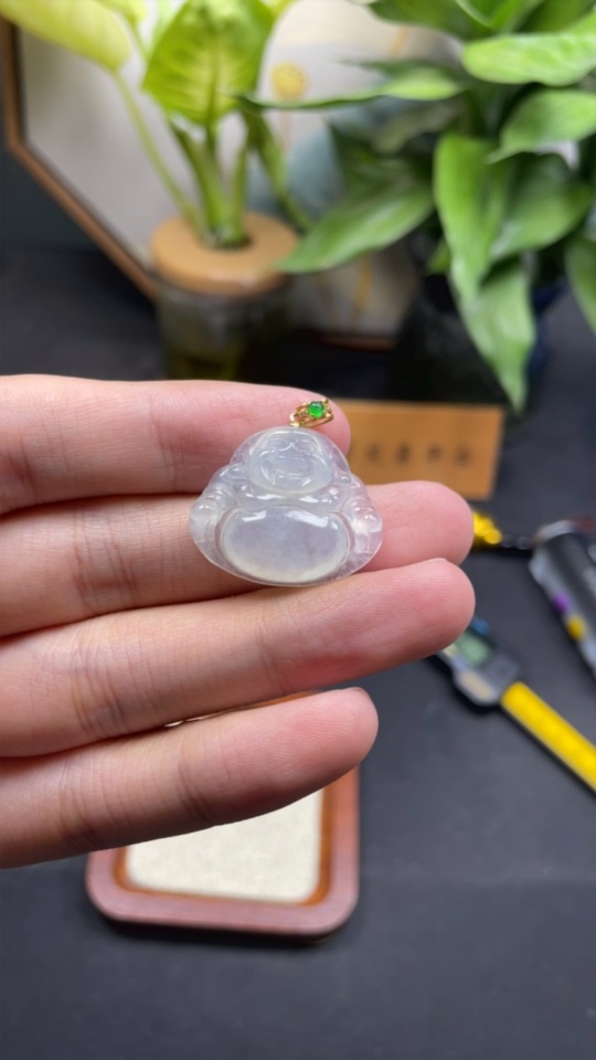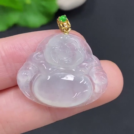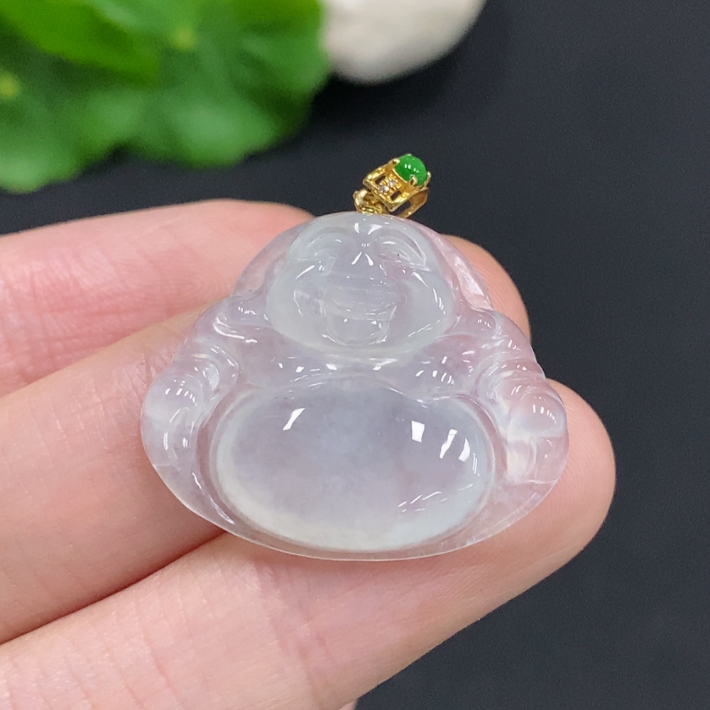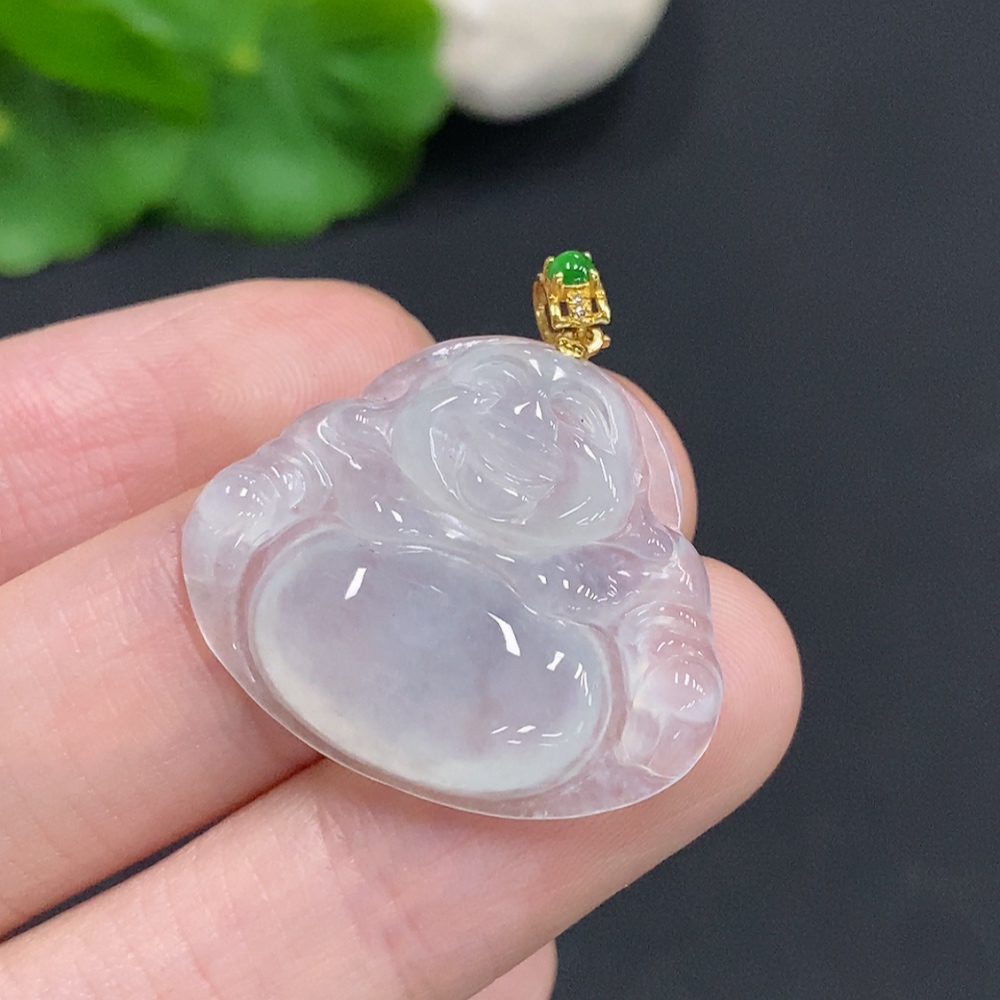 Jadeite Buddha Pendant, Total Weight Approx. 4.22g, 18K Gold Clasp with Diamond Accents