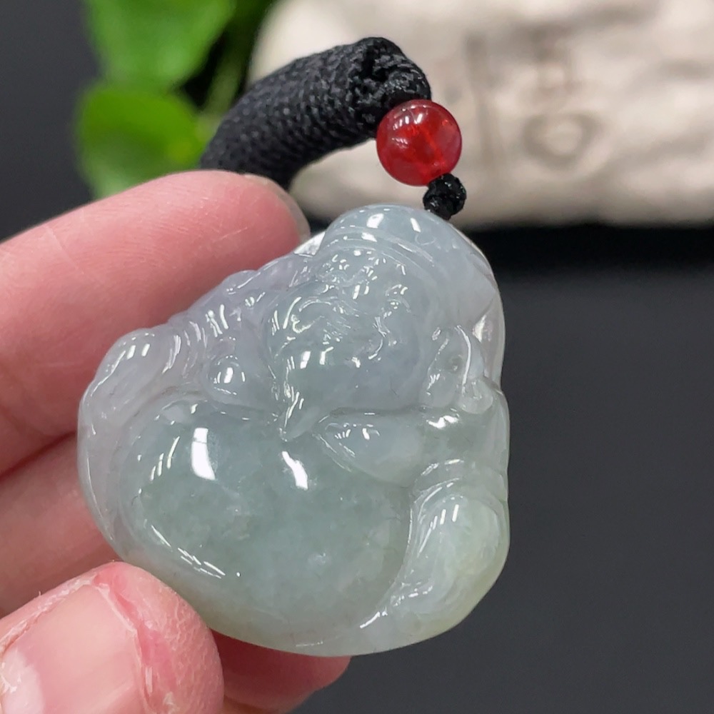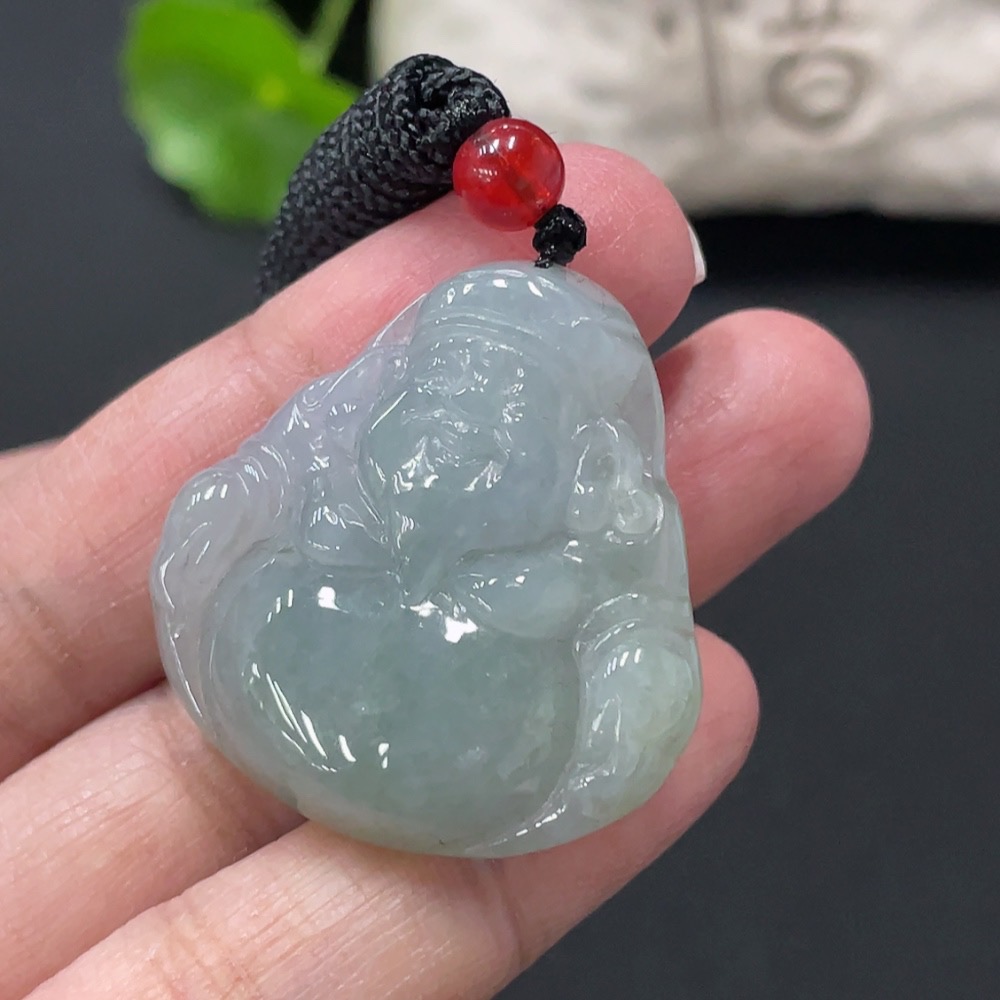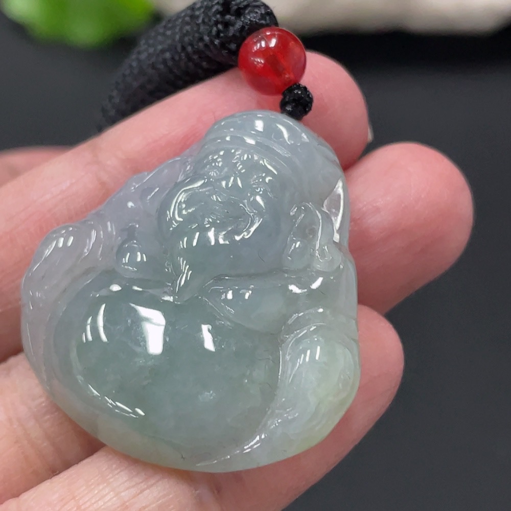 Jadeite Pendant Caishen Total Weight Approx. 13.87g Including Rope, Beads Not Grade A