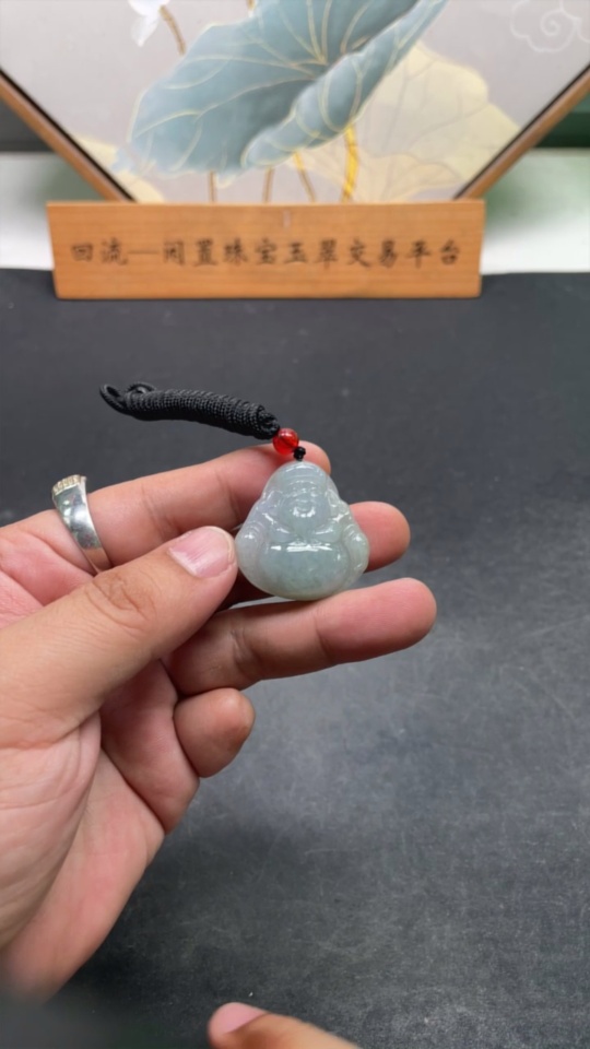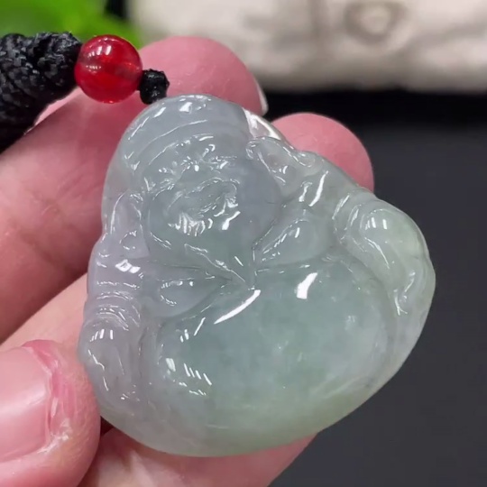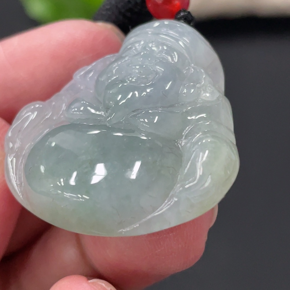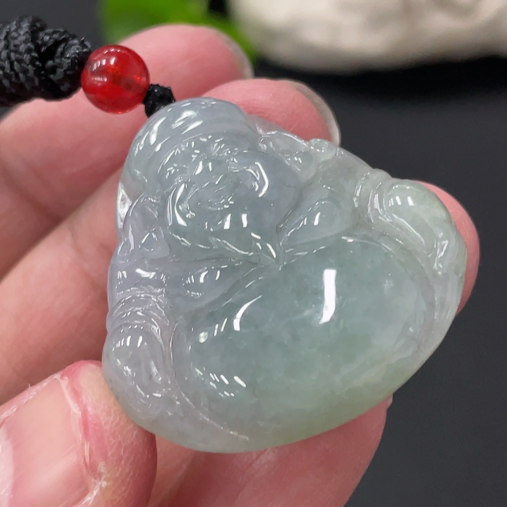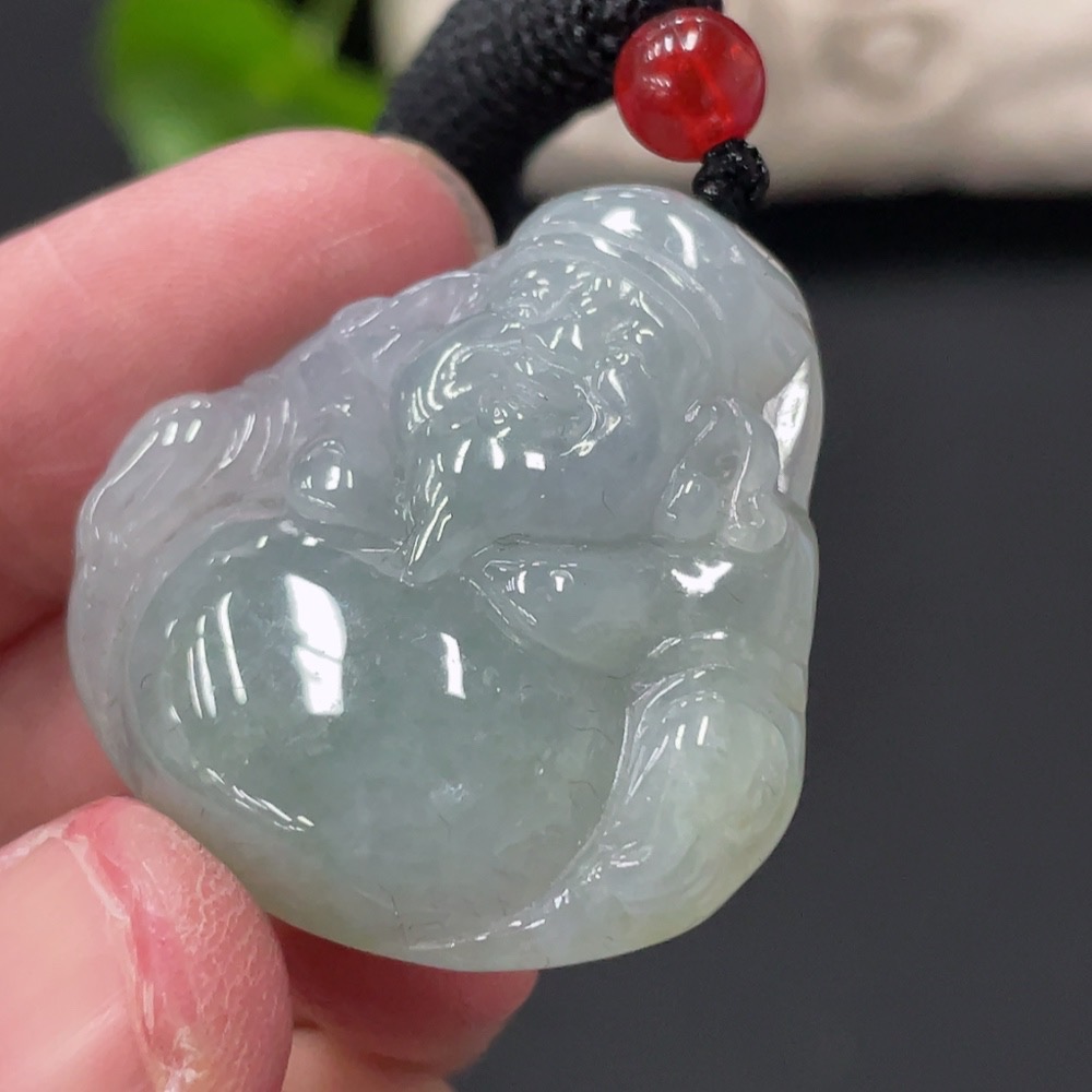 Jadeite Pendant Caishen Total Weight Approx. 13.87g Including Rope, Beads Not Grade A