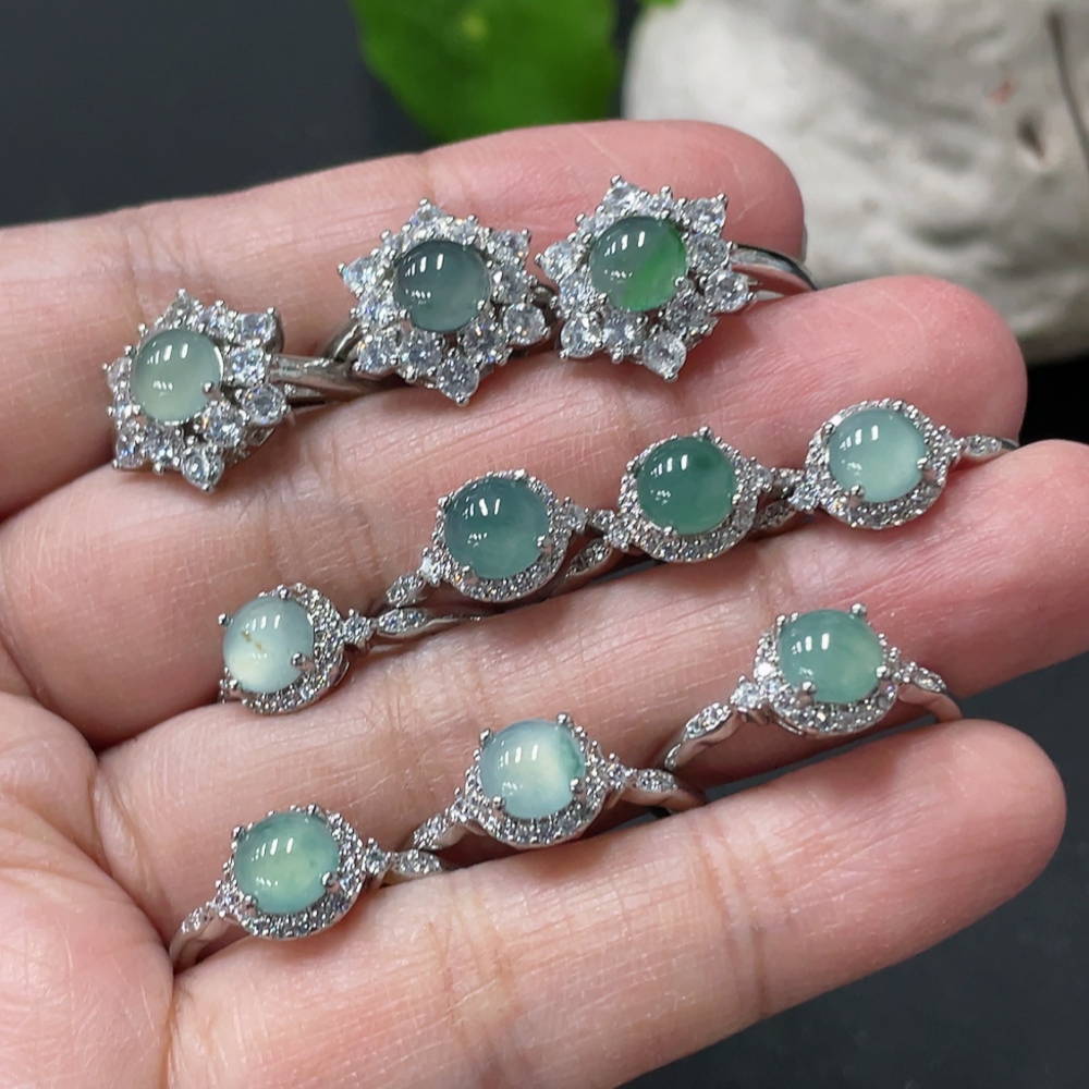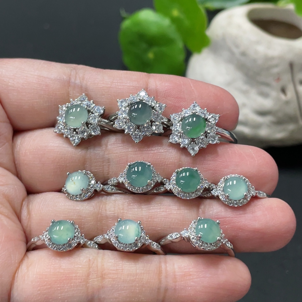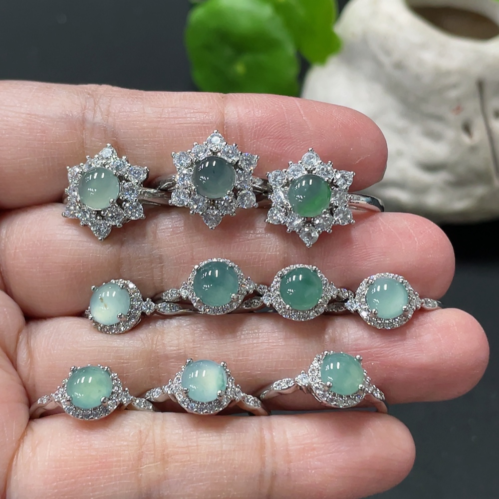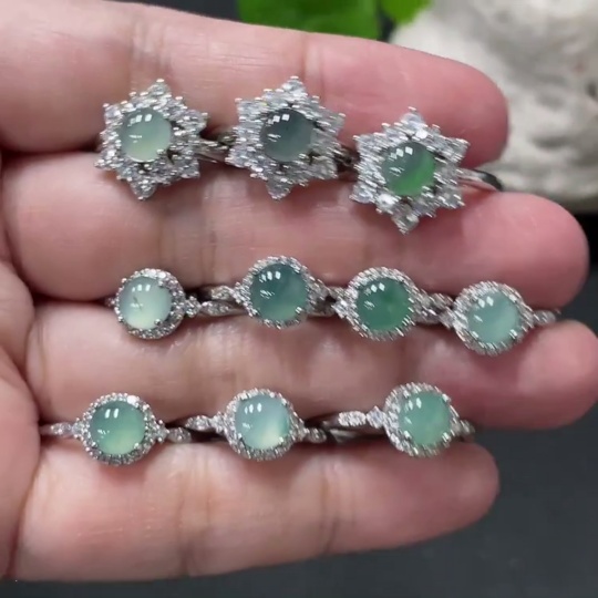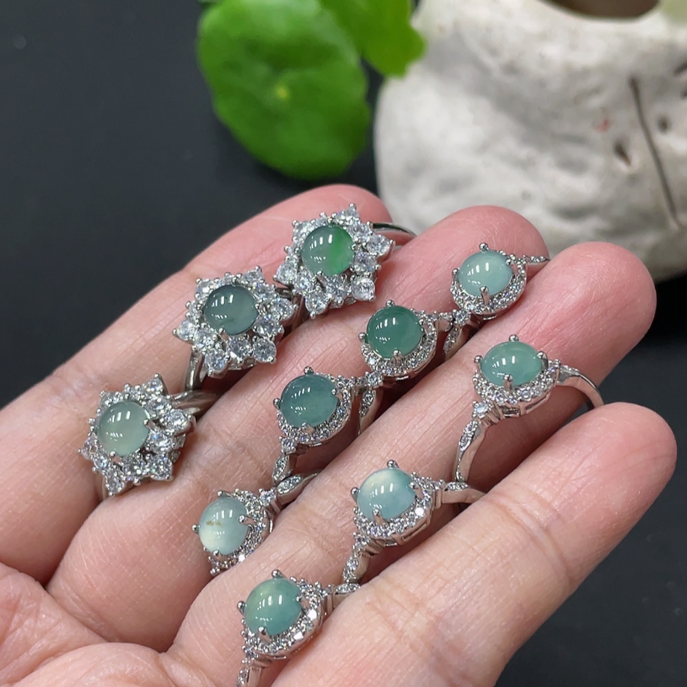 Jadeite Cabochon Inlaid Ring Non-Gold Inlaid Adjustable Size