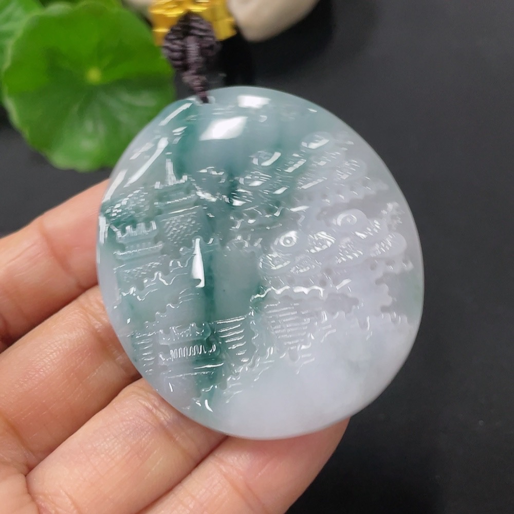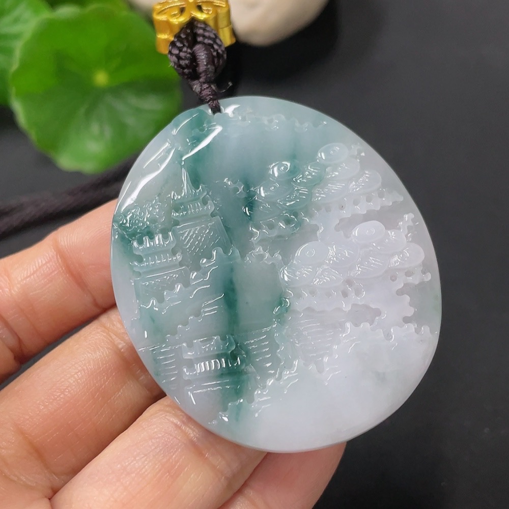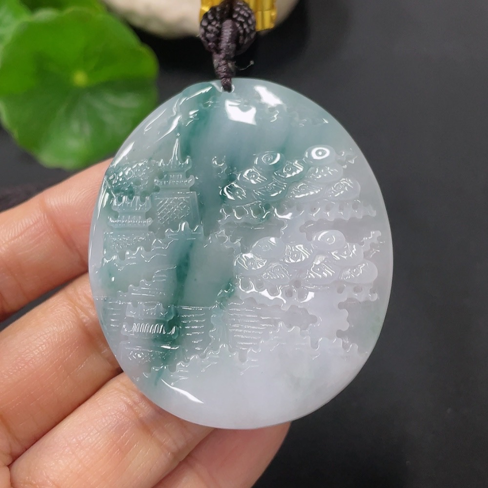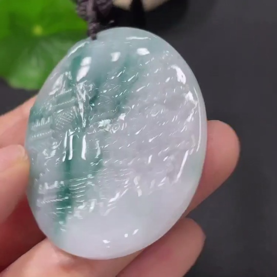 Jadeite Landscape Pendant with Cord, Total Weight Approx. 31.6g