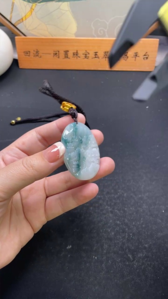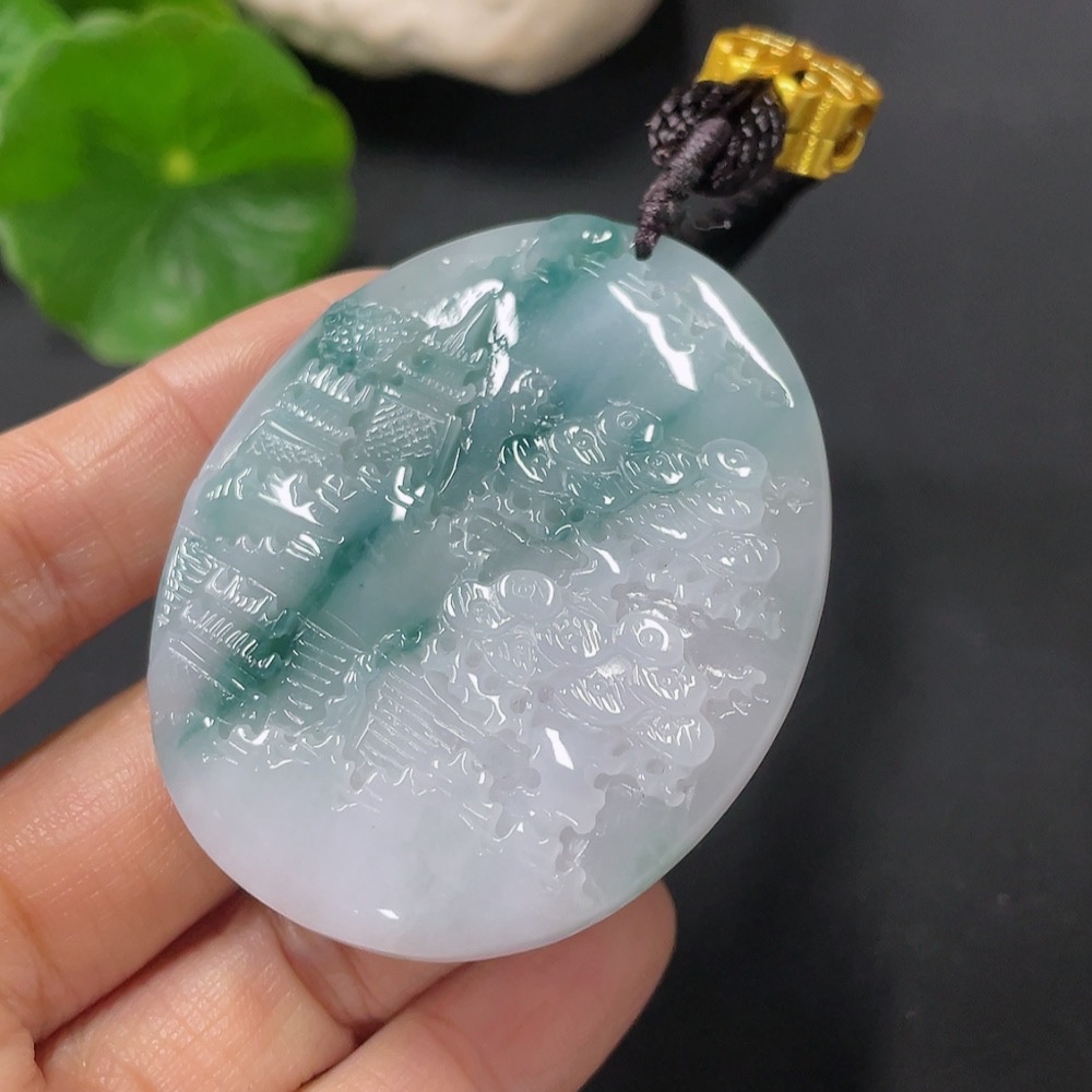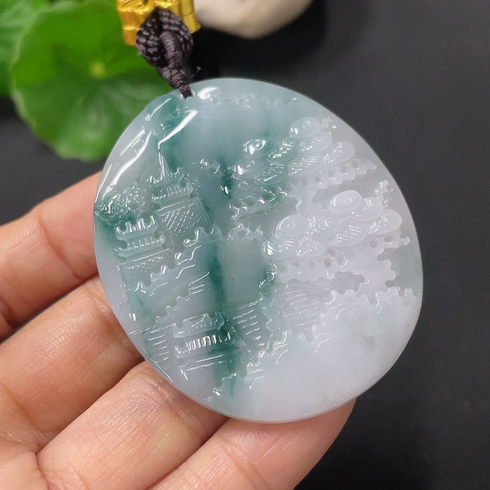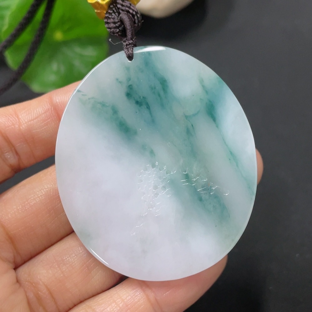 Jadeite Landscape Pendant with Cord, Total Weight Approx. 31.6g