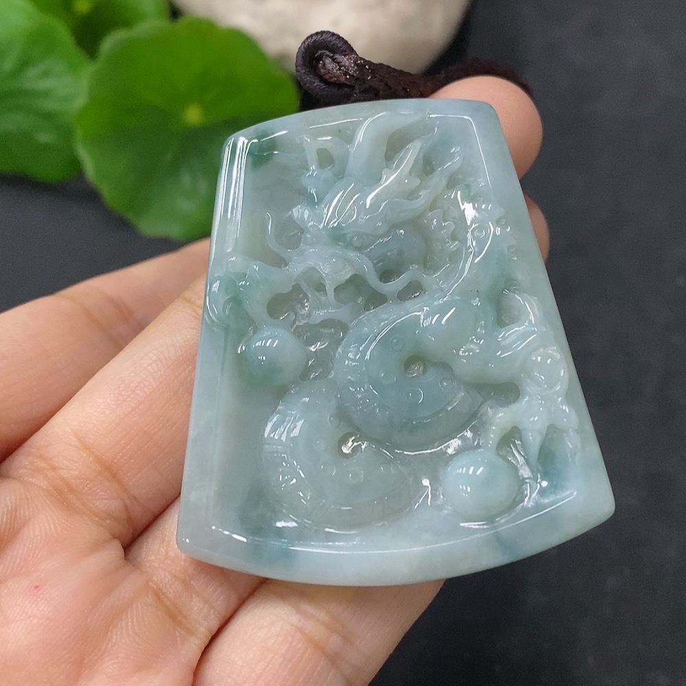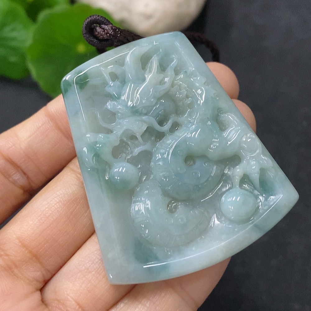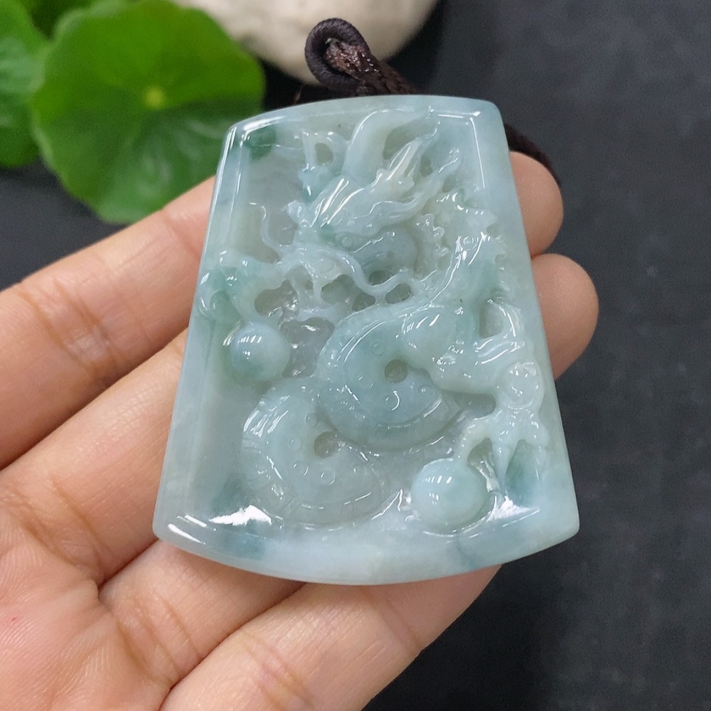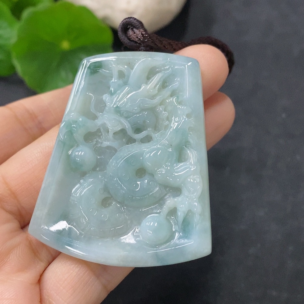 Jadeite Pendant Dragon Plaque Total Weight Including Rope 28.15g