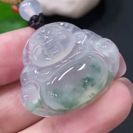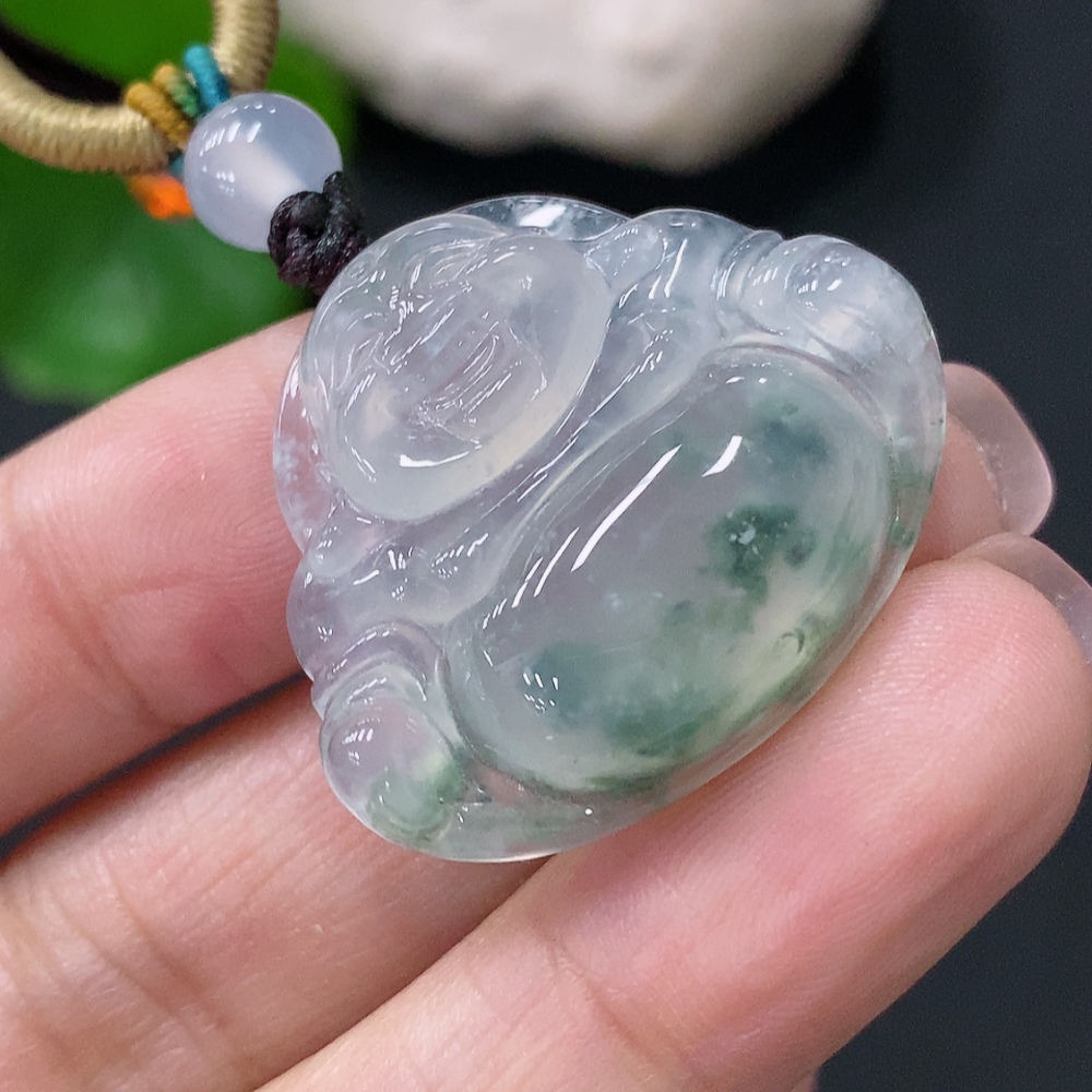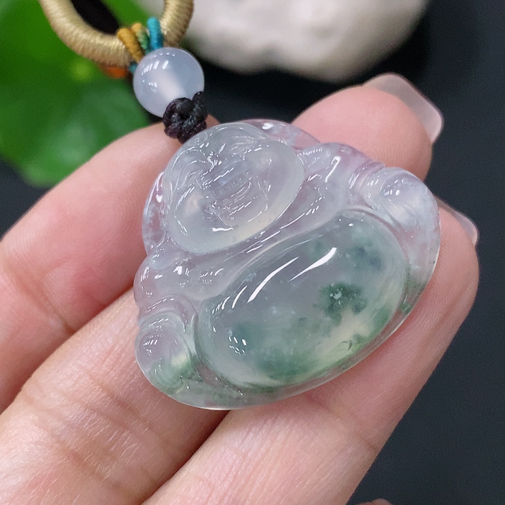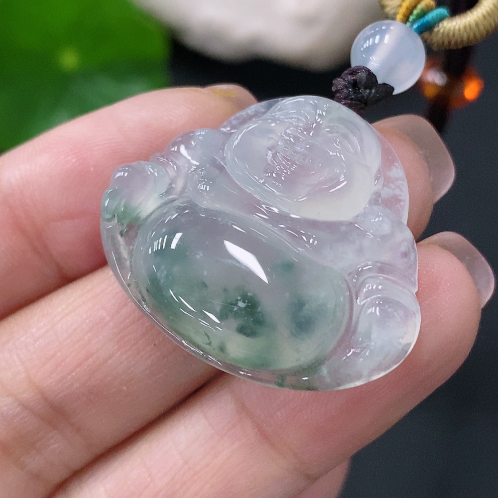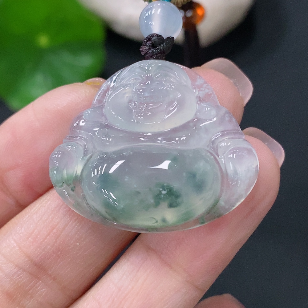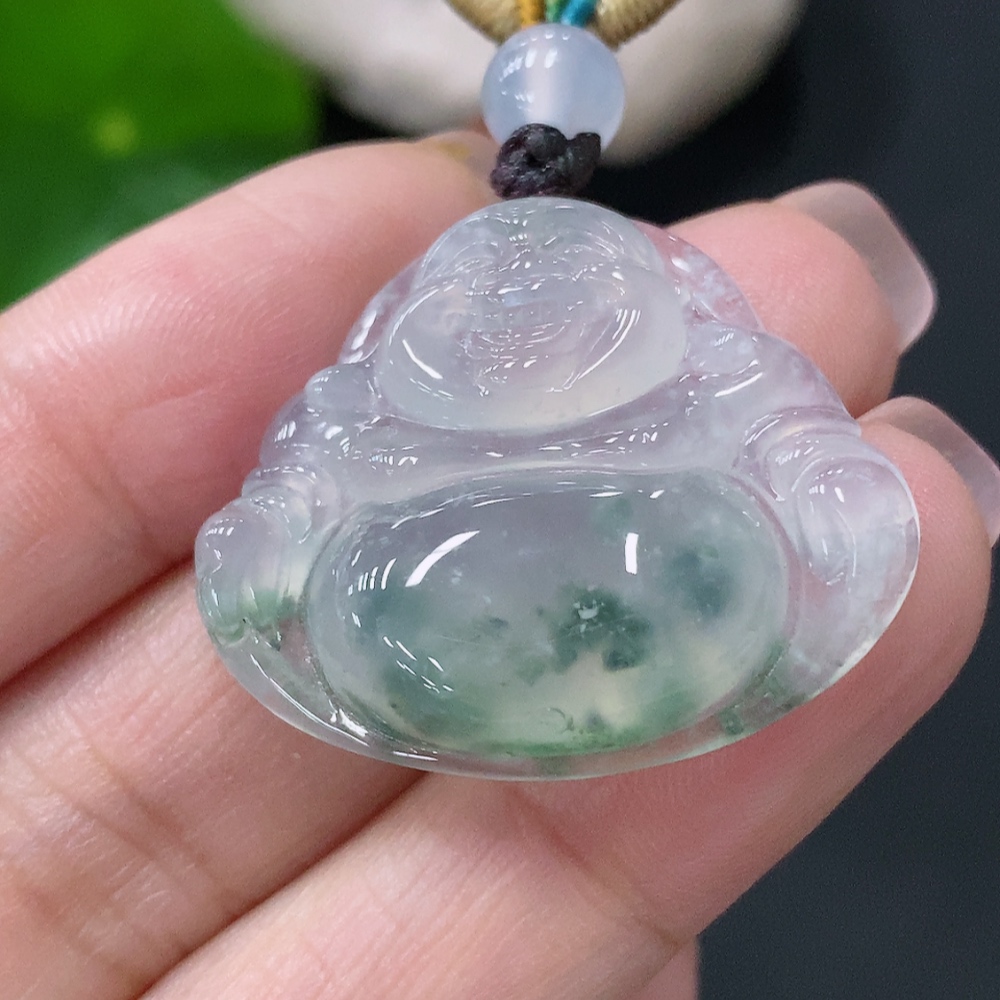 Jadeite Pendant Buddha, Total Weight Approx. 8.66g (Including Rope), With Non-A Grade Beads