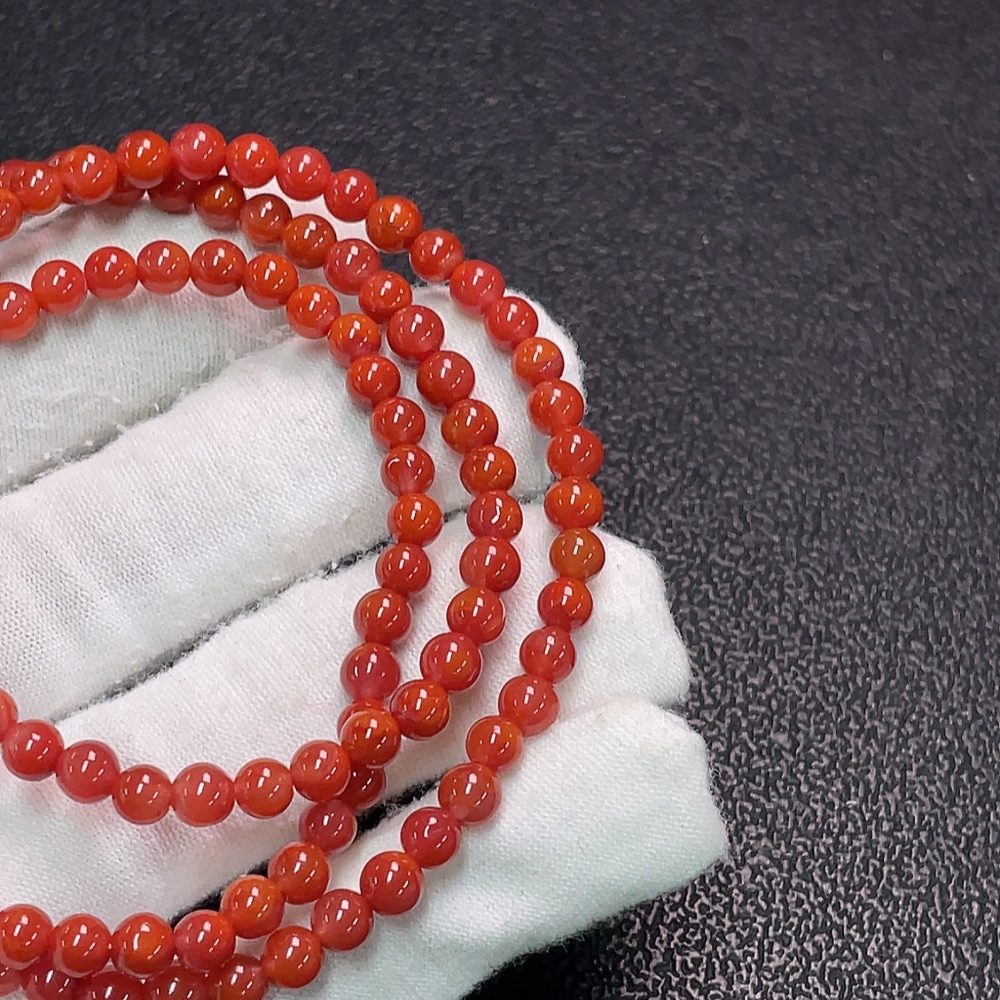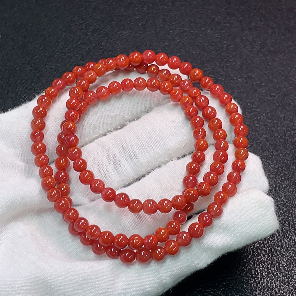 Red Agate Bead Strand with Visible Organic Matter, Total Weight Approx. 16.52g, Size About 4.6mm