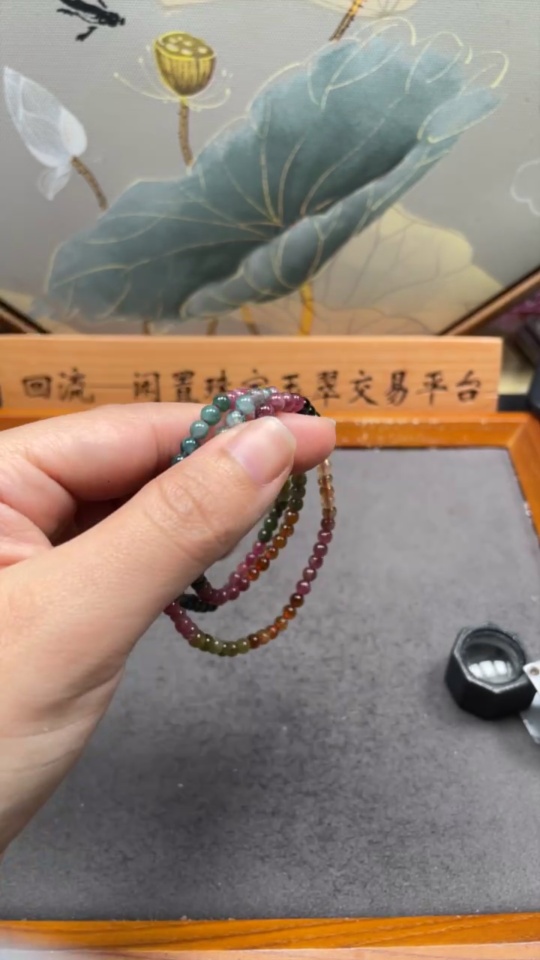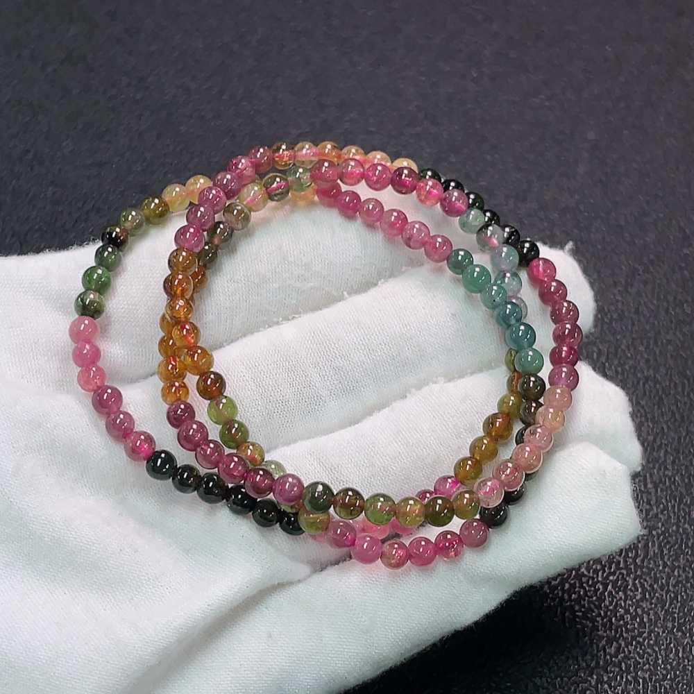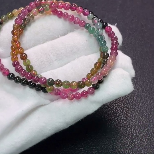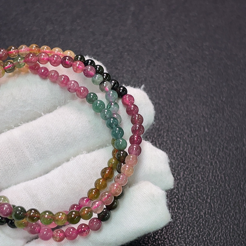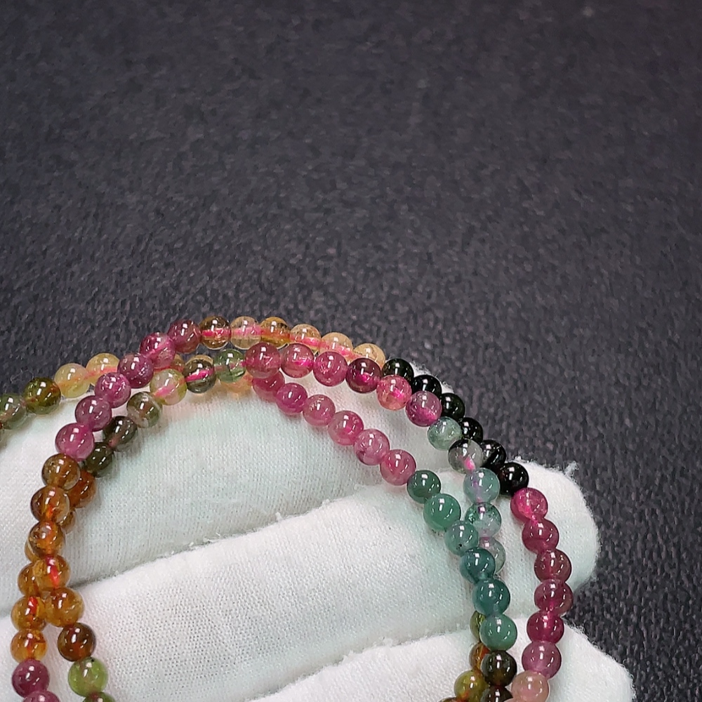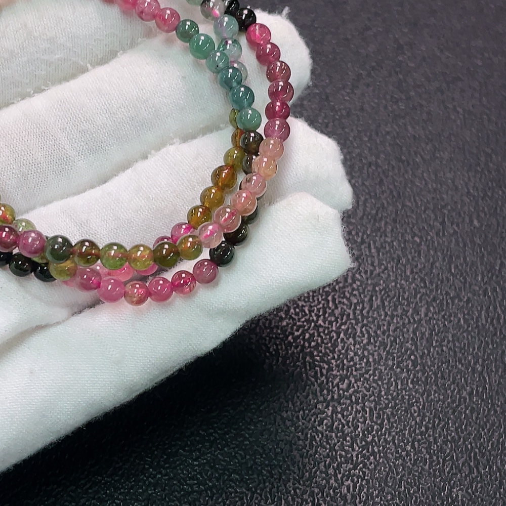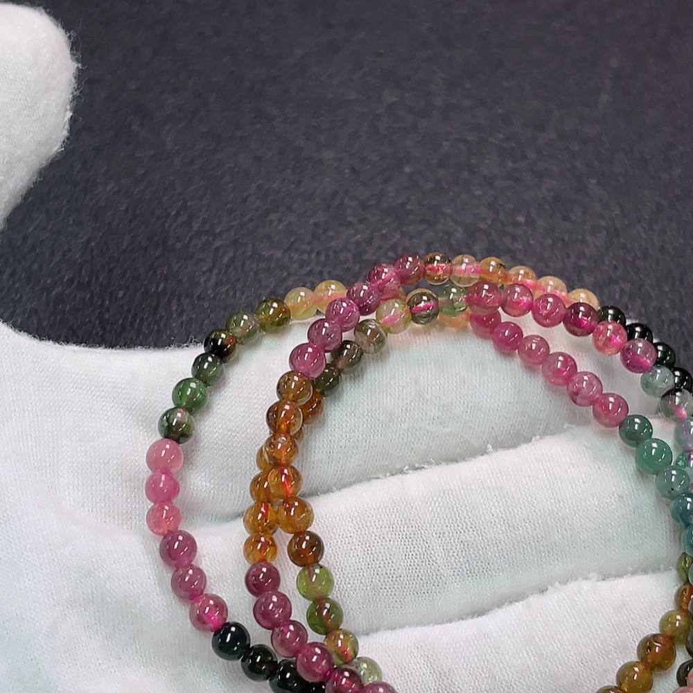 Tourmaline bead strand with visible organic matter, total weight approx. 15.09g, size about 4.3mm