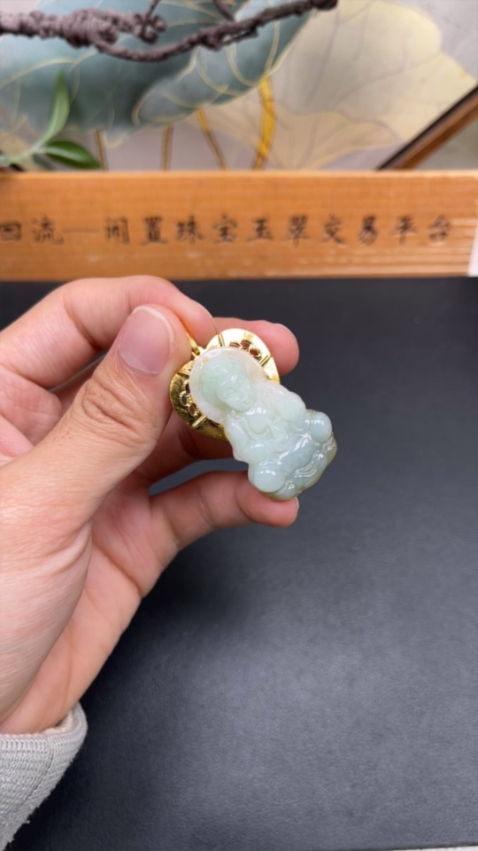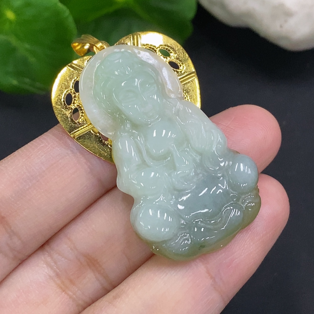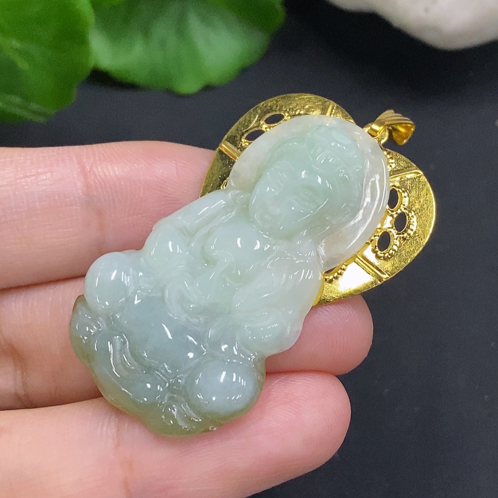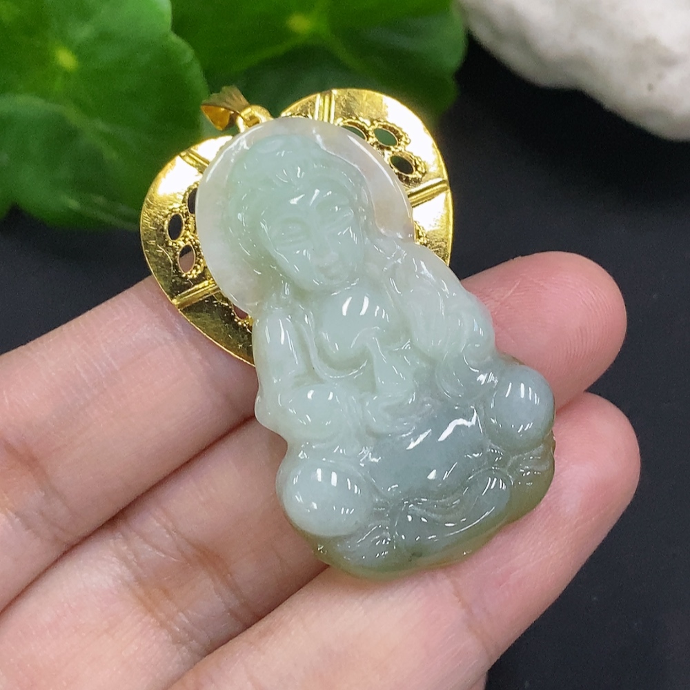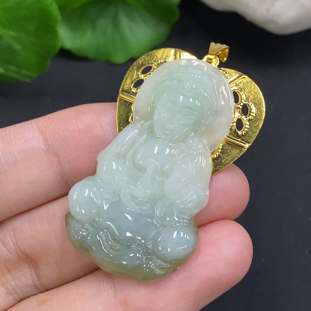 Jadeite Guanyin Inlaid Pendant Non-Gold Inlaid Total Weight Approximately 8.4g