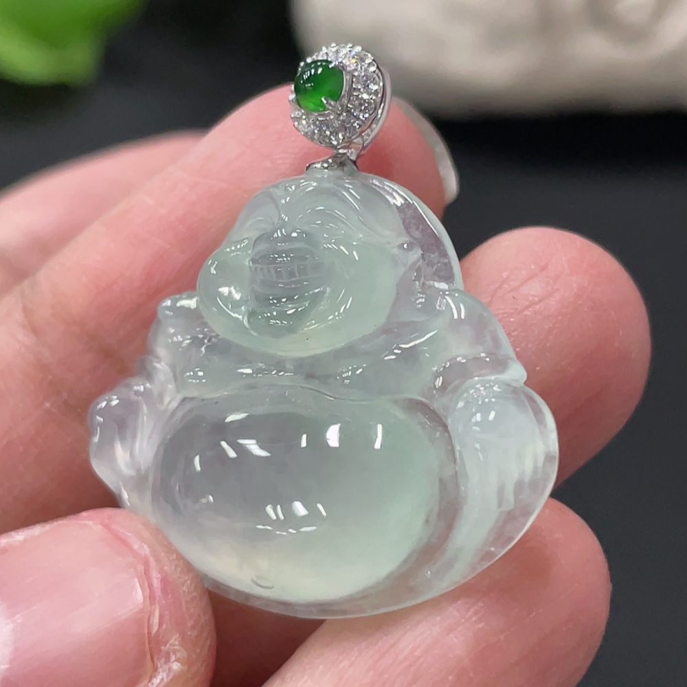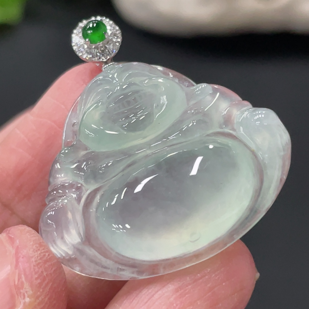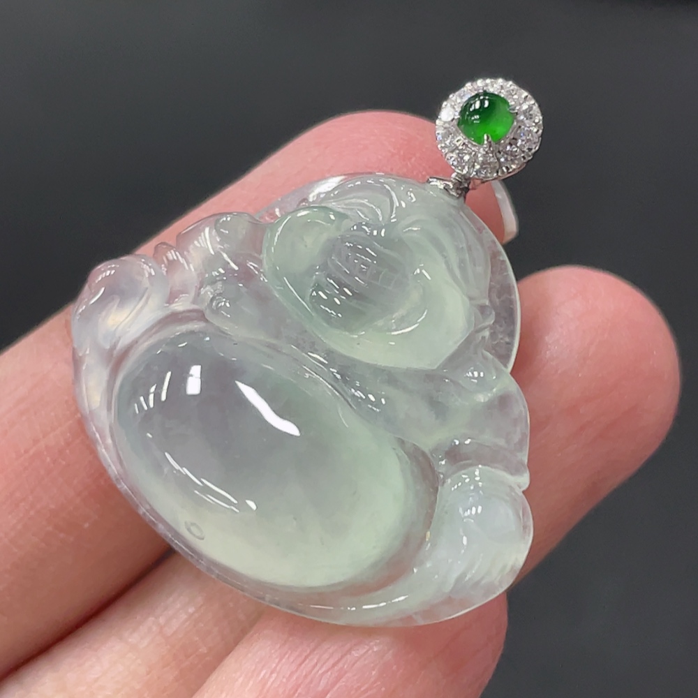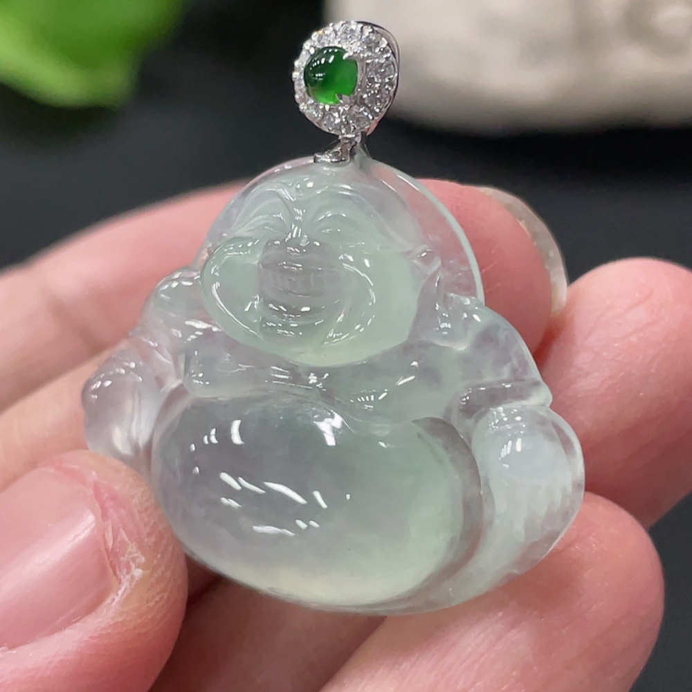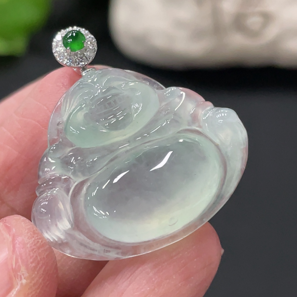 Jadeite Buddha Pendant Total Weight Approx. 6.5g 18K Gold Clasp with Diamond Accents