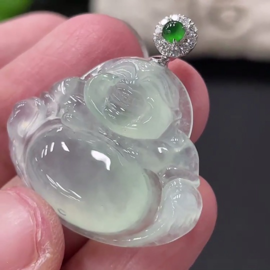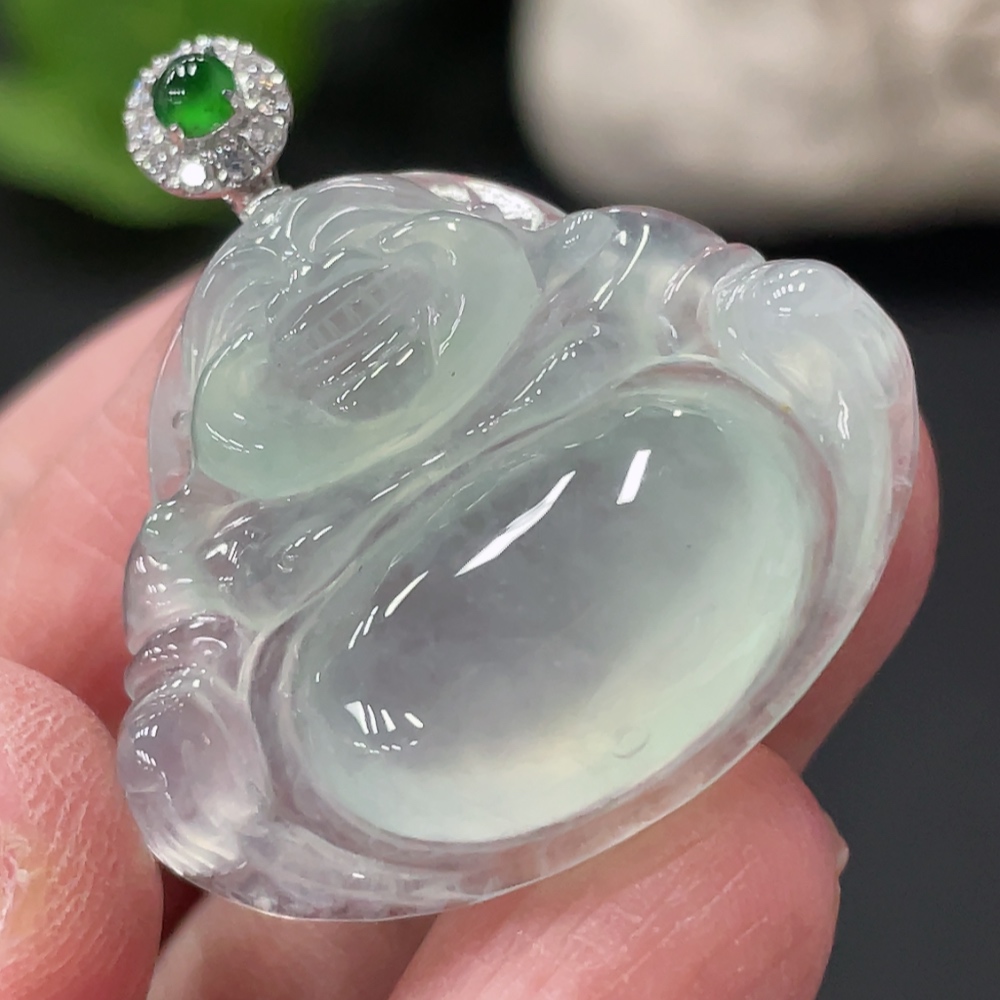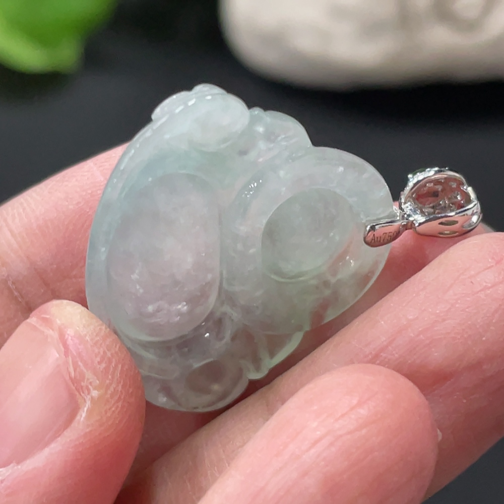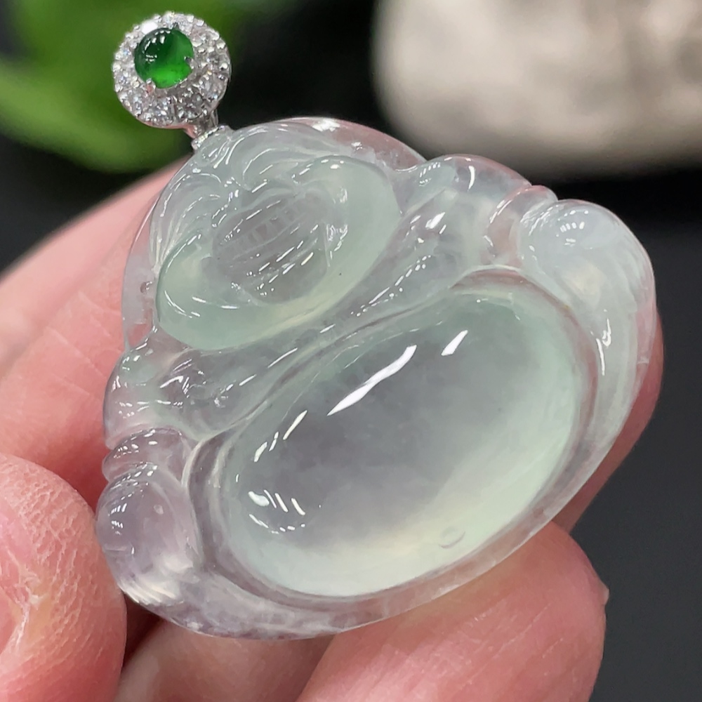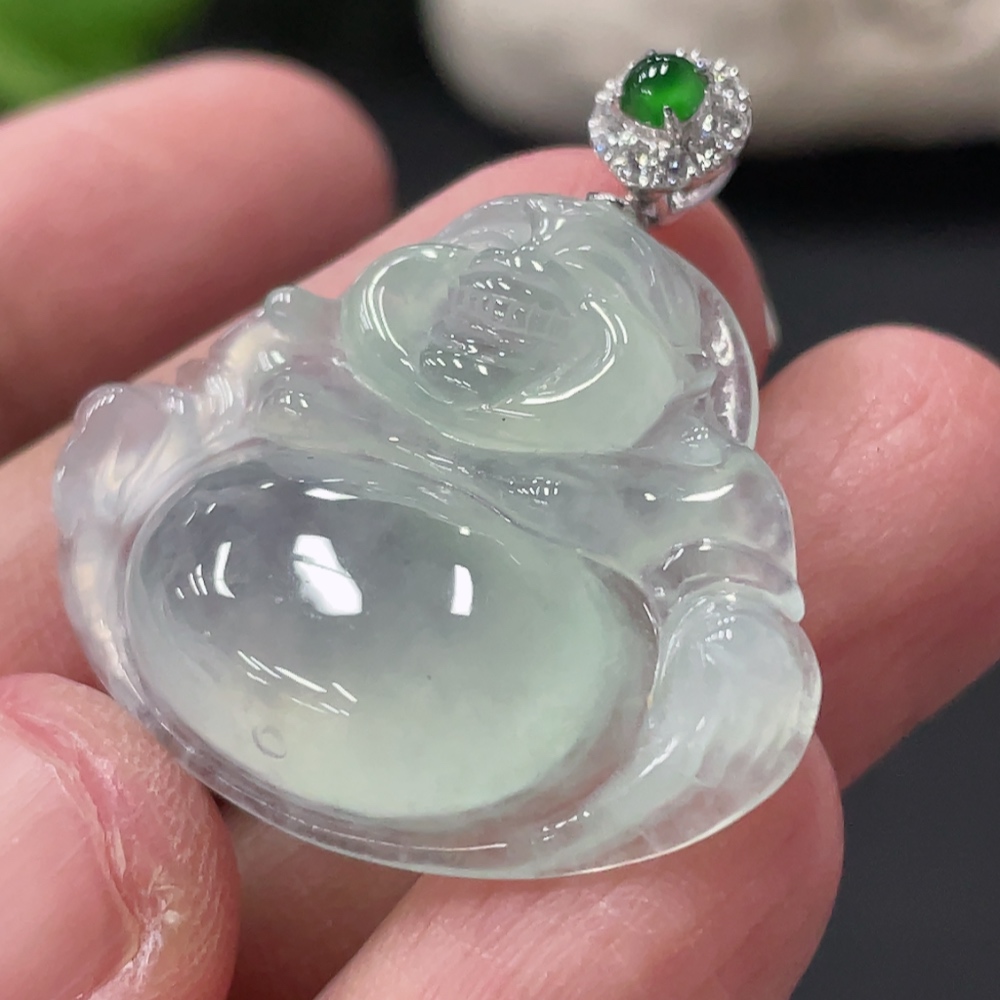 Jadeite Buddha Pendant Total Weight Approx. 6.5g 18K Gold Clasp with Diamond Accents