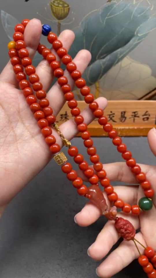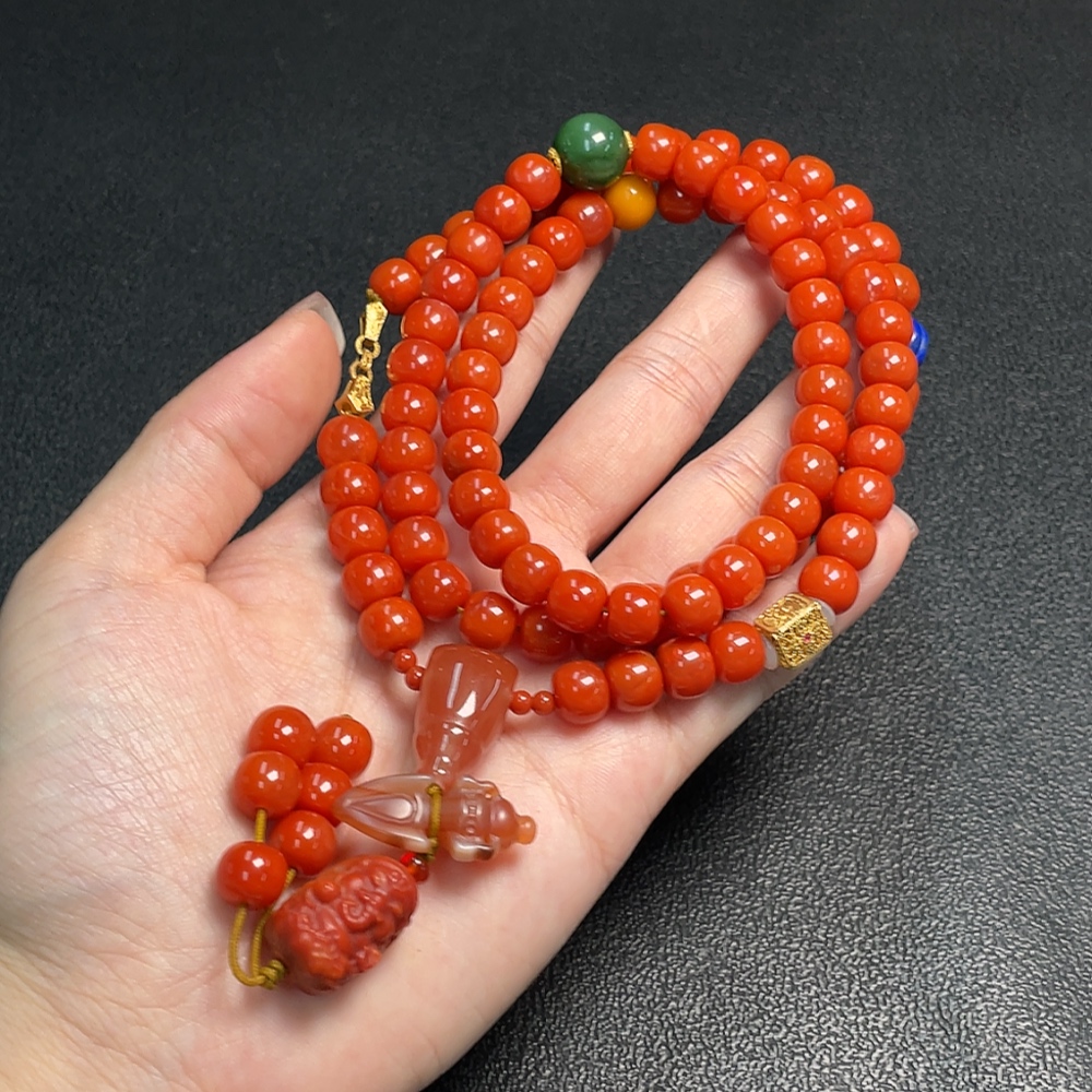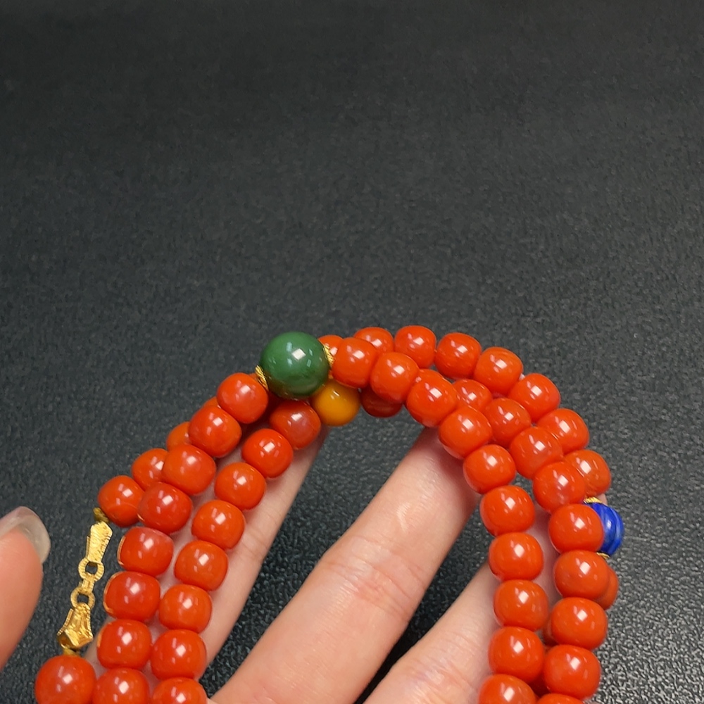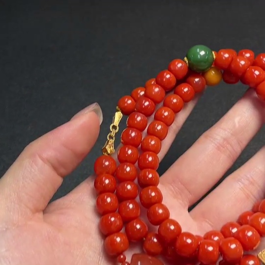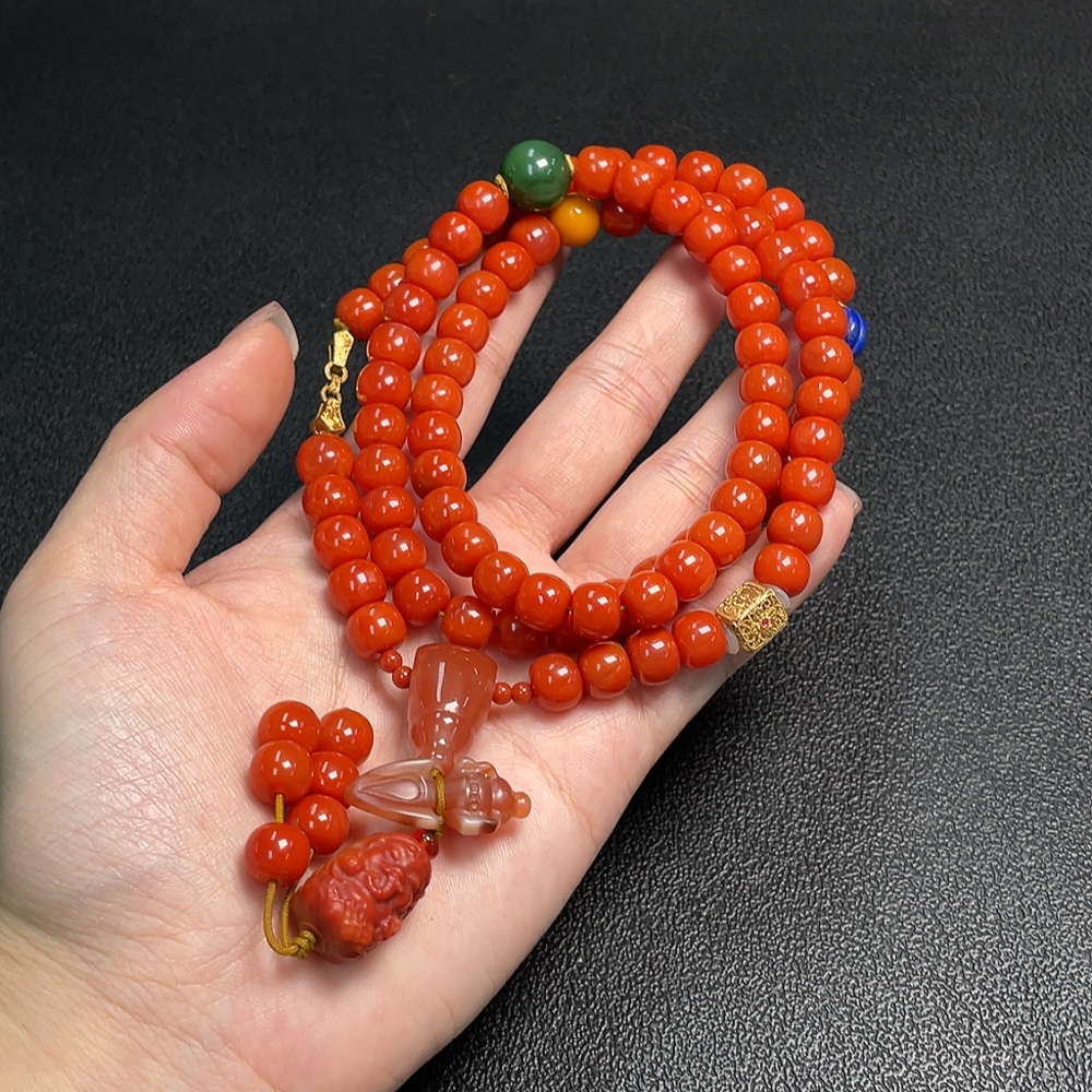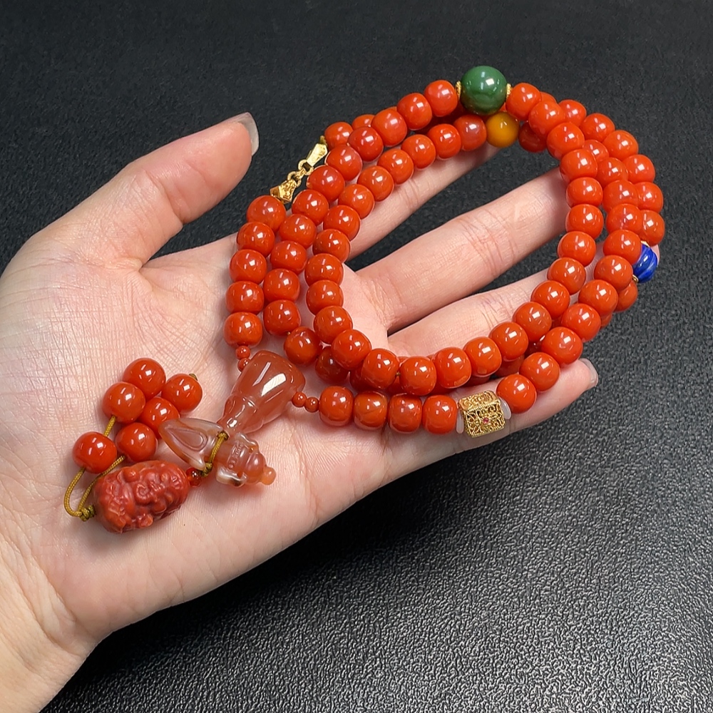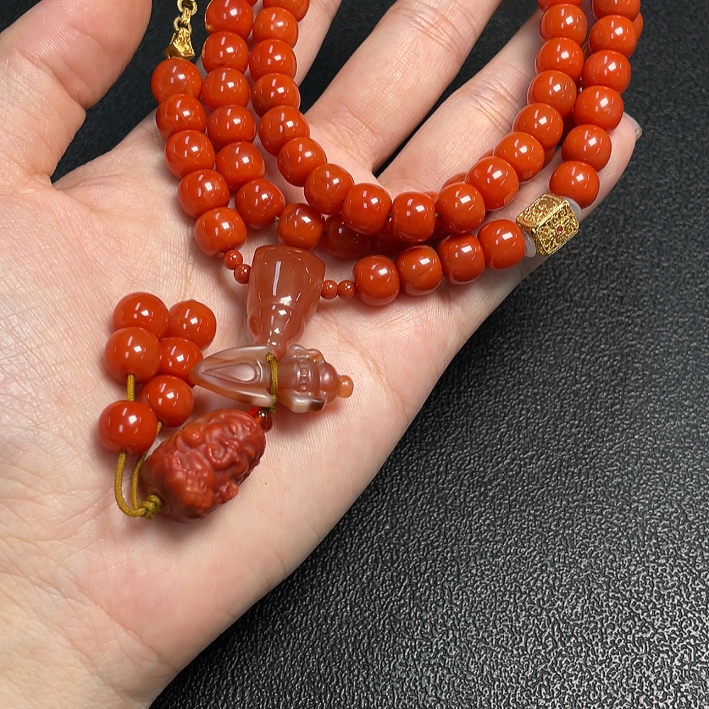 South Red Agate Bead Strand with Hetian Jade, Non-Natural Accent Stones Considered, No Hallmark, 18K Gold Tested, Total Weight Approx. 94.93g, Size Approx. 8.4mm