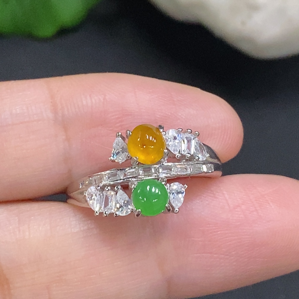 Jadeite Cabochon Ring with Adjustable Size, Non-Gold Setting, Total Weight Approximately 2.7g