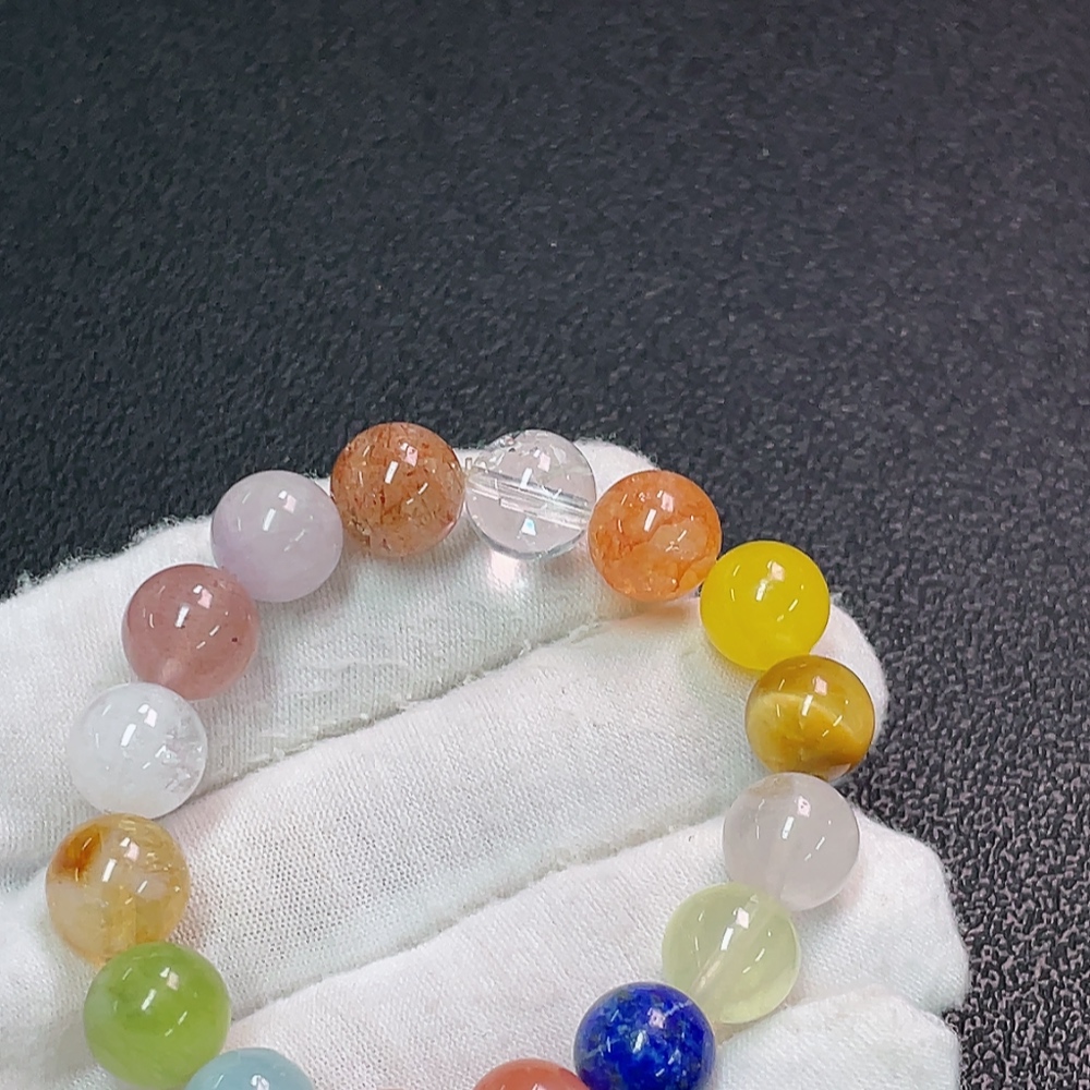 Crystal Bracelet with Southern Red Agate and Xiuyan Jade, Non-Natural Accent Stones Considered, Total Weight Approx. 25.75g, Size About 10.6mm (with Impurities)