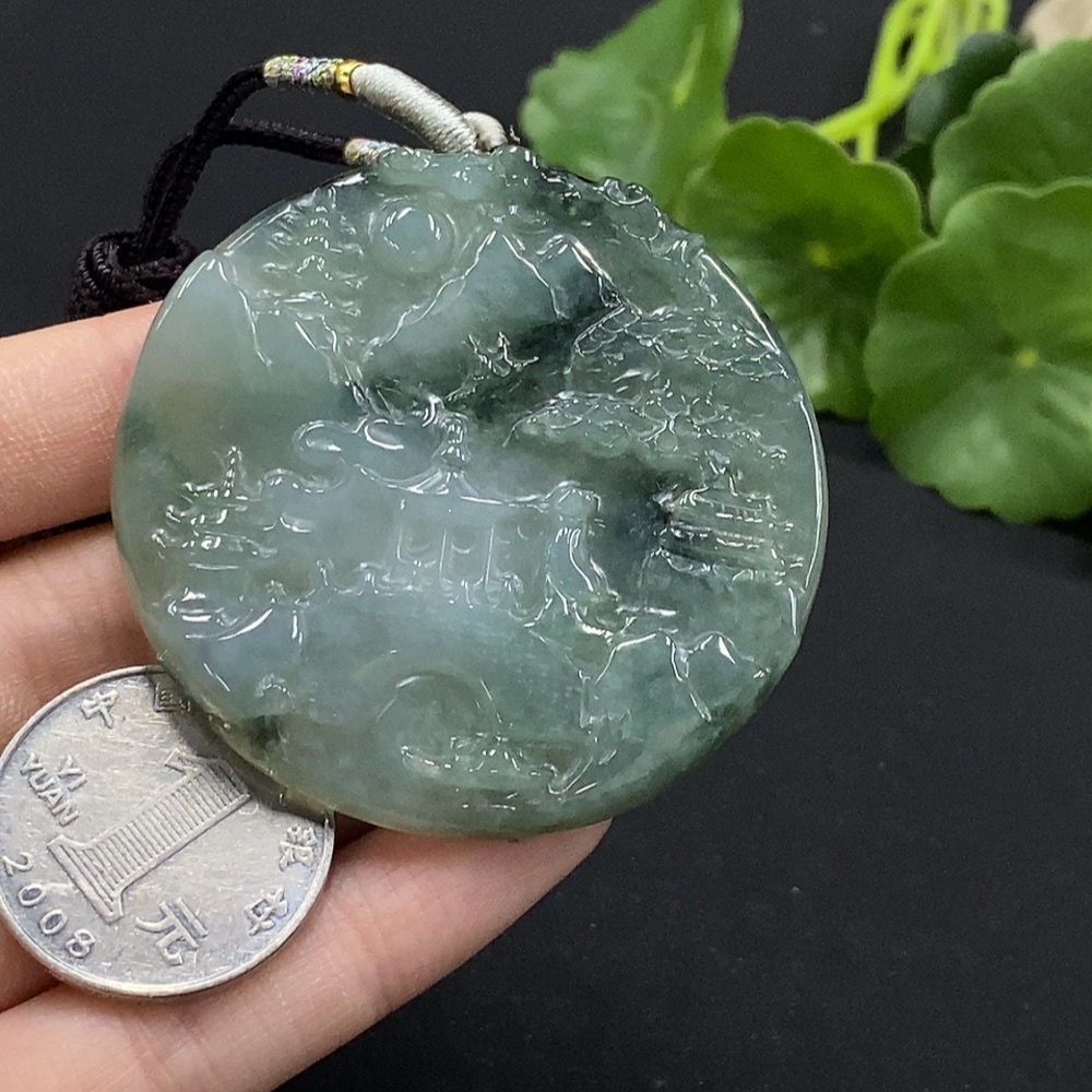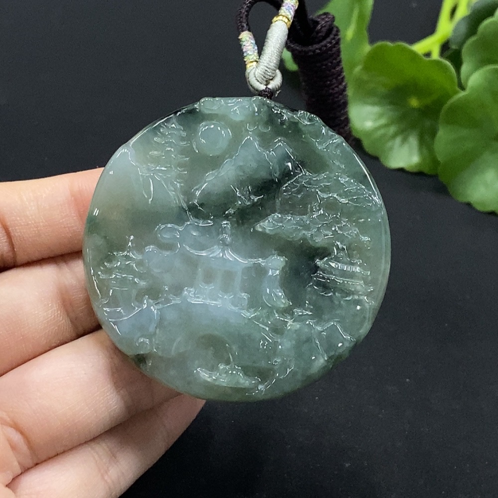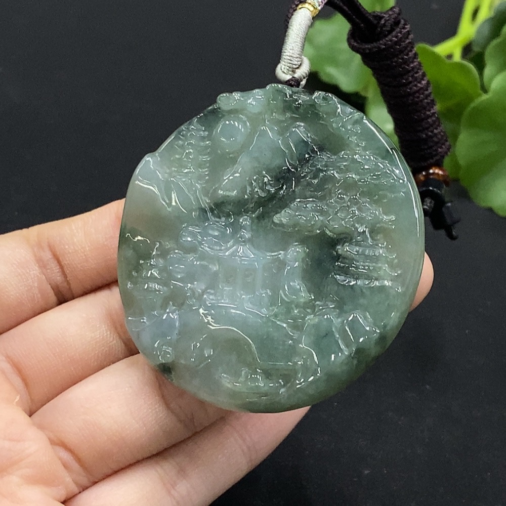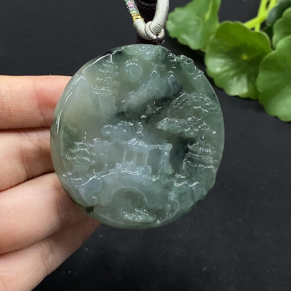 Jadeite Landscape Pendant Total Weight Approx. 37.86g