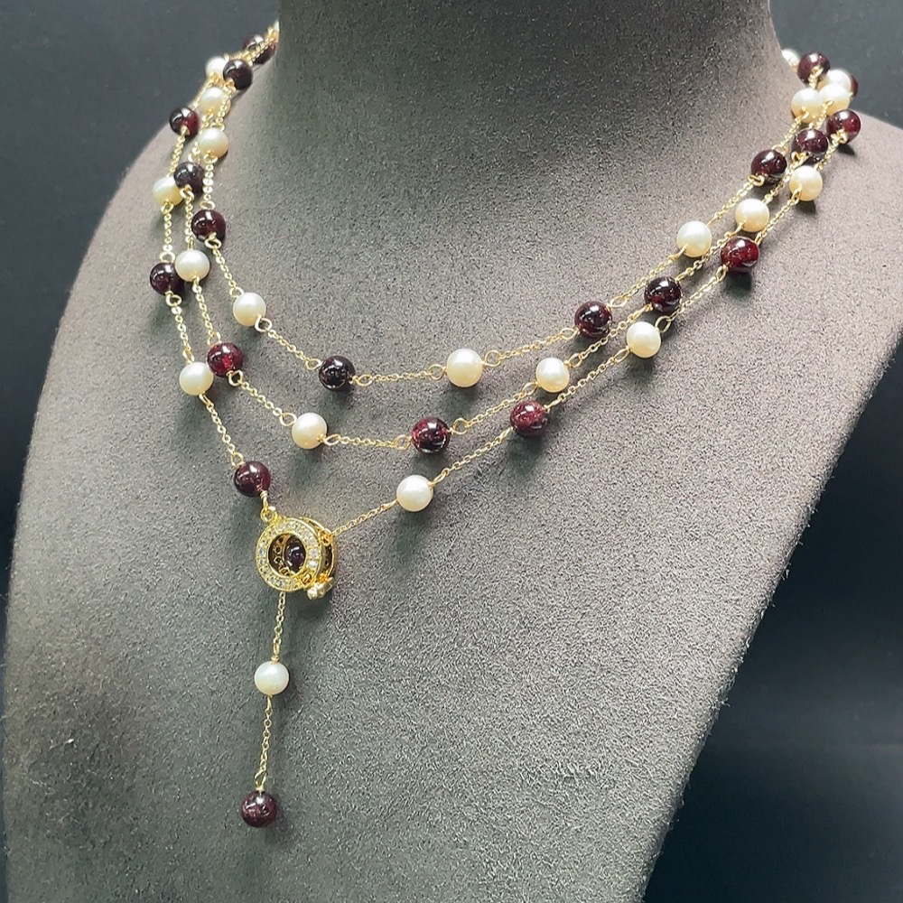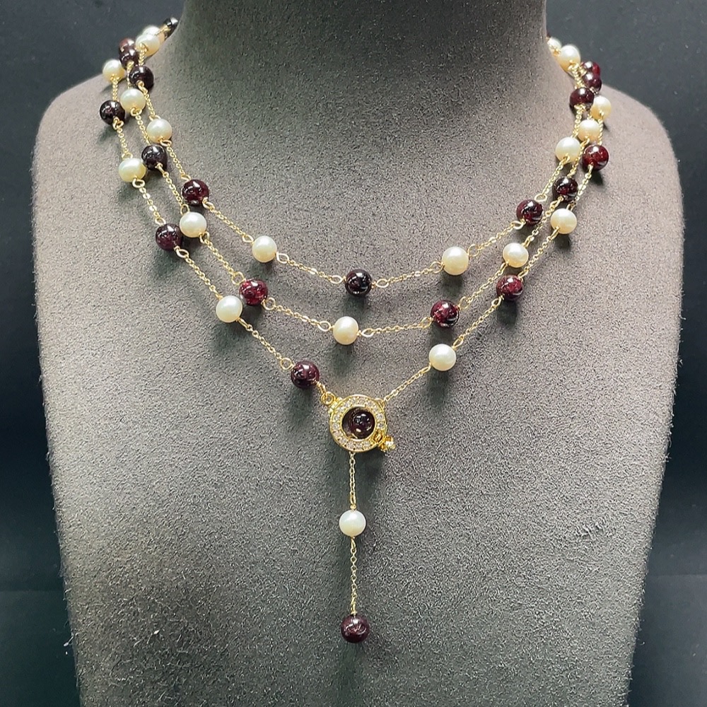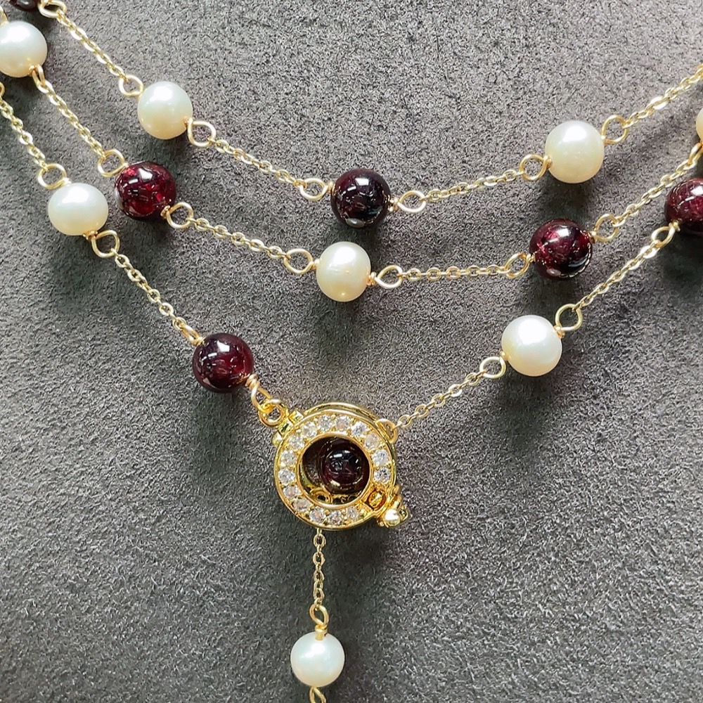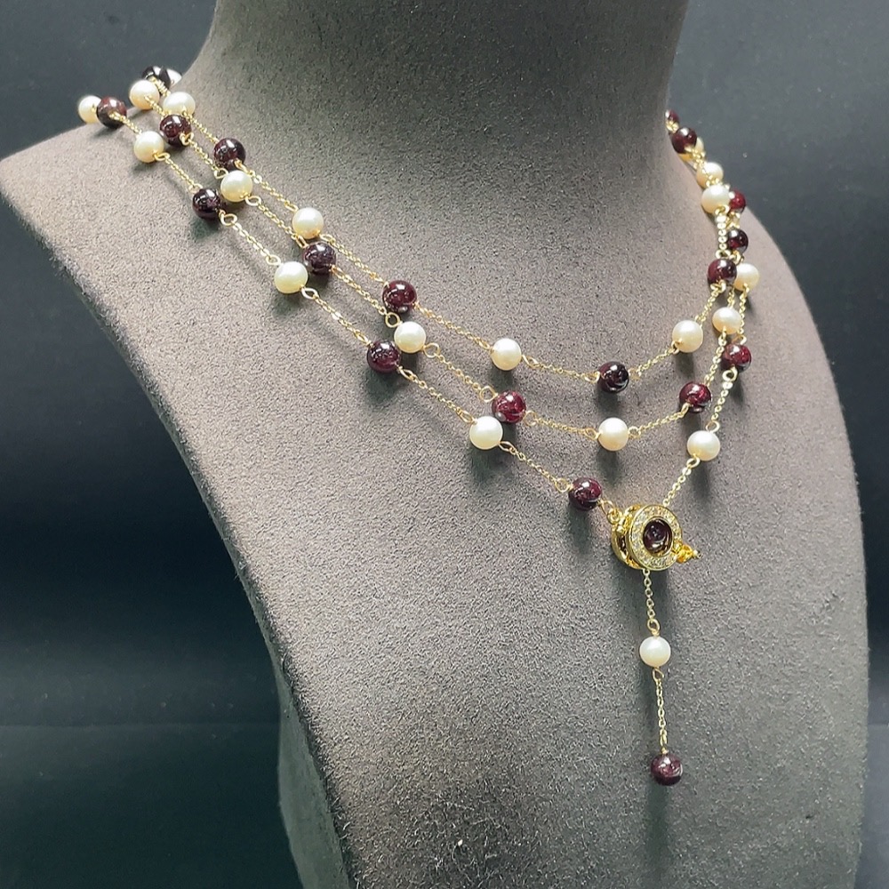 Trezaar - Pearl Necklace with Garnet Non-Gold Total Weight Approx. 36.2g Size About 6.5mm