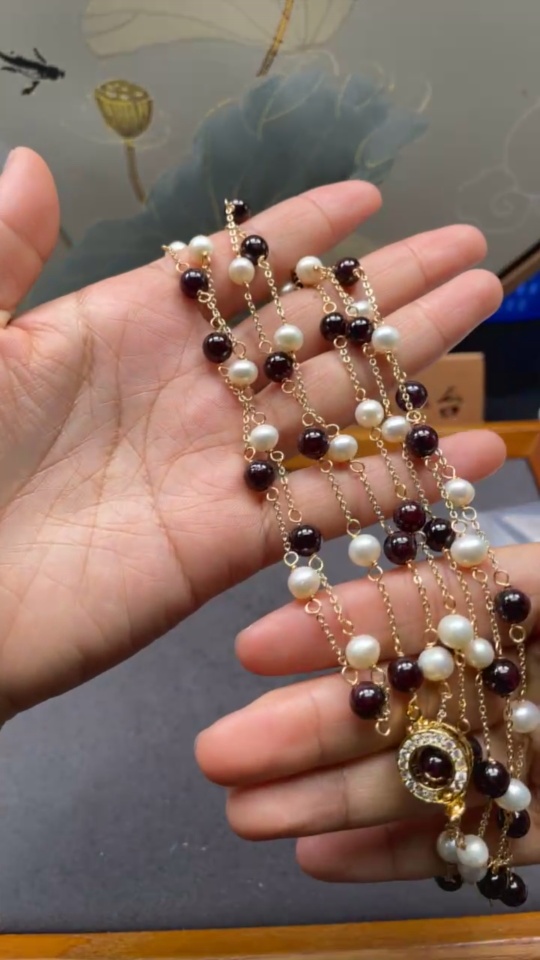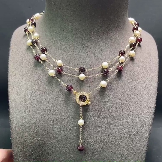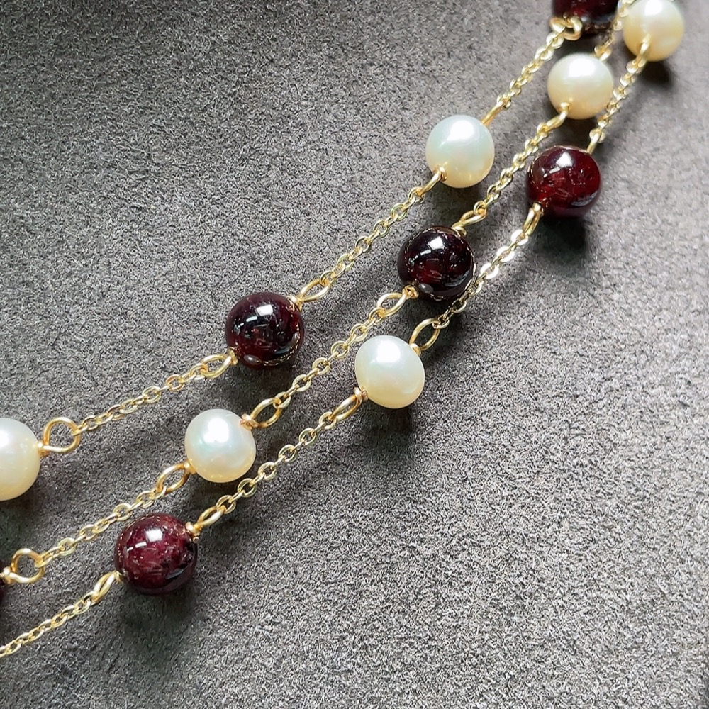 Pearl Necklace with Garnet Non-Gold Total Weight Approx. 36.2g Size About 6.5mm