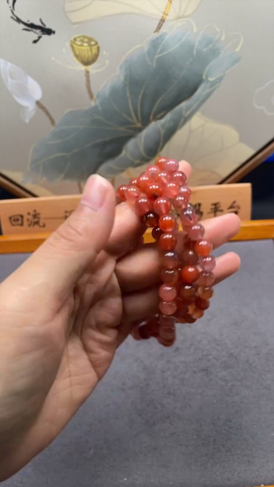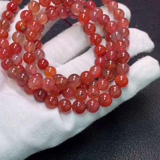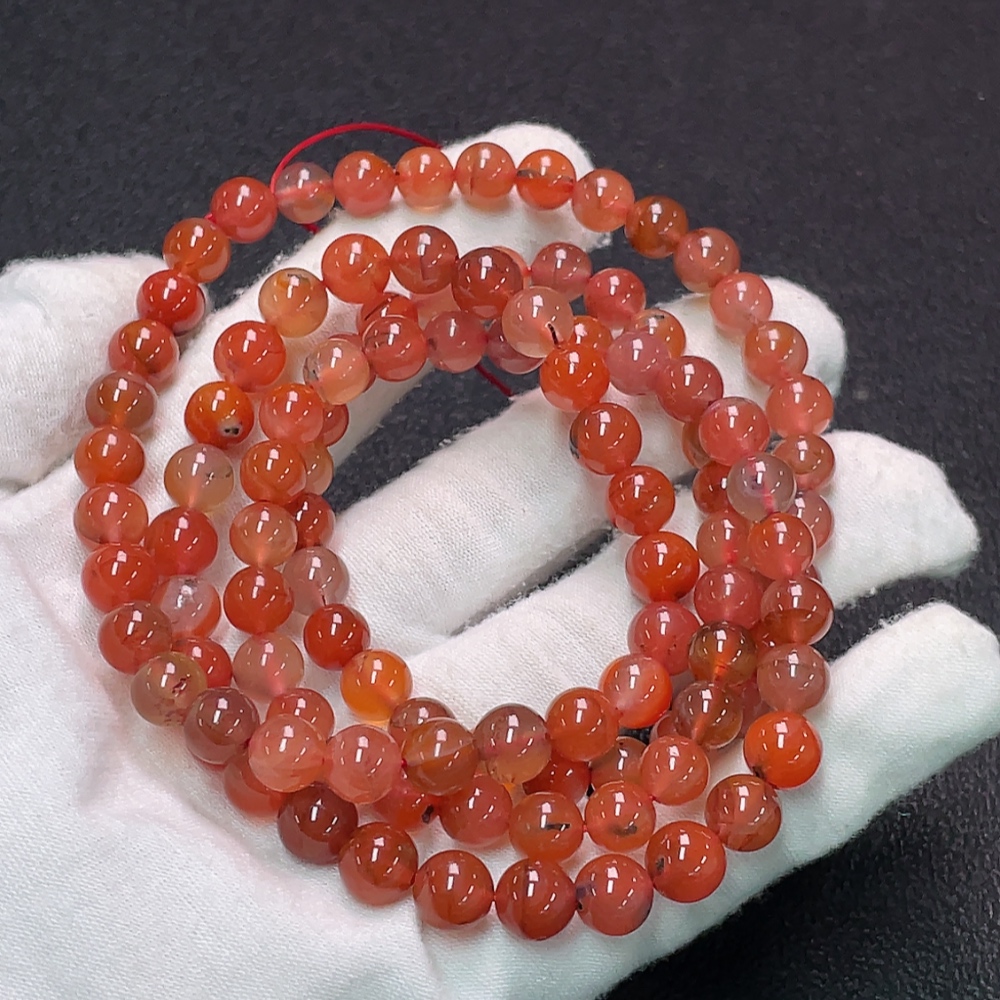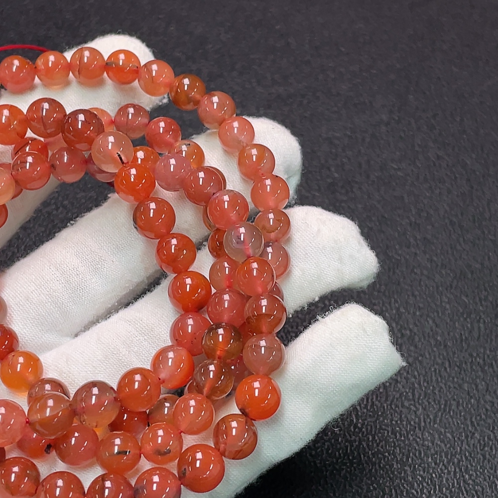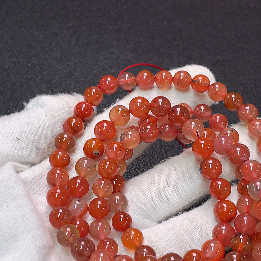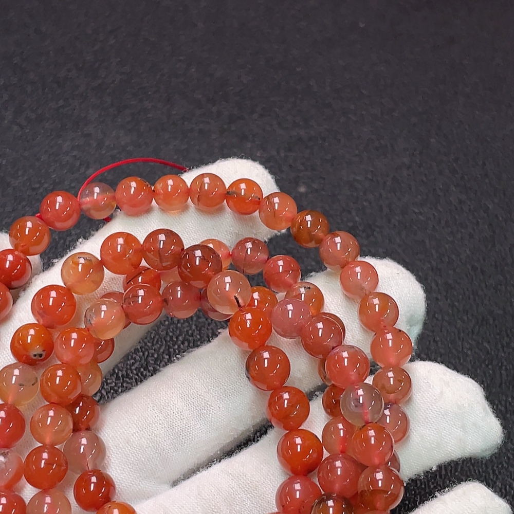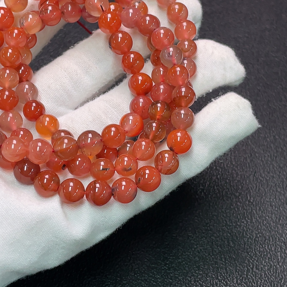 South Red Agate Bead Necklace with Visible Organic Matter, Total Weight Approximately 59.32g, Bead Size About 7mm