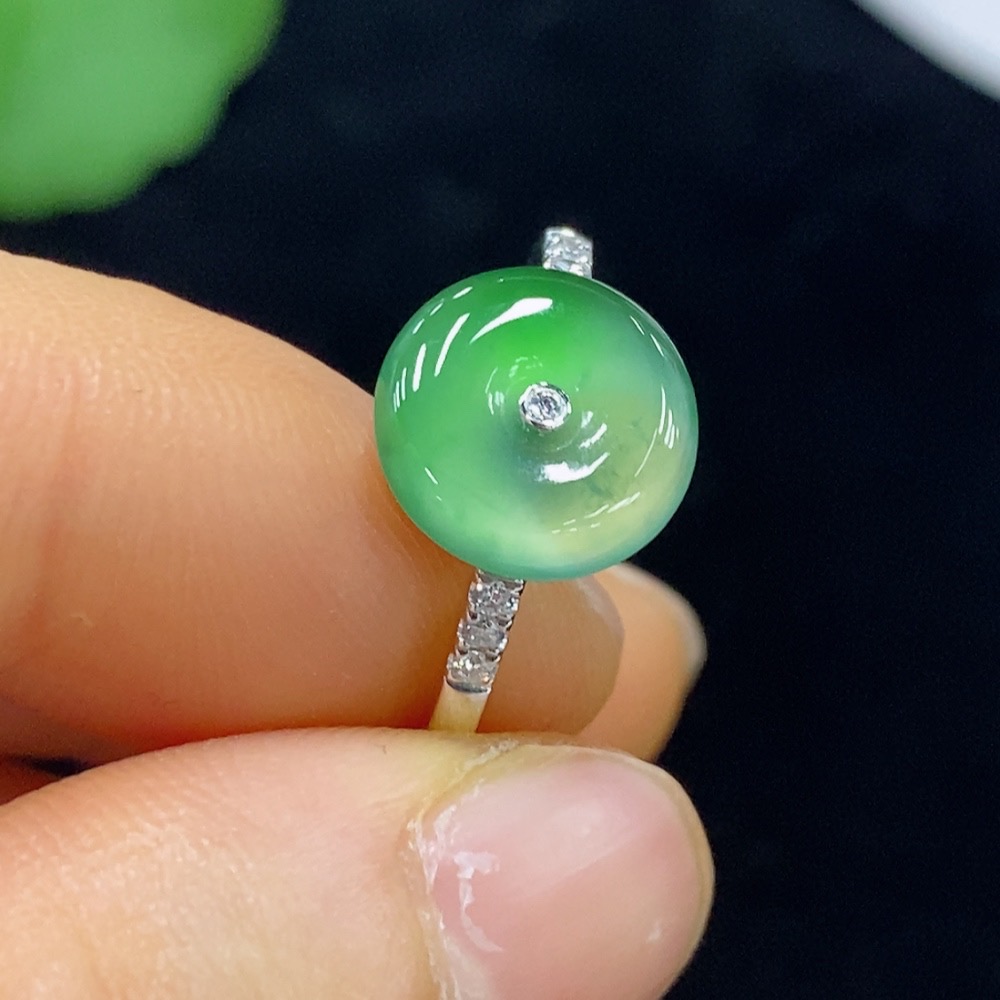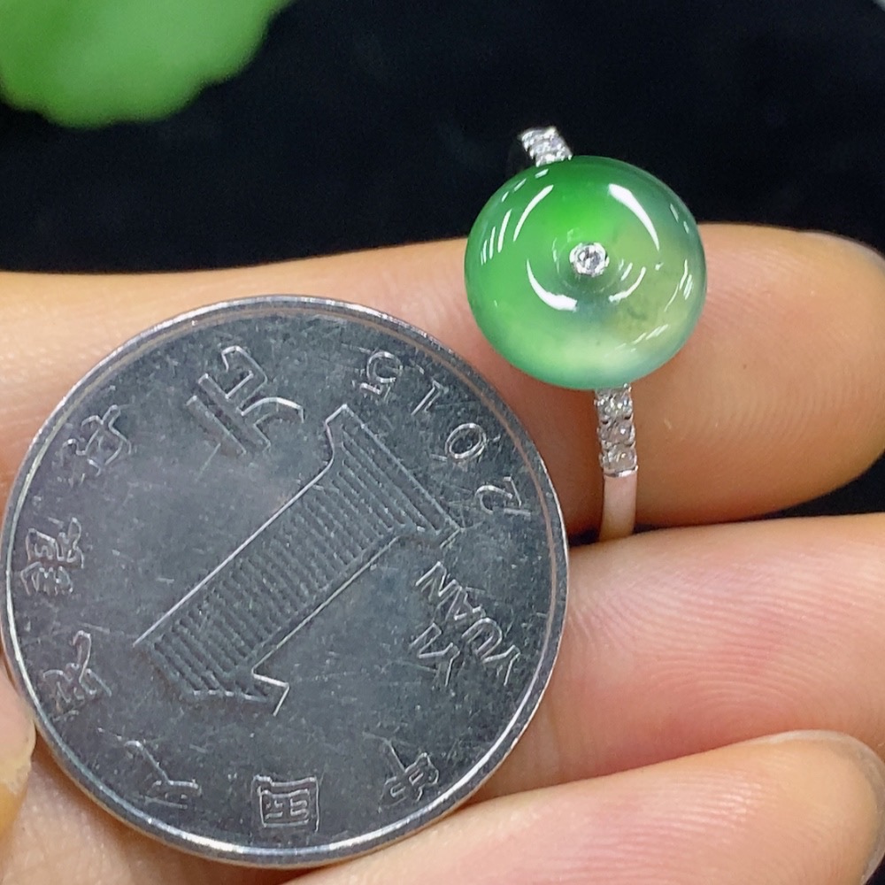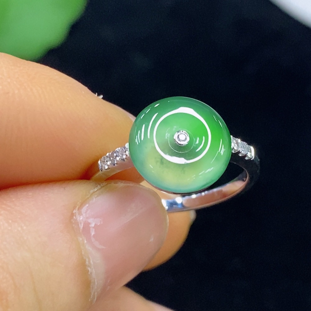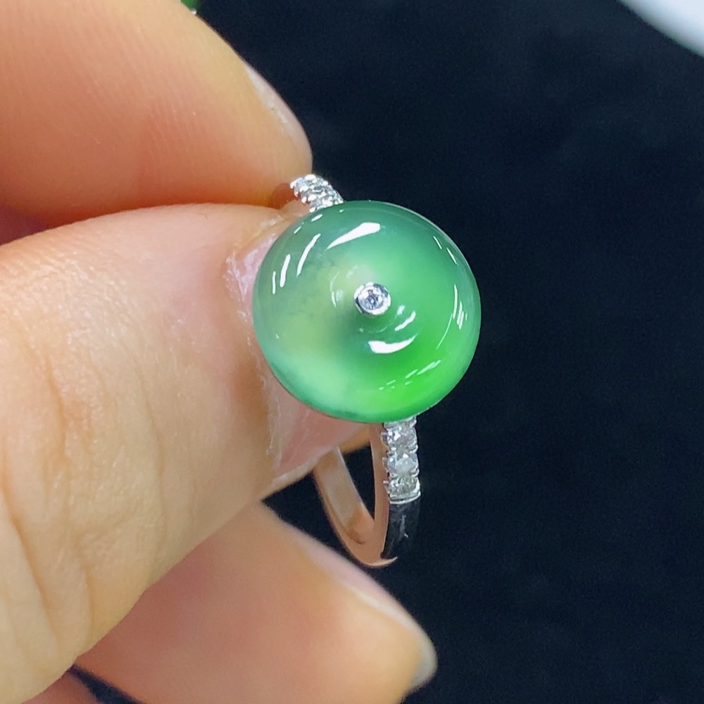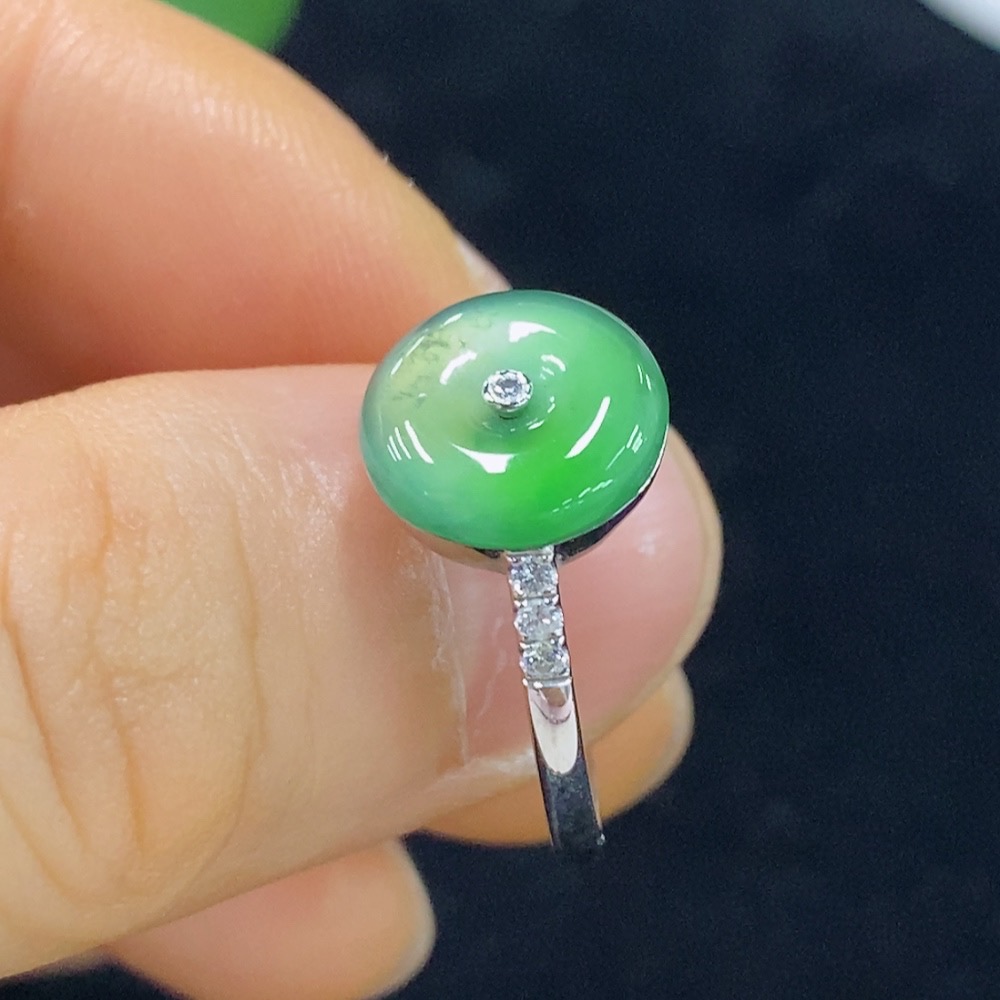 Jadeite Peace Knot Inlaid Ring 18k Size 15 Total Weight Approx. 3.07g With Diamond Accents