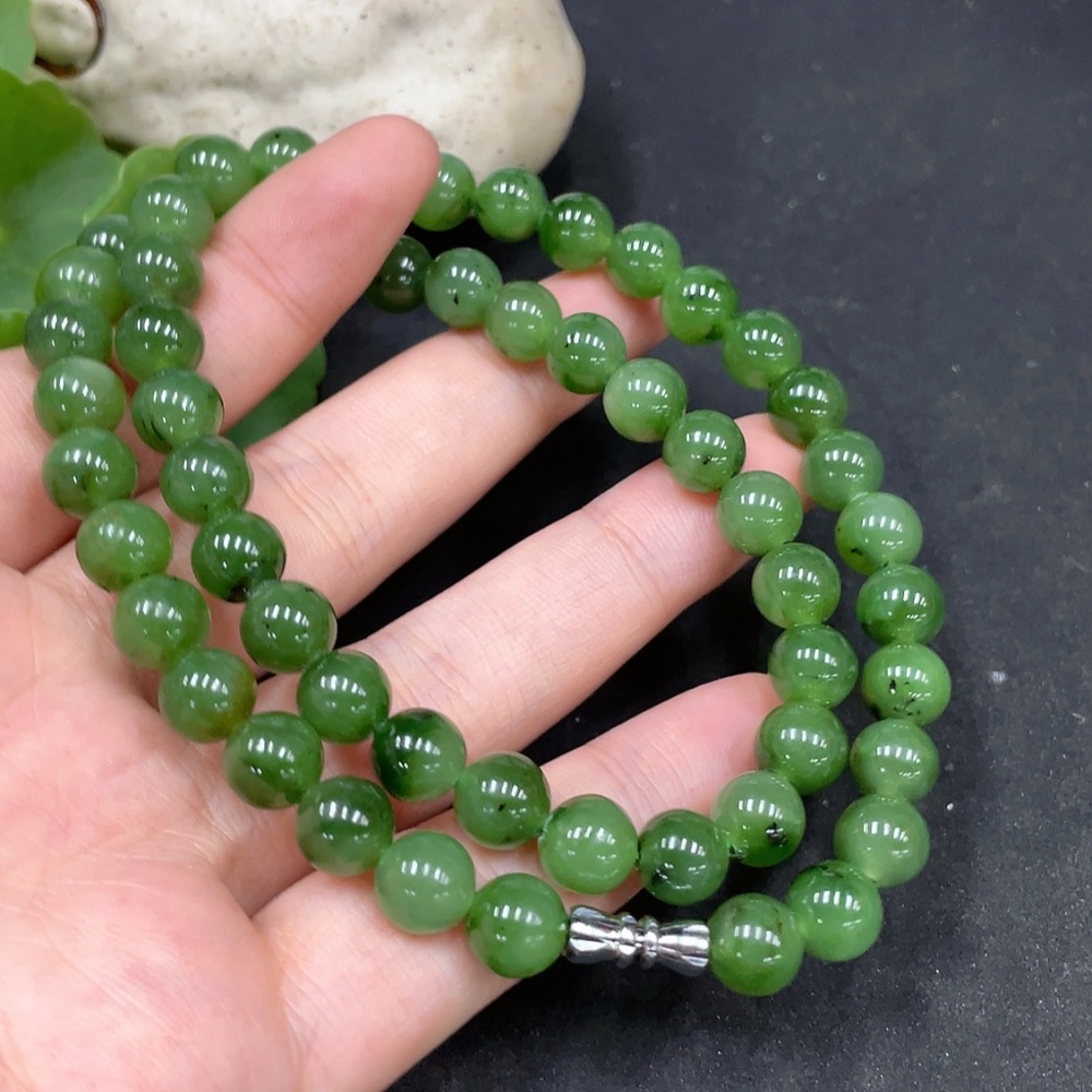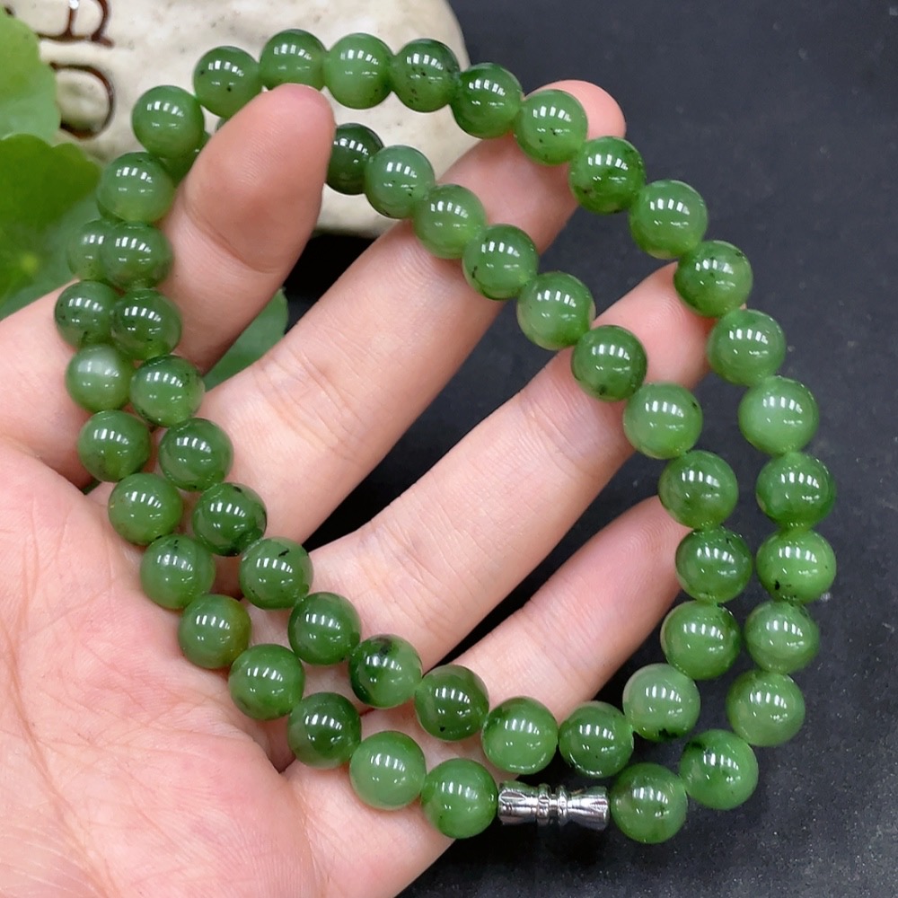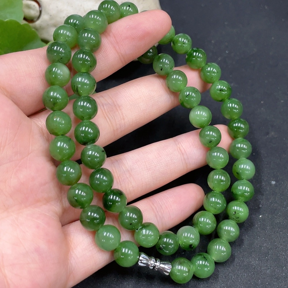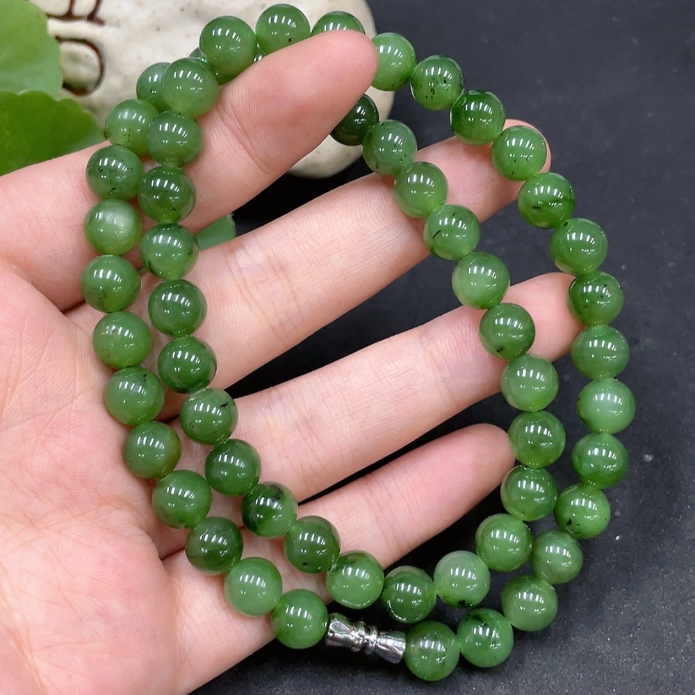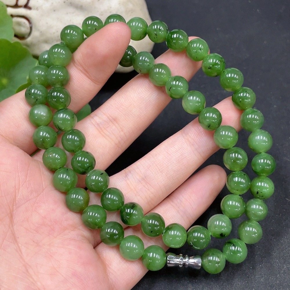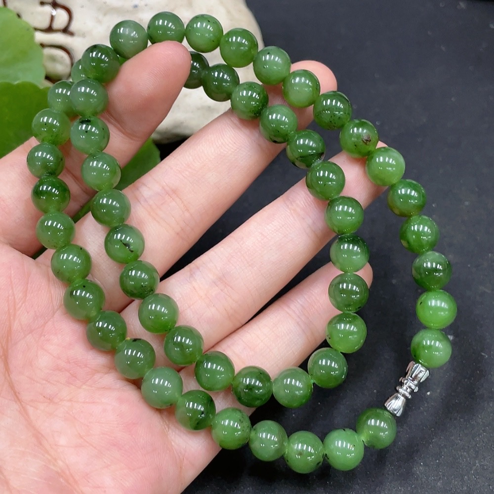 Hetian Jade Bead Necklace Non-Gold Approx. 7.8mm Total Weight About 45.1g