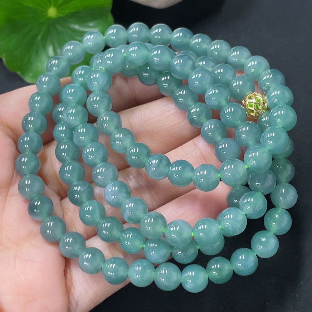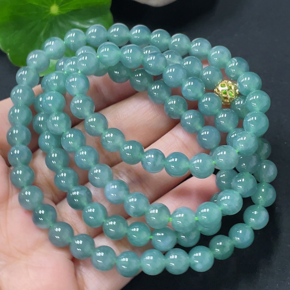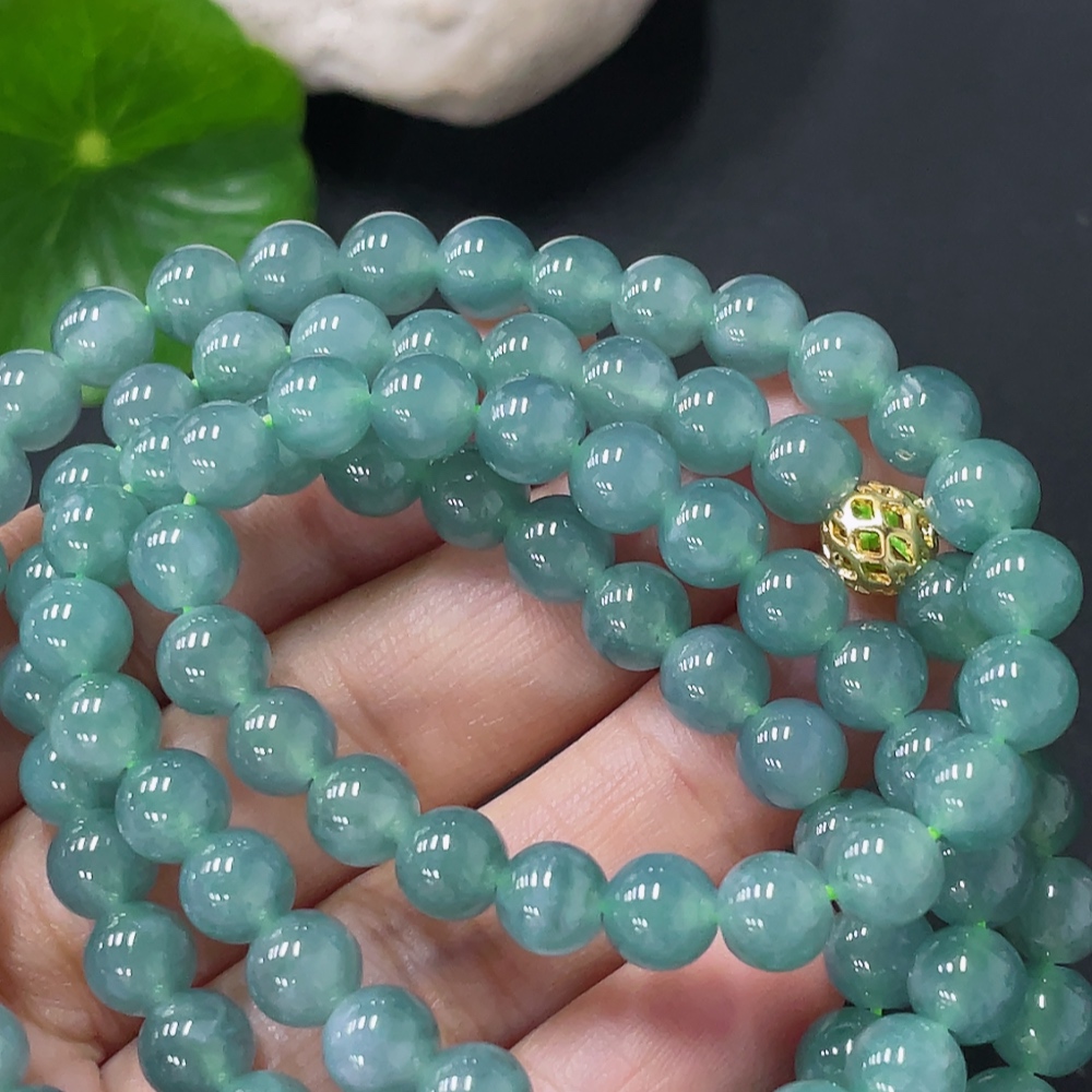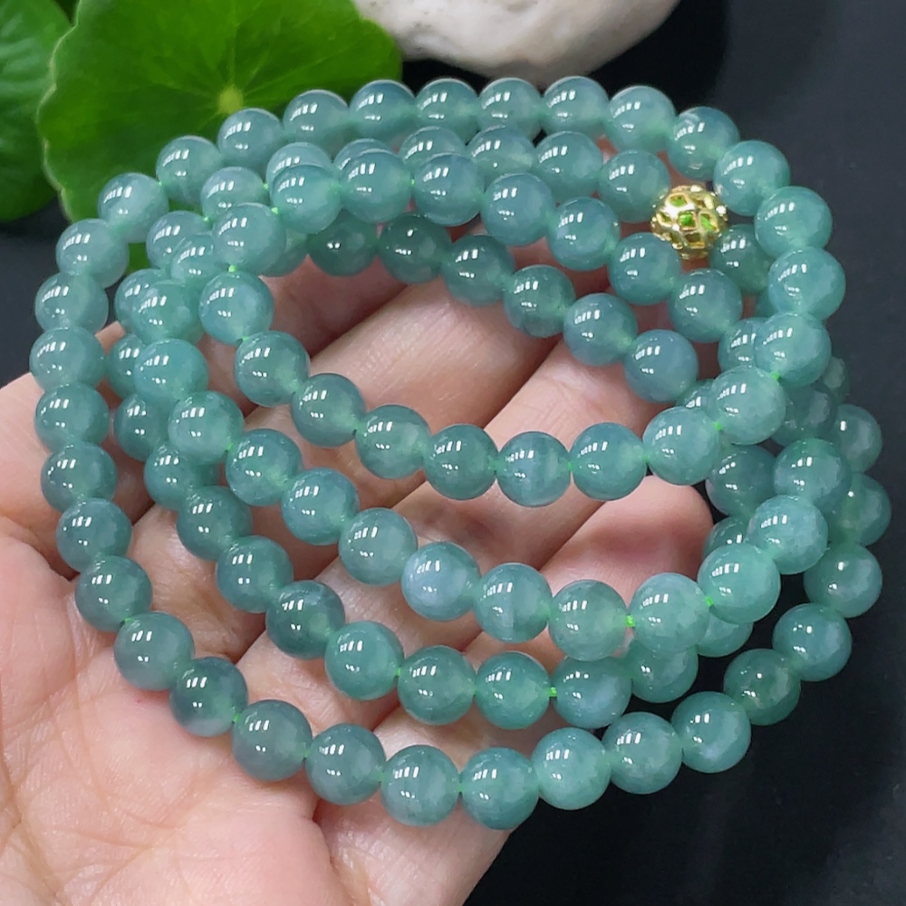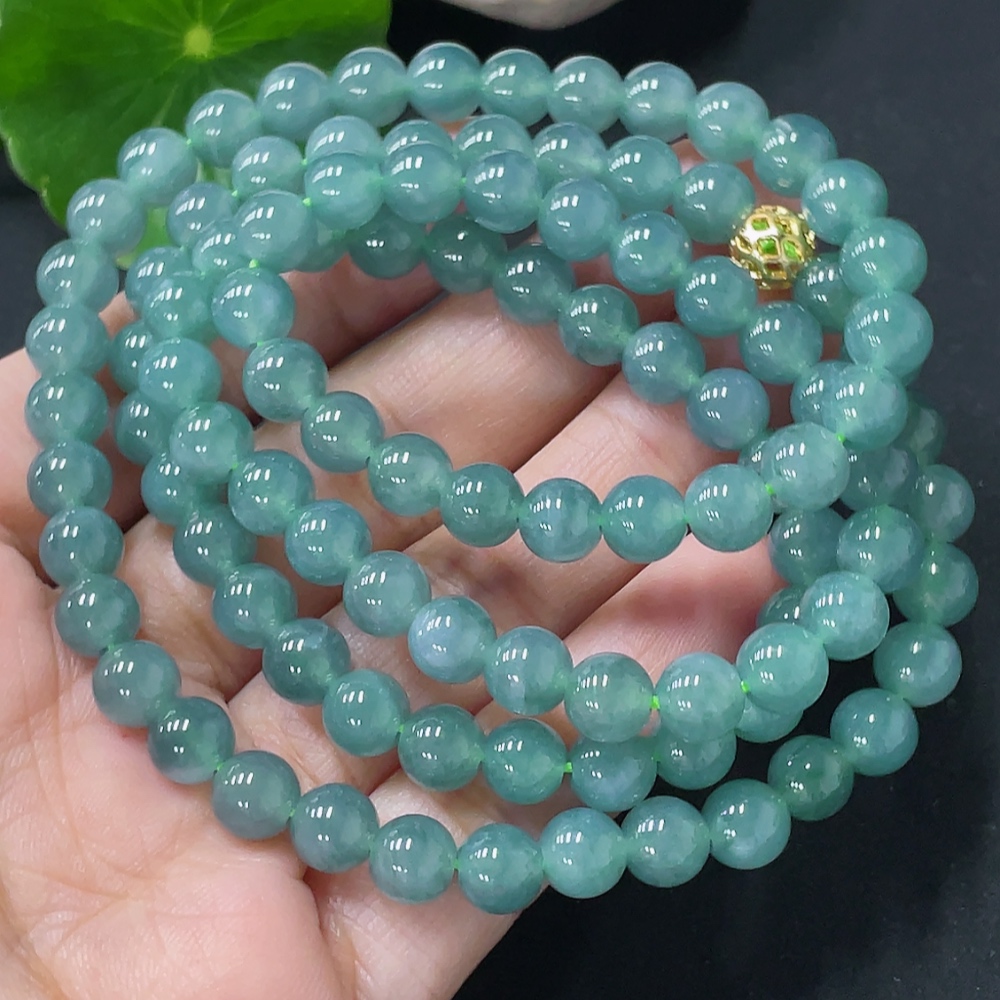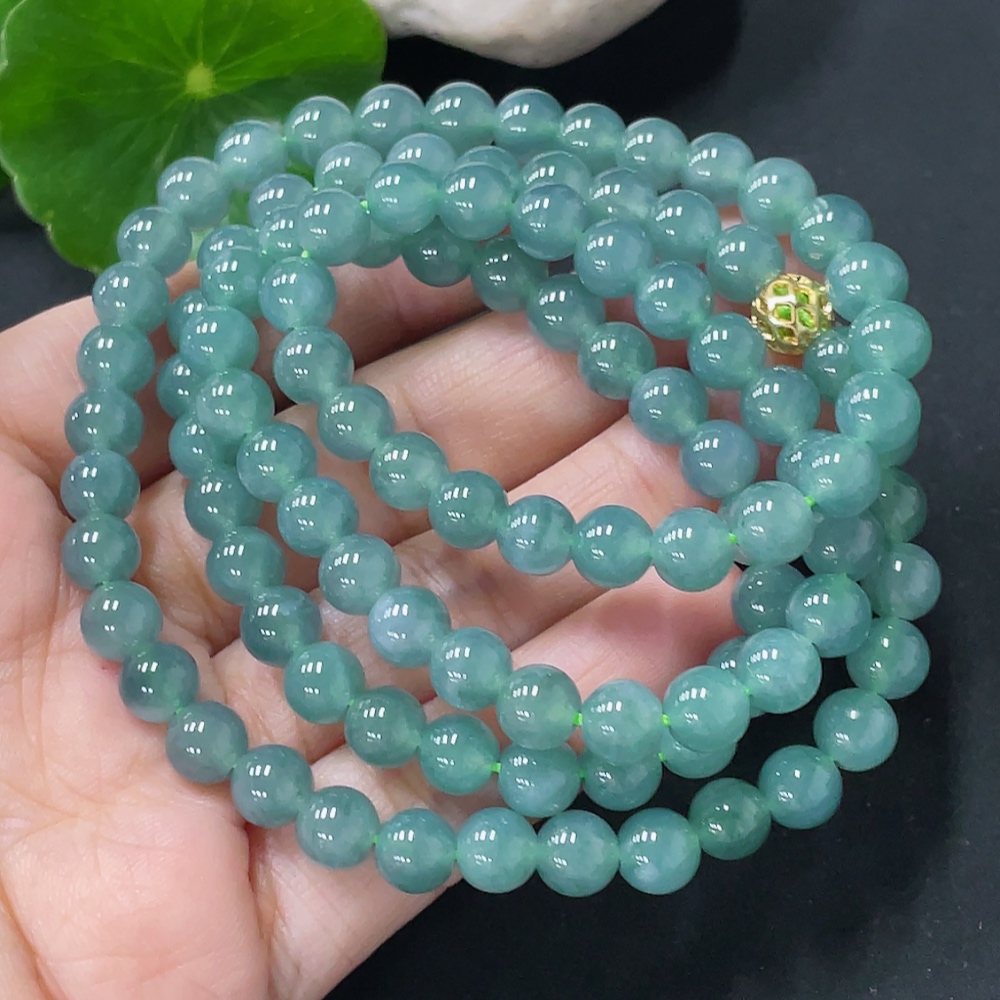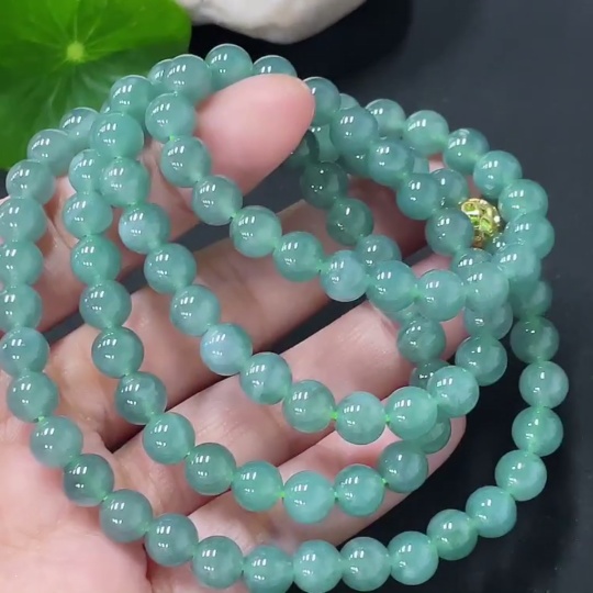 Jadeite Bead Necklace Approx. 6.5mm Non-Gold Total Weight Approx. 45.38g