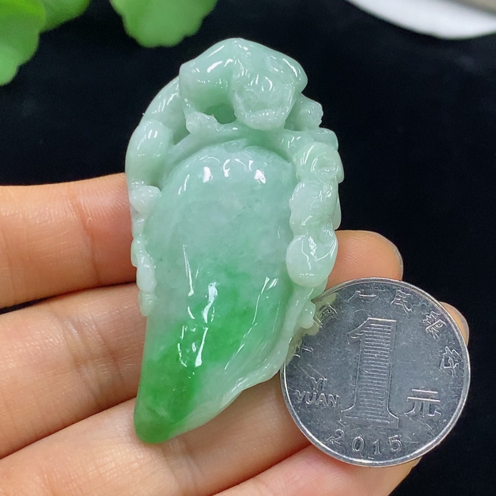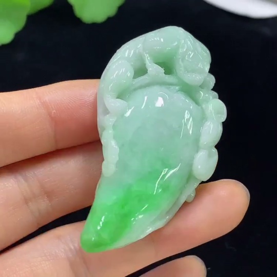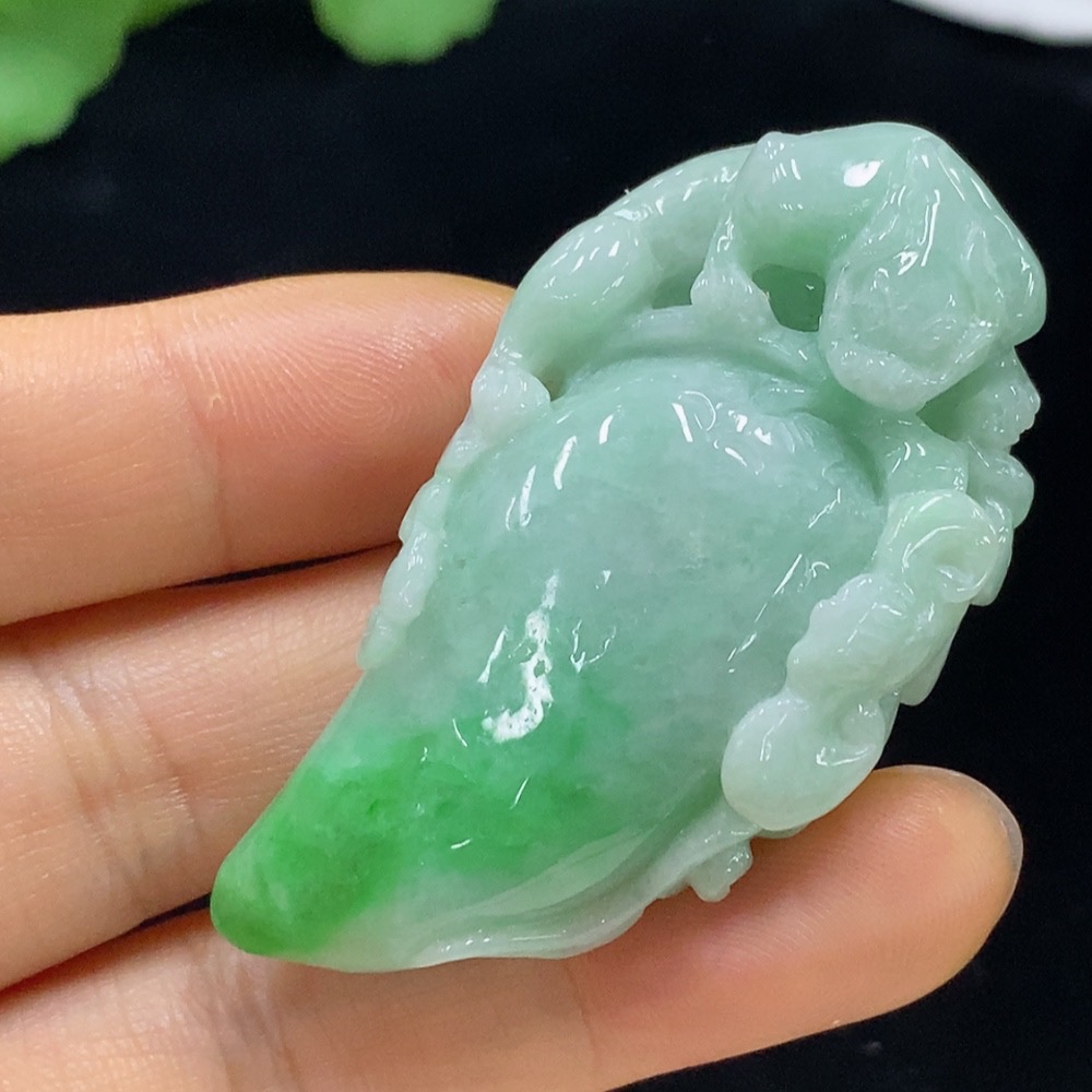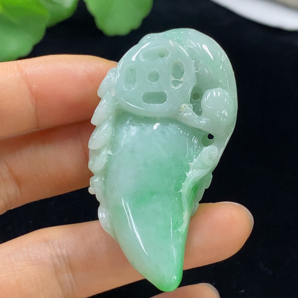 Jadeite Auspicious Gourd Pendant, Total Weight Approximately 35.58g