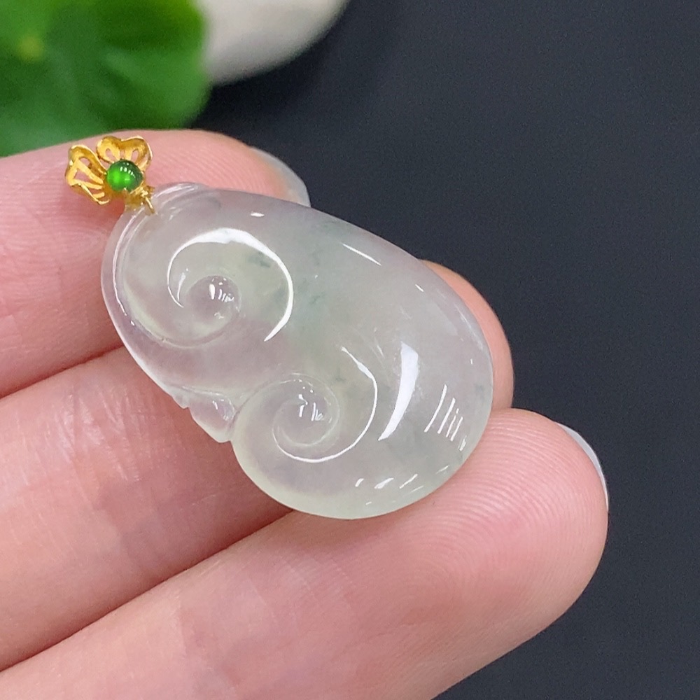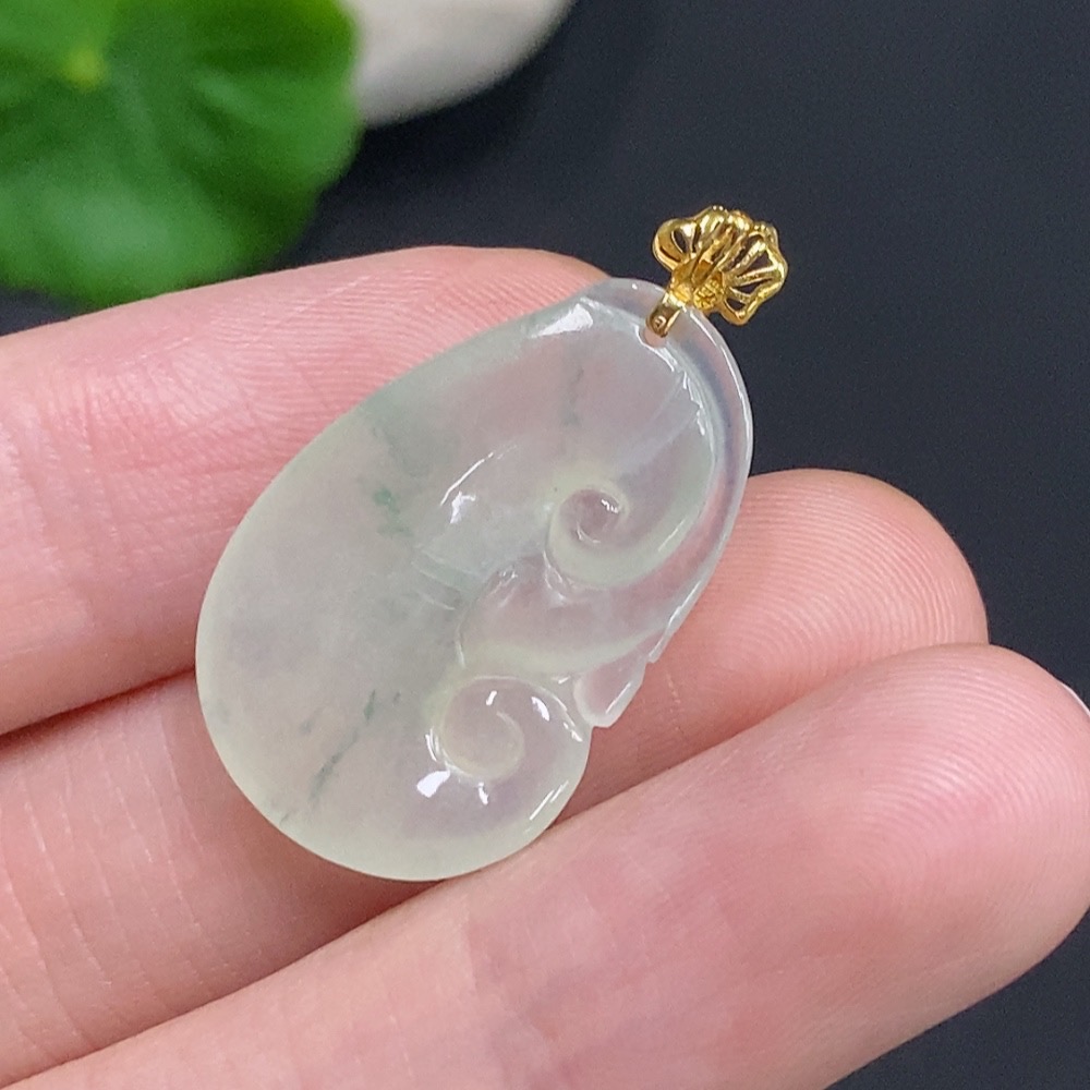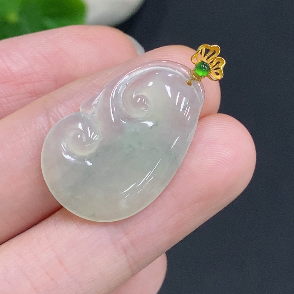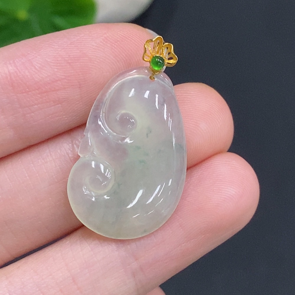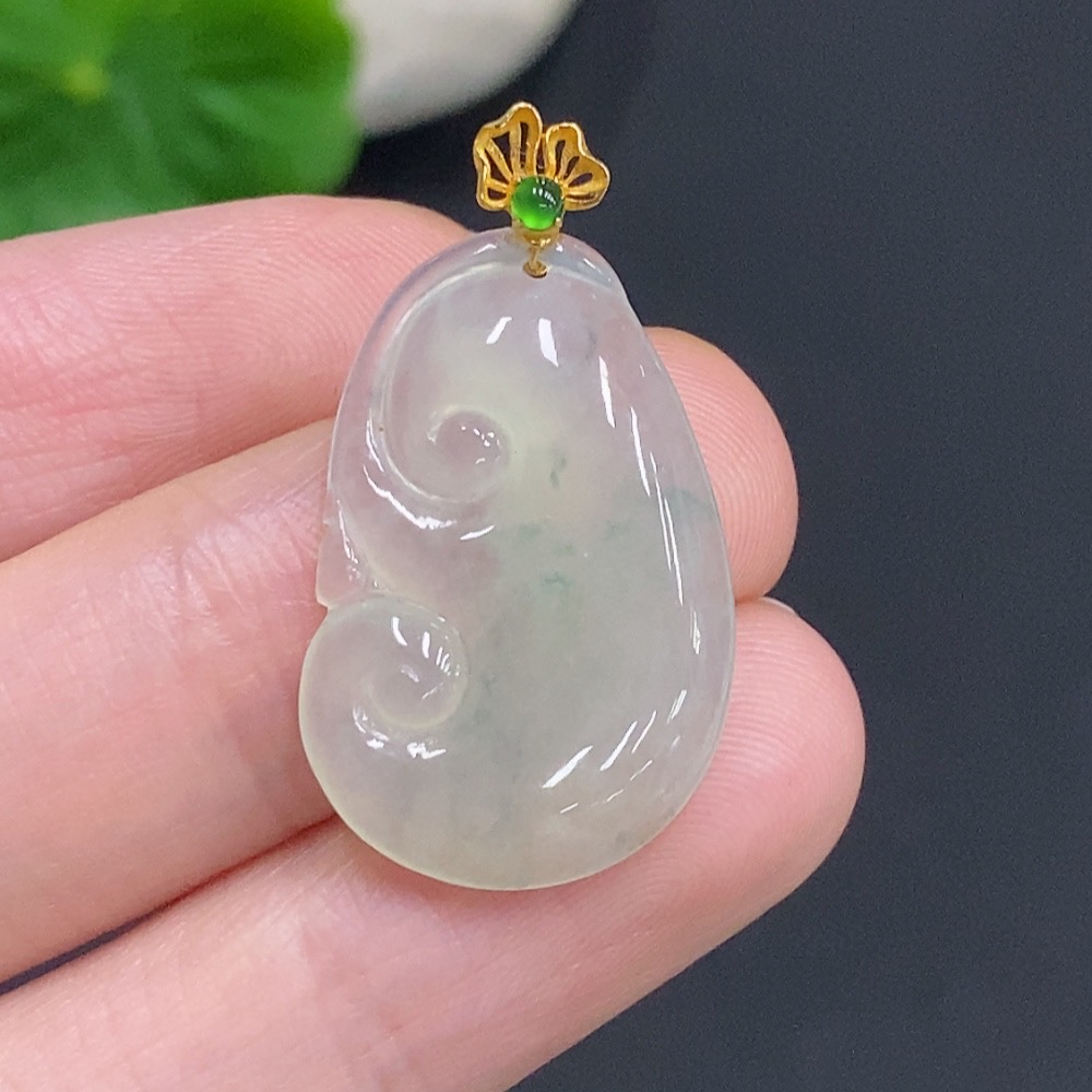 Jadeite Ruyi Inlaid Pendant with 18K Gold Clasp, Total Weight Approximately 2.9g
