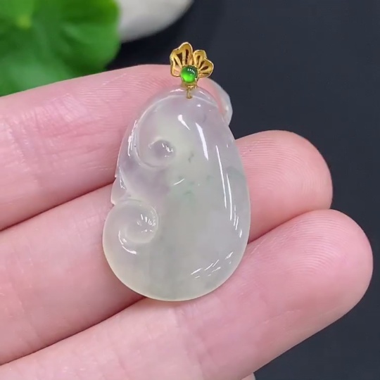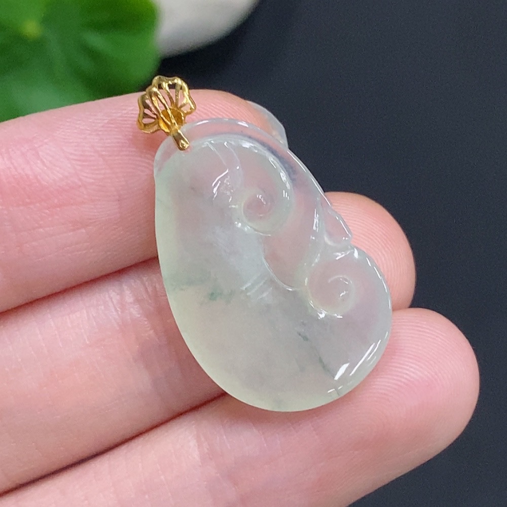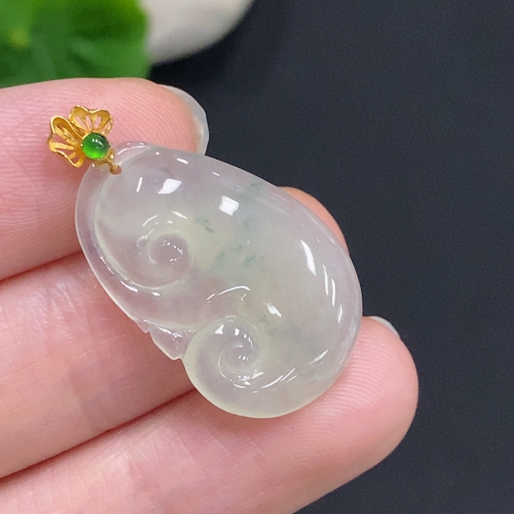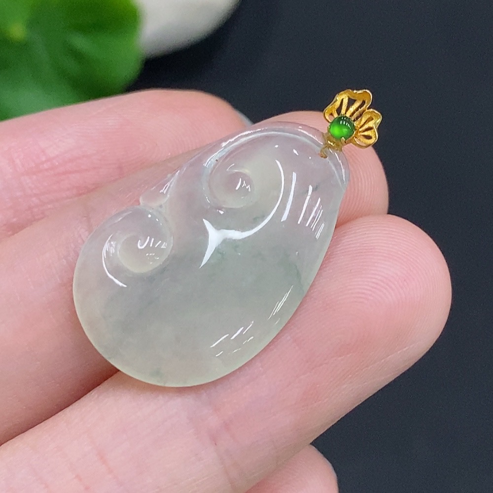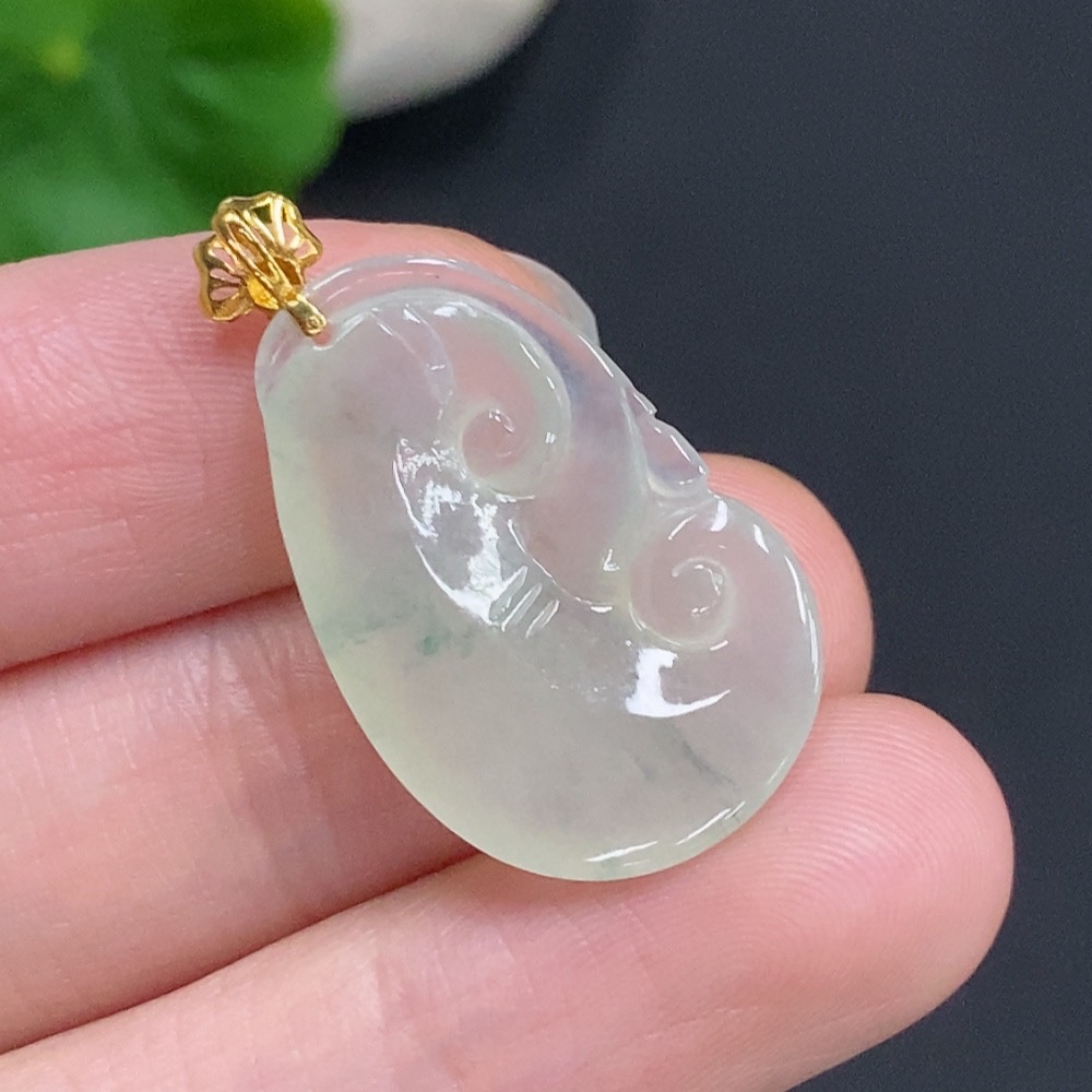 Jadeite Ruyi Inlaid Pendant with 18K Gold Clasp, Total Weight Approximately 2.9g