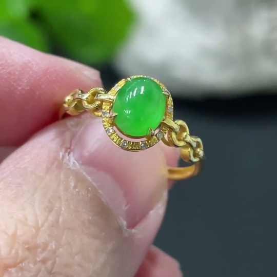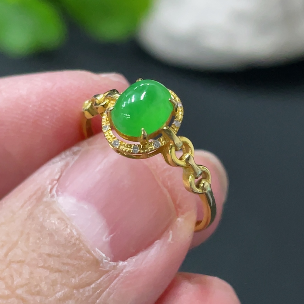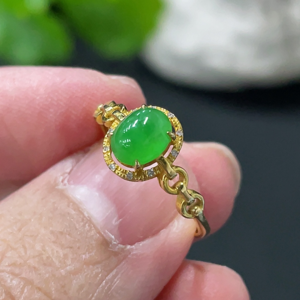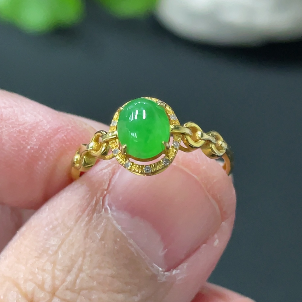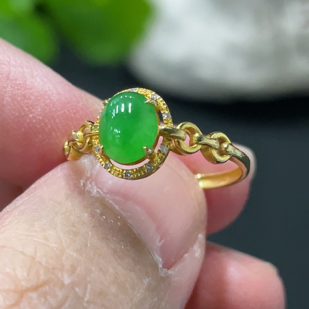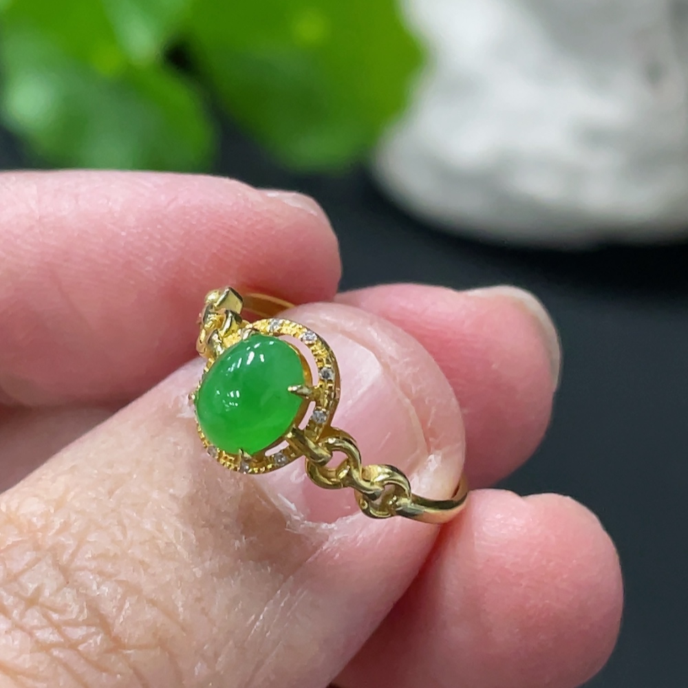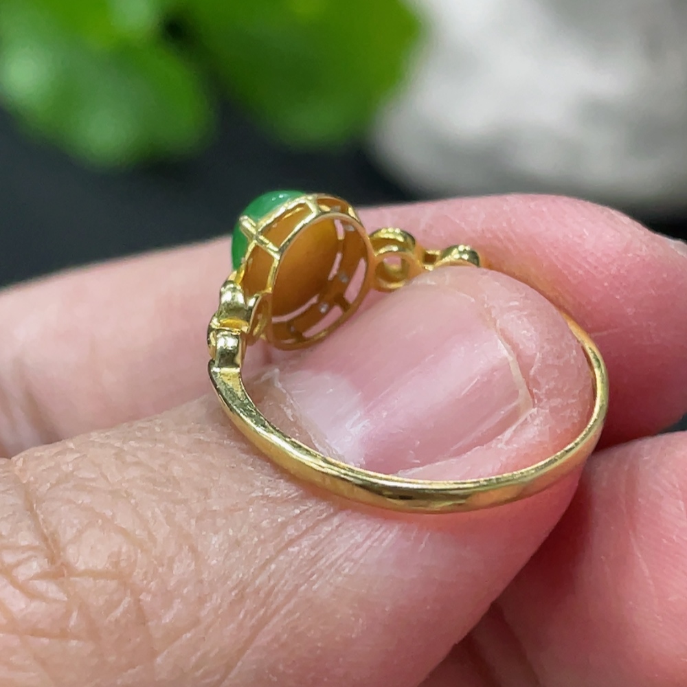 Jadeite Cabochon Ring 18k Gold Setting Size 11 Total Weight Approx. 1.2g