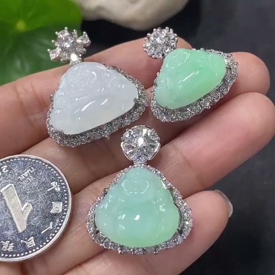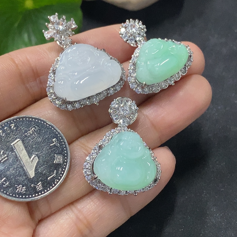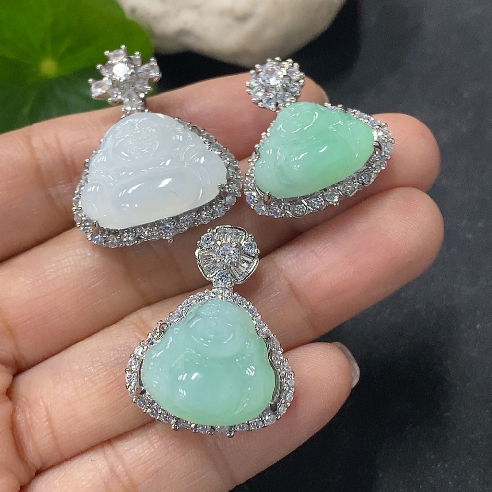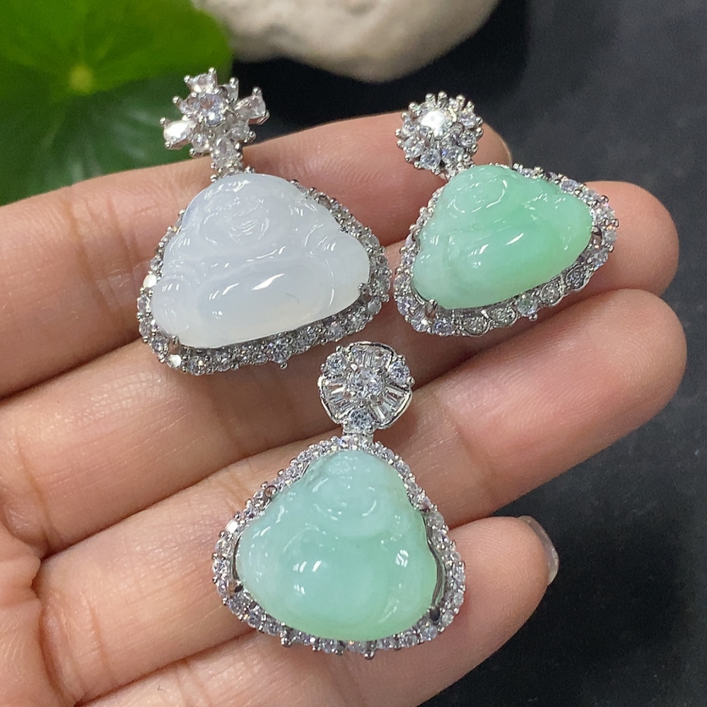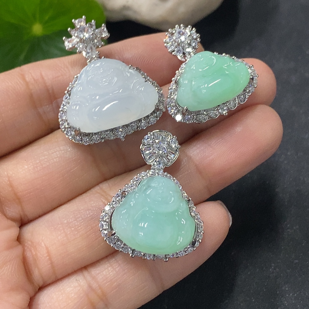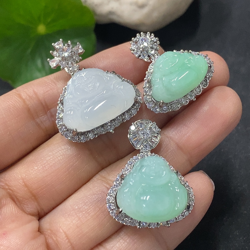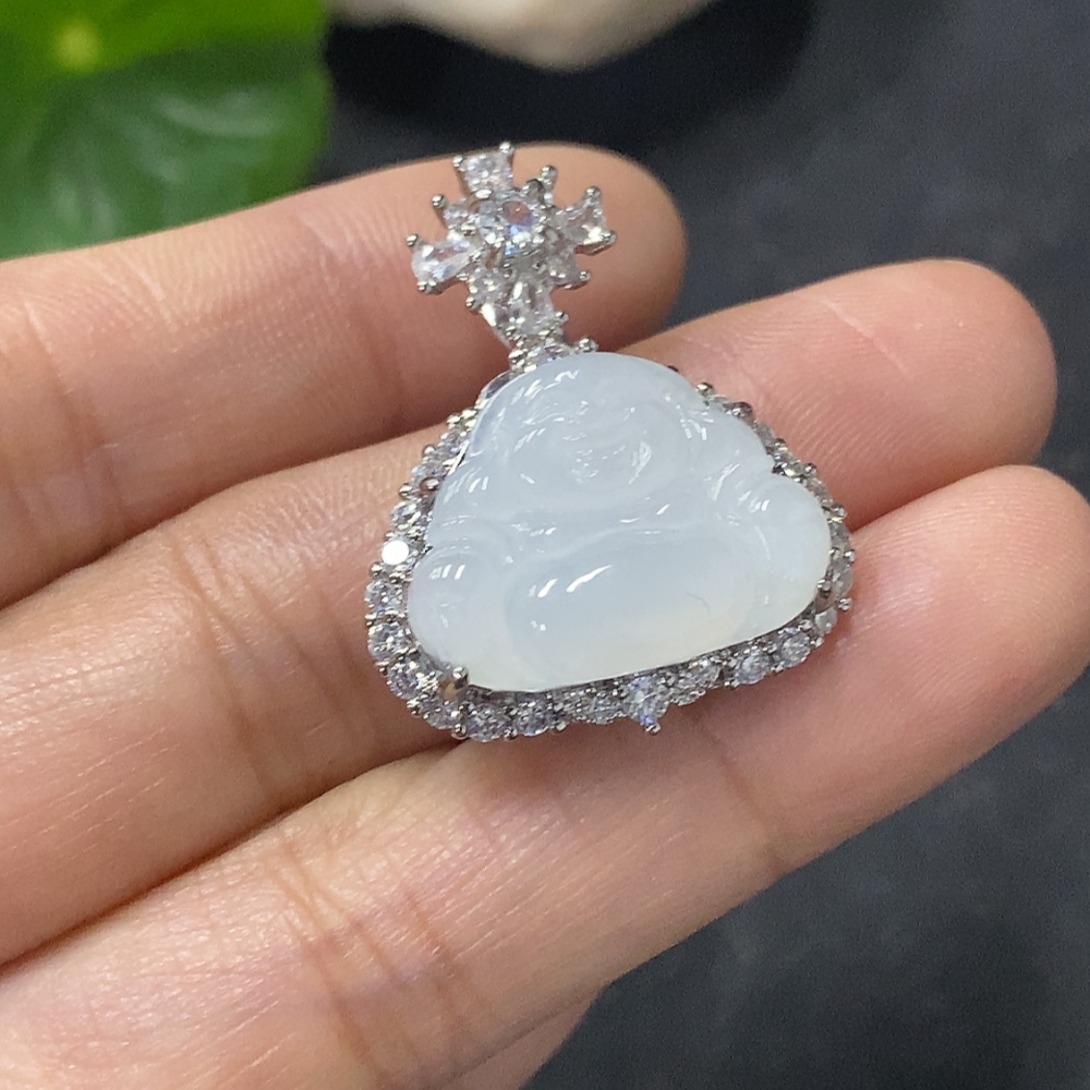 Jadeite Buddha Inlaid Pendant Non-Gold Inlaid Total Weight Approx. 14.47g