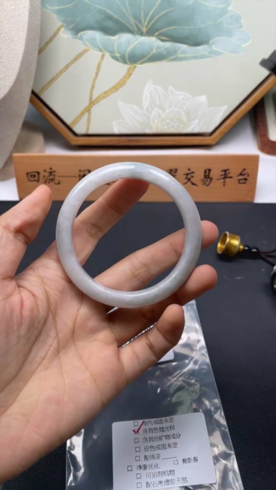 Jadeite round bracelet, total weight about 49.85g, contains color polishing powder, size 57.4