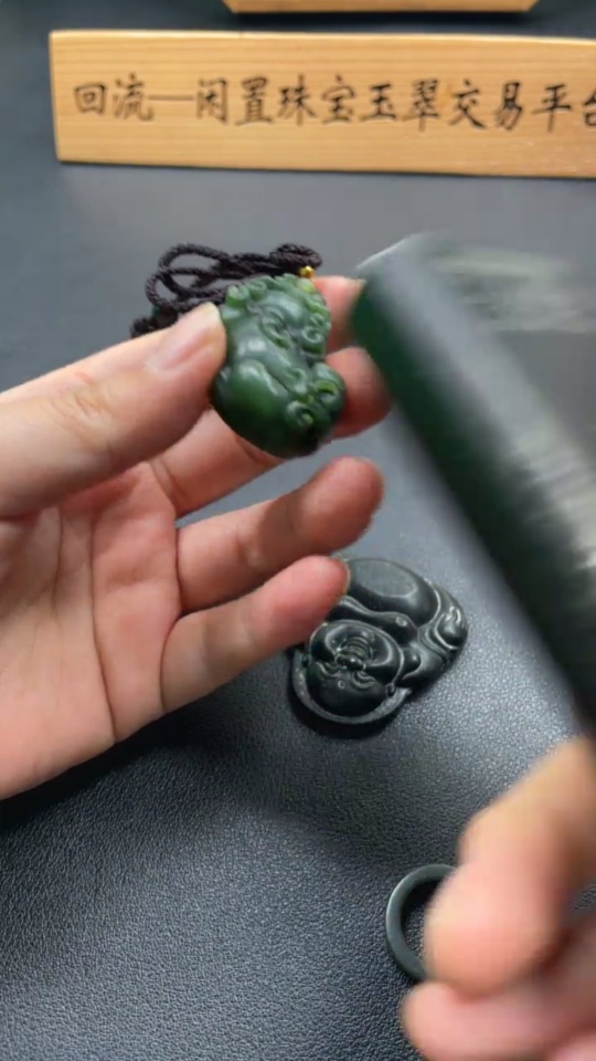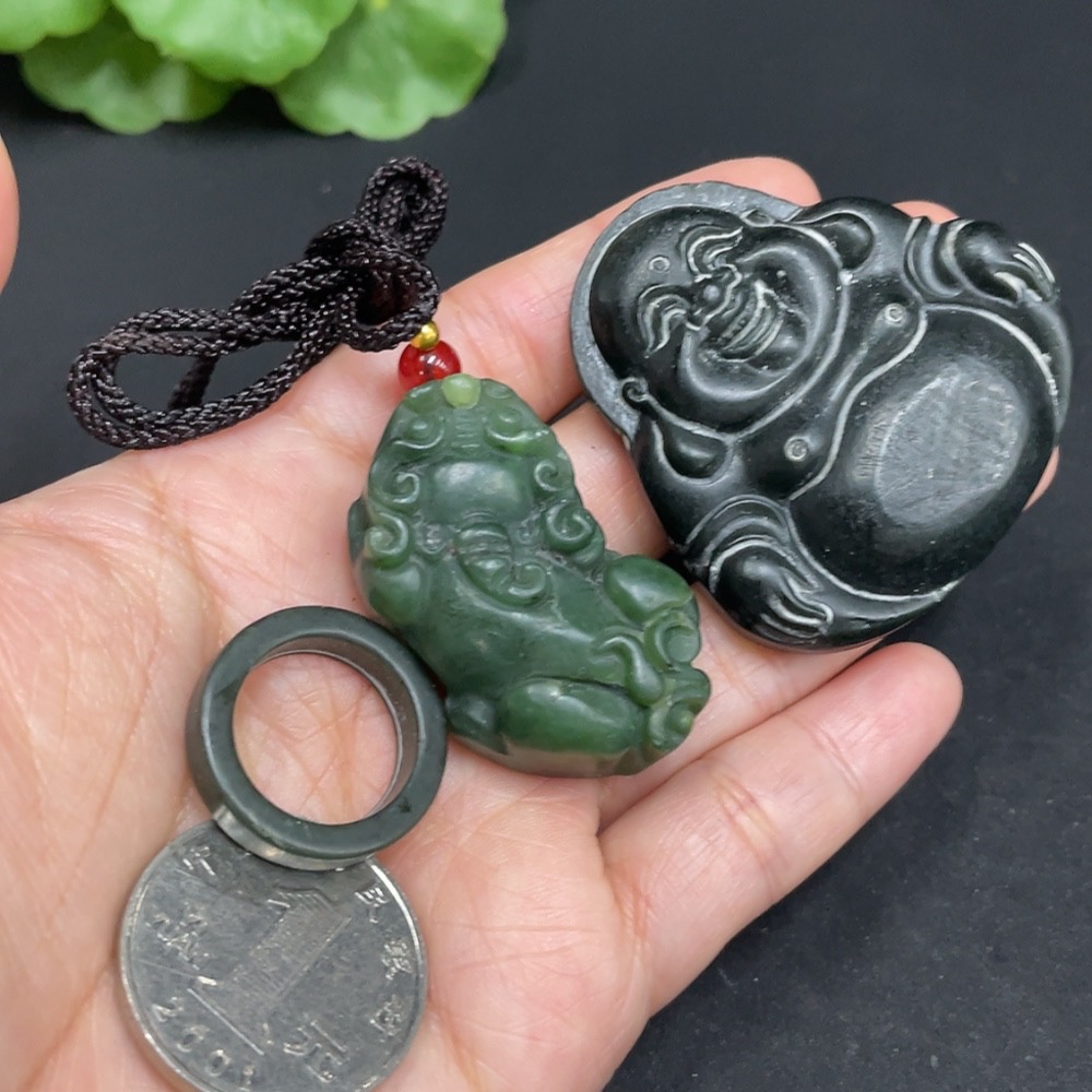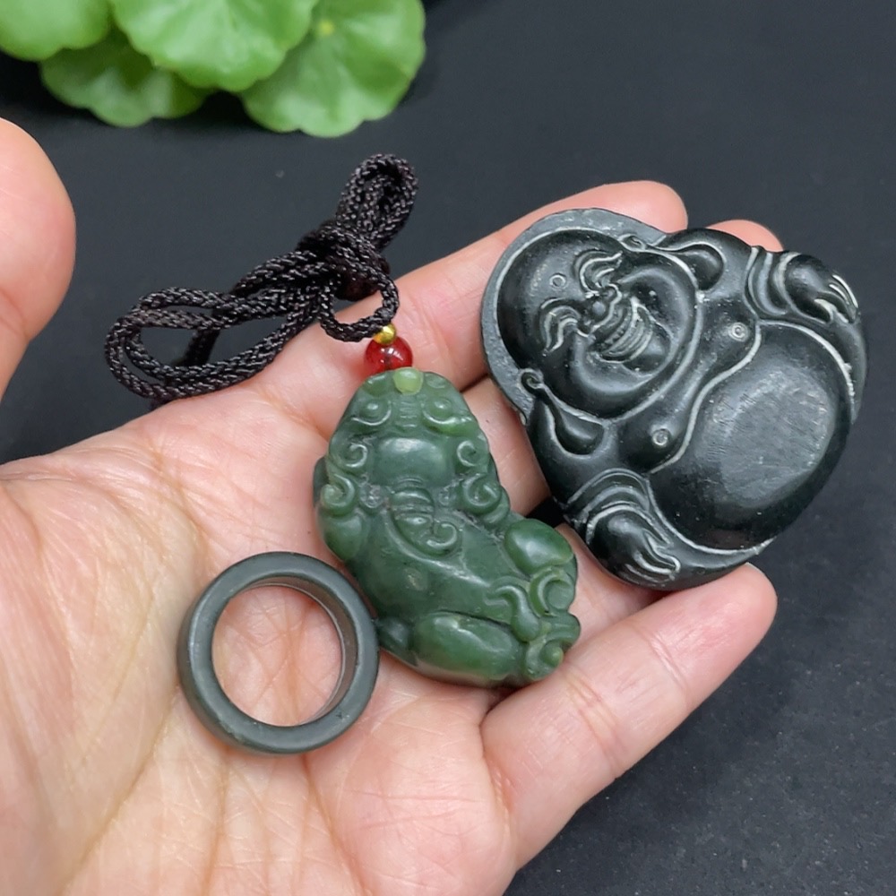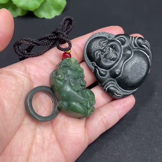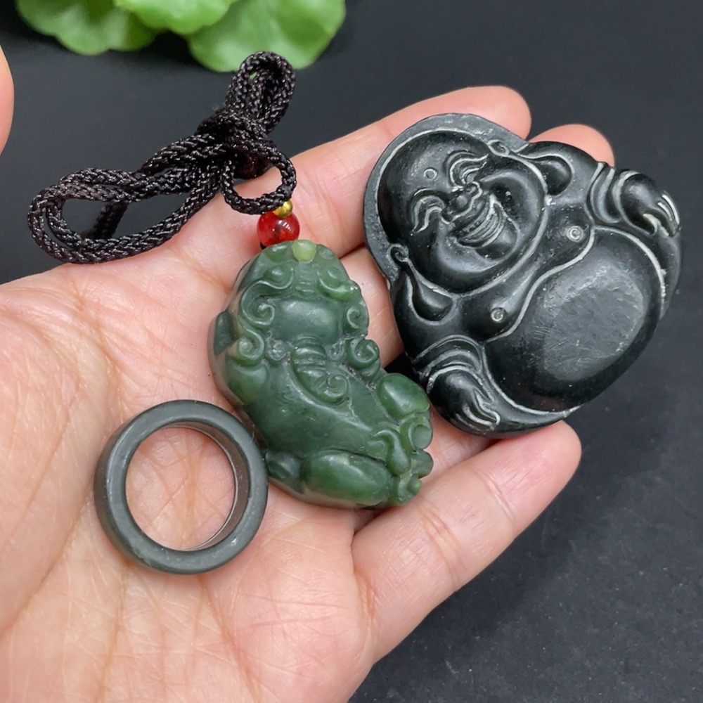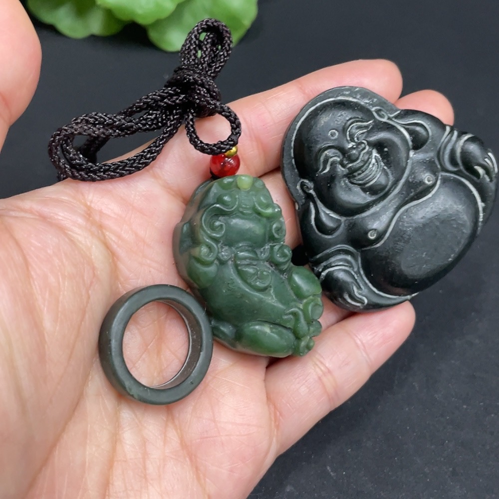 Hetian Jade Pendant + Ring Size 10 Total Weight Approx. (Including Rope) 61.1g
