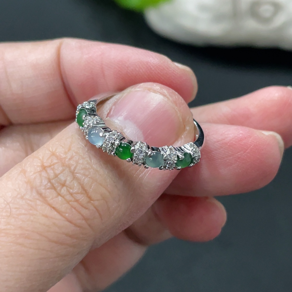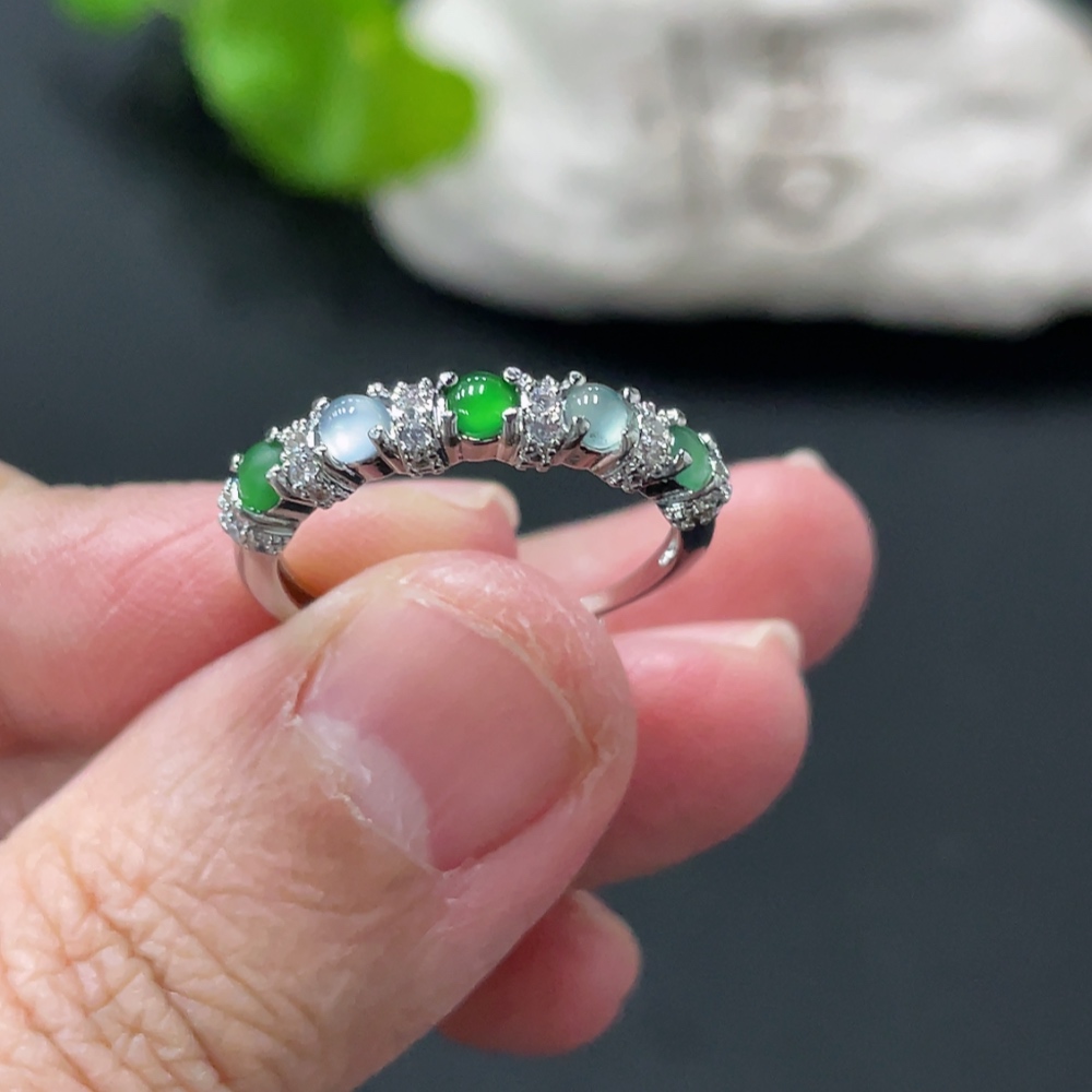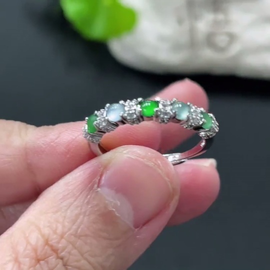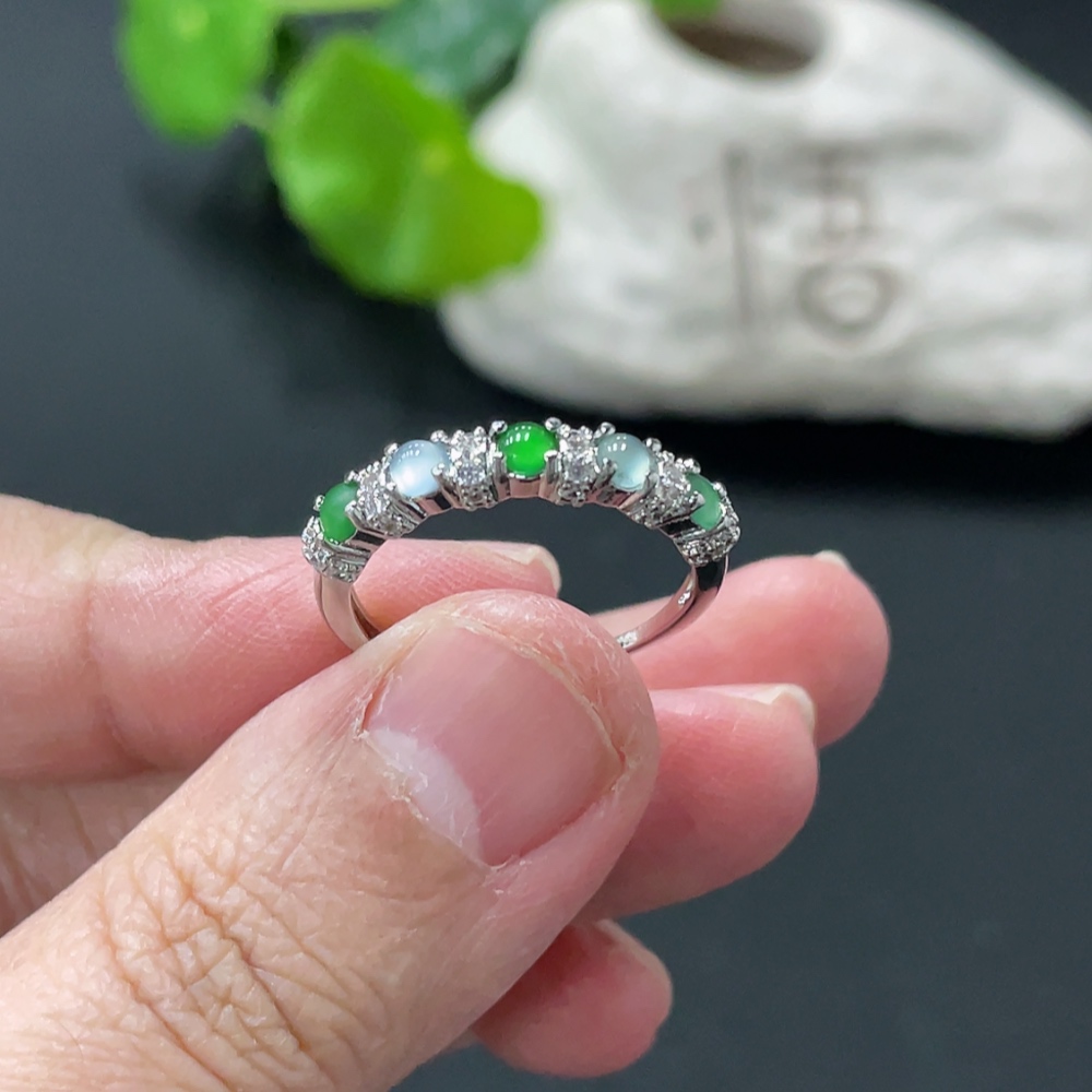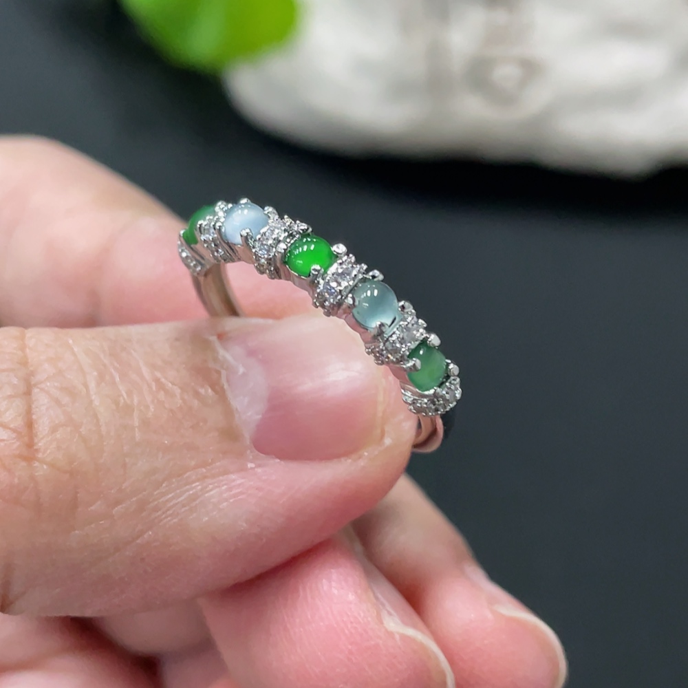Jadeite Cabochon Ring Non-Gold Setting Adjustable Size Total Weight Approx. 1.73g
